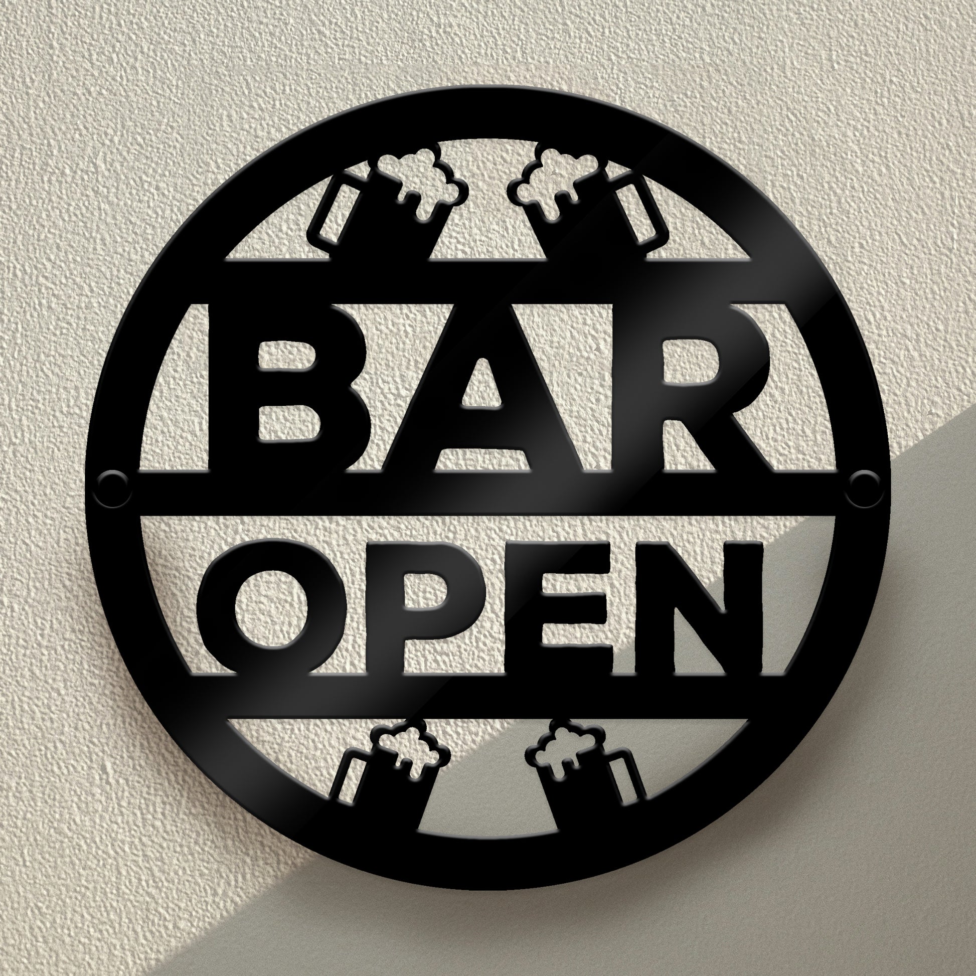 Our black acrylic circle bar sign boasts a sleek and contemporary design, adding a touch of sophistication to any setting. The black colour adds a sense of elegance and versatility, effortlessly blending with various interior styles. The circular shape creates a visually appealing focal point, drawing attention and setting the tone for a memorable experience.