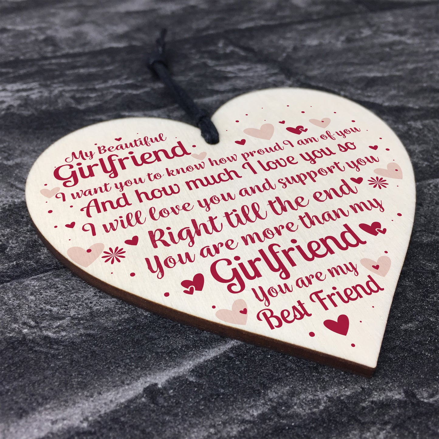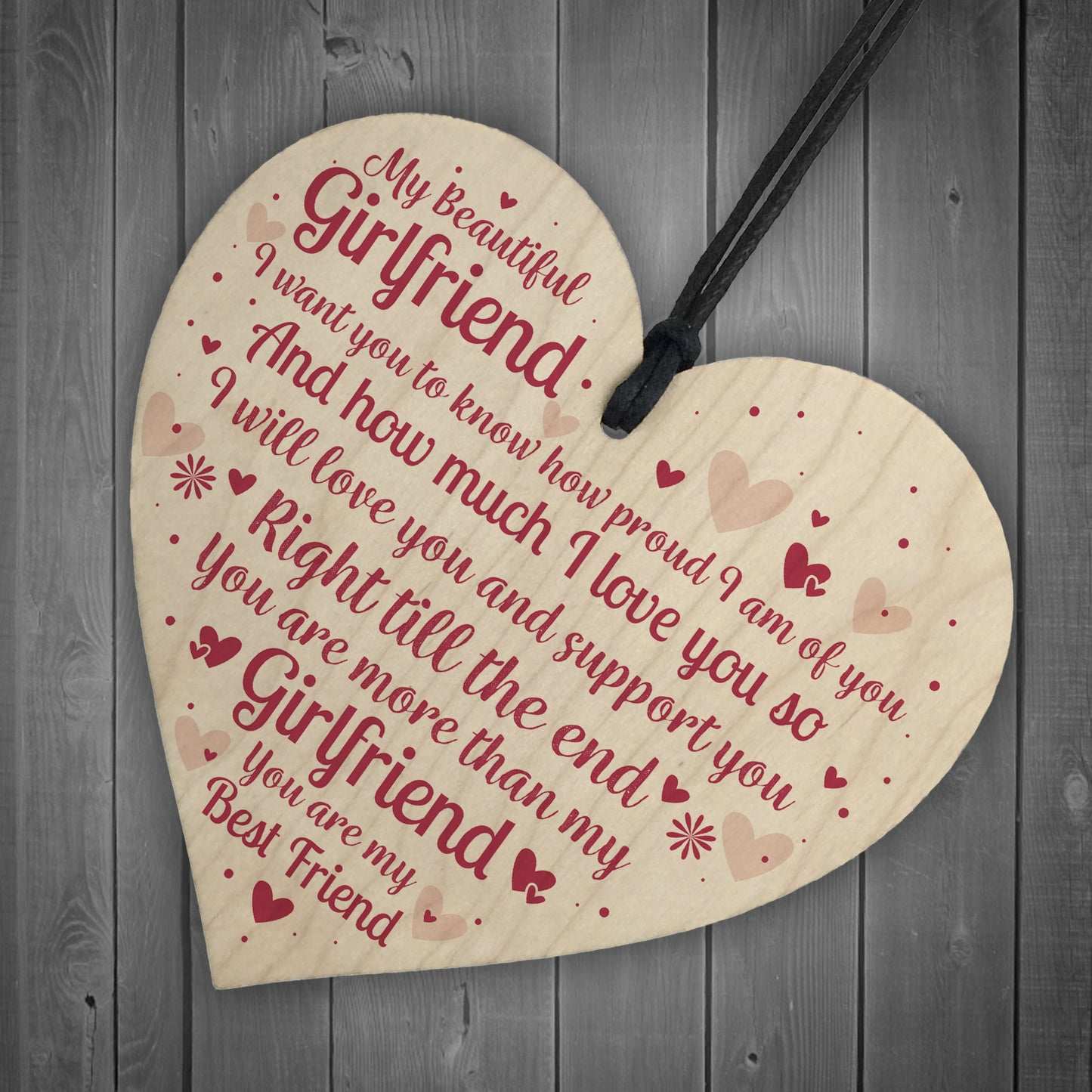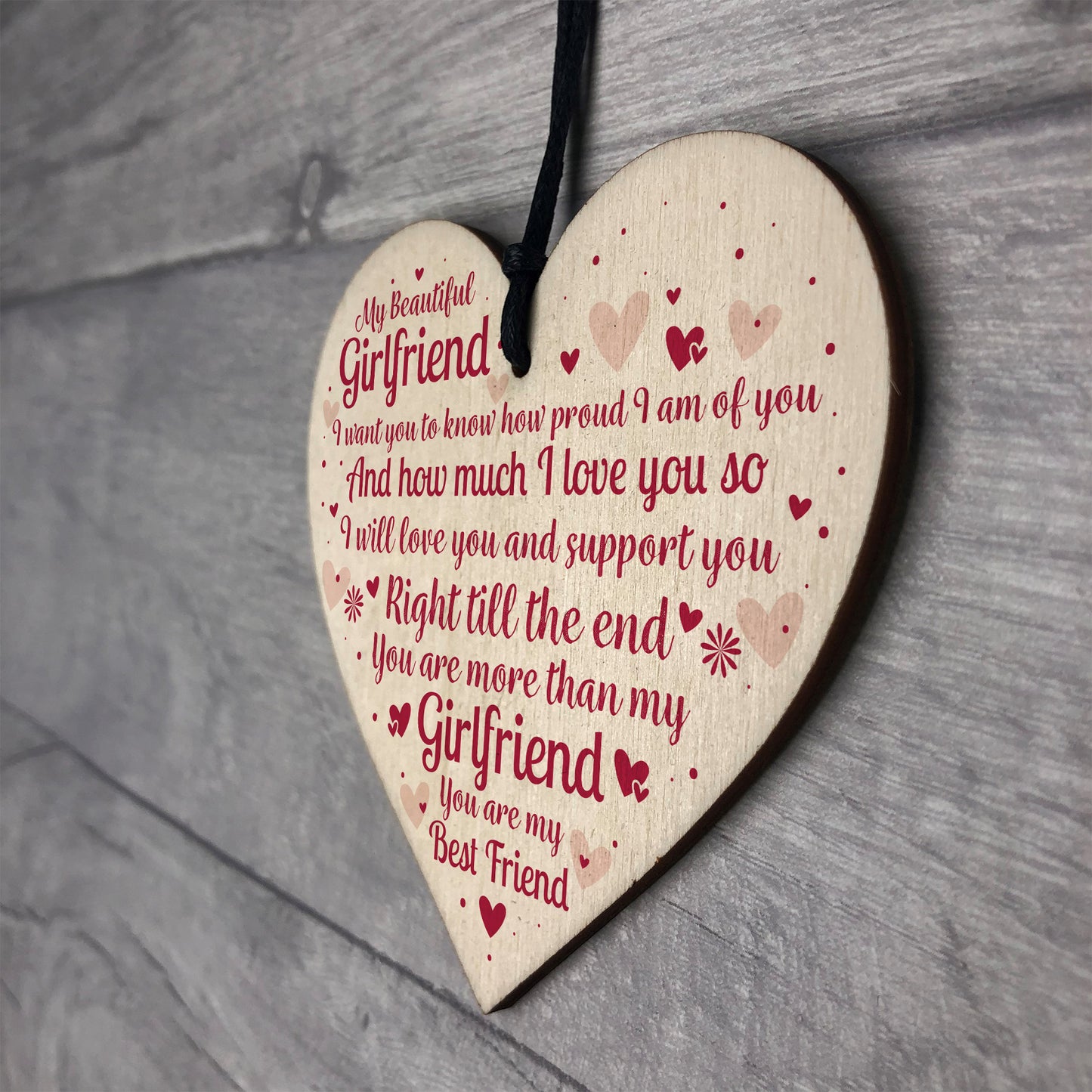 This gorgeous wooden heart plaque printed with this beautiful message would be a great gift for your Girlfriend on her birthday or christmas this year . Give this gift with love and put a smile on your Girlfriend's face every time she reads it.