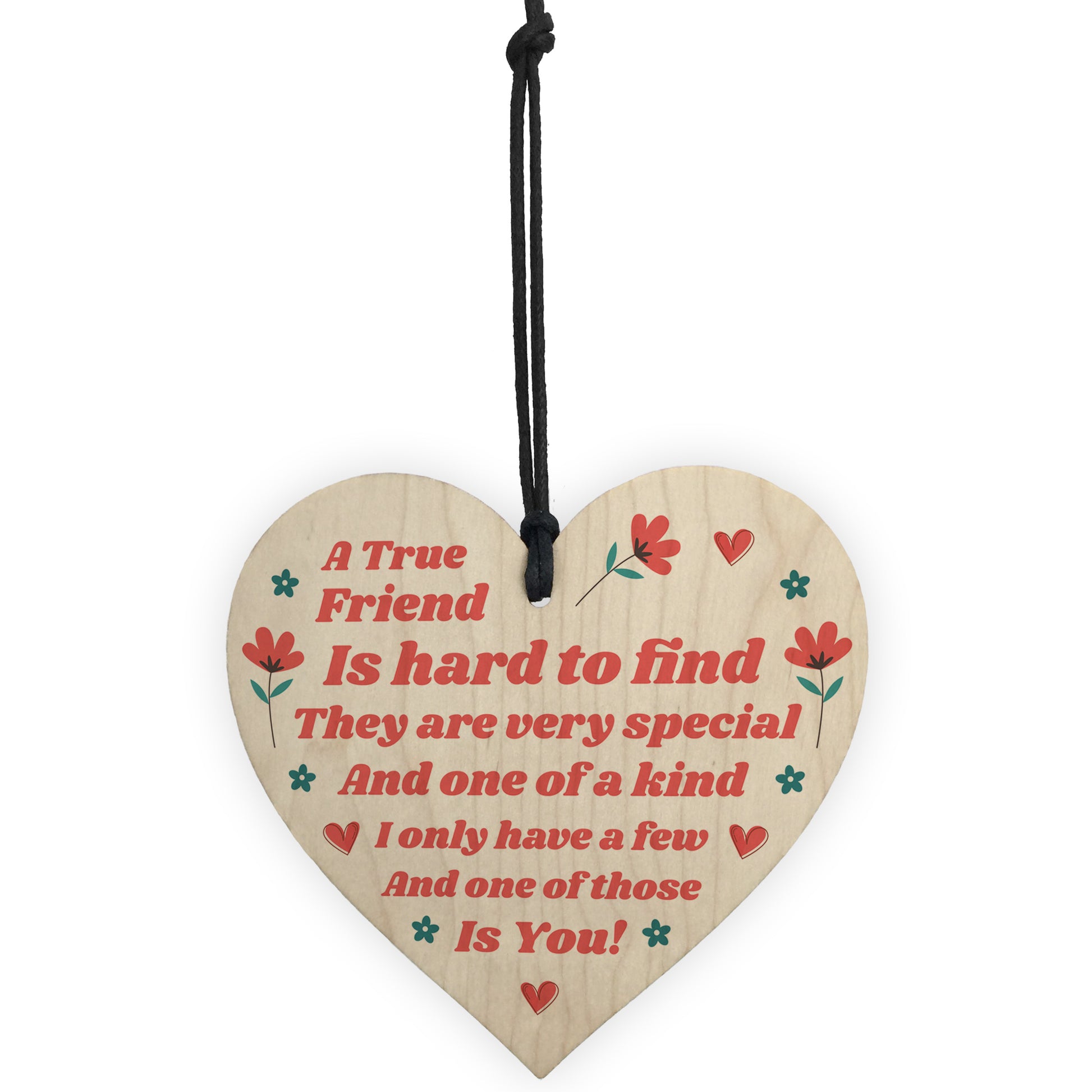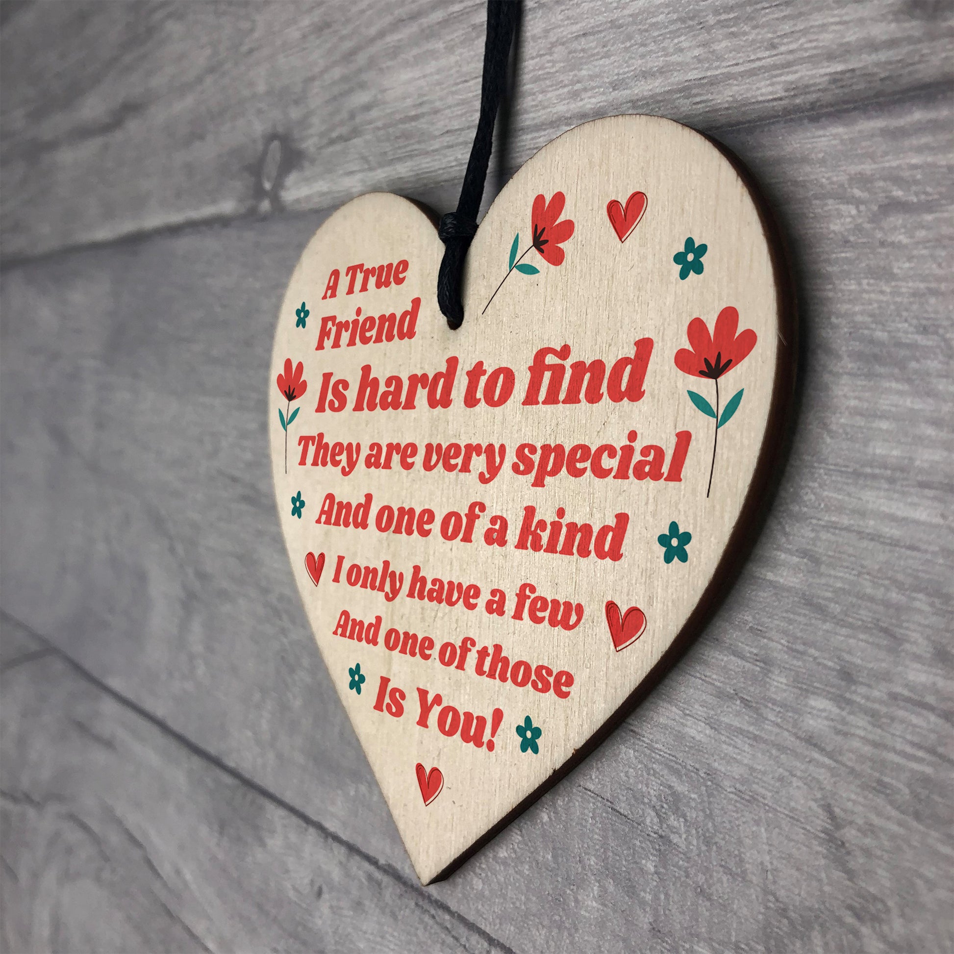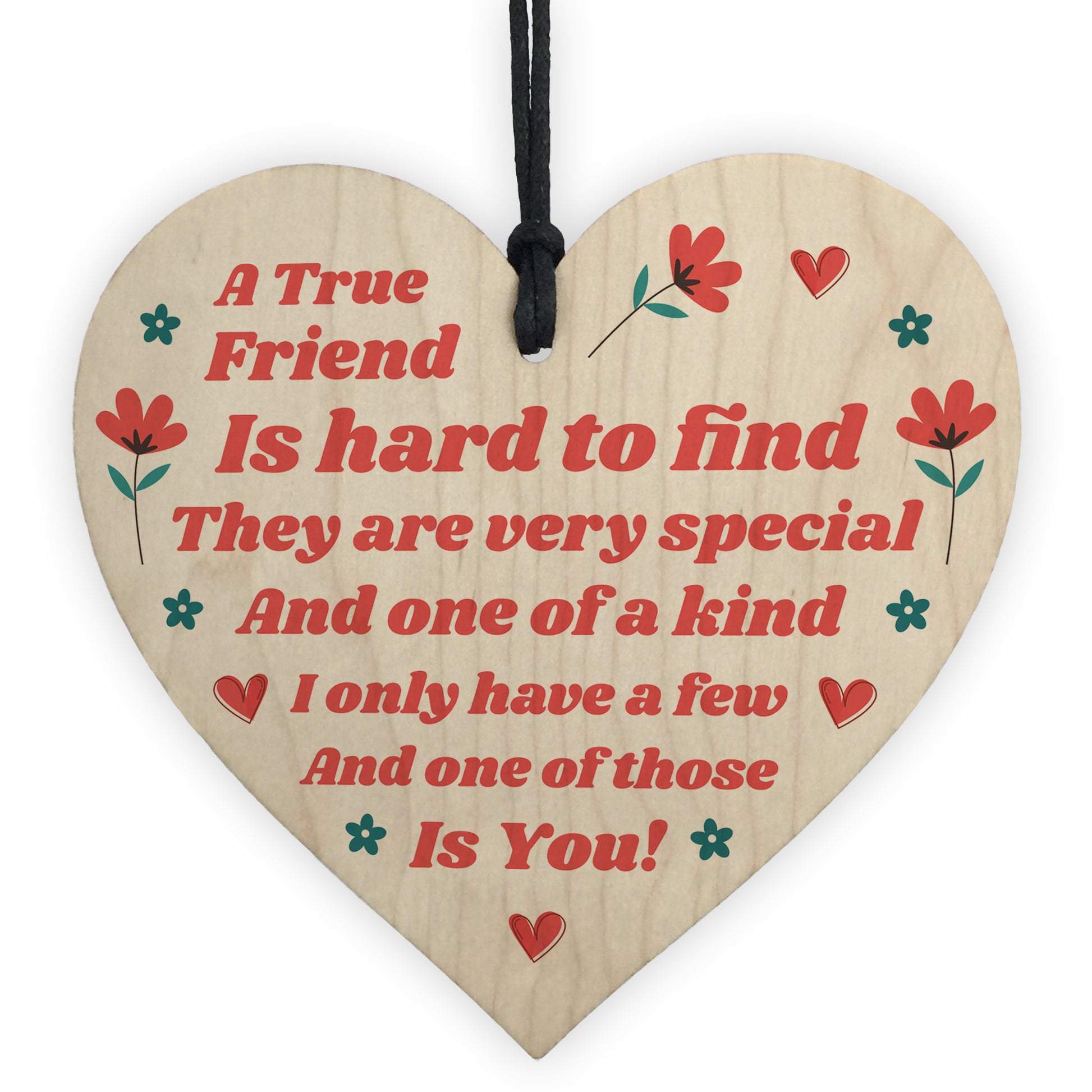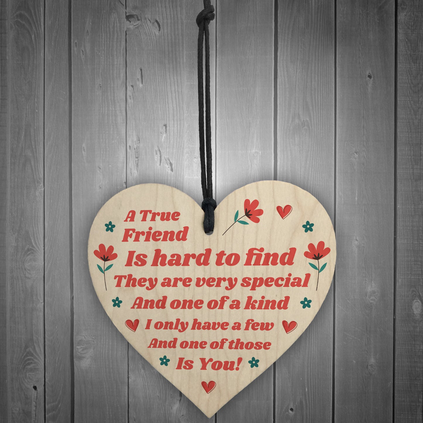 A gorgeous wooden heart plaque printed with a beautiful message that is suited for the very best of friends. Give this gift with love and put a smile on your friend's face every time they read it. Perfect to hang on a wall, a kitchen or coat hook or even on the neck of a bottle. Sure to be loved by the lucky recipient.