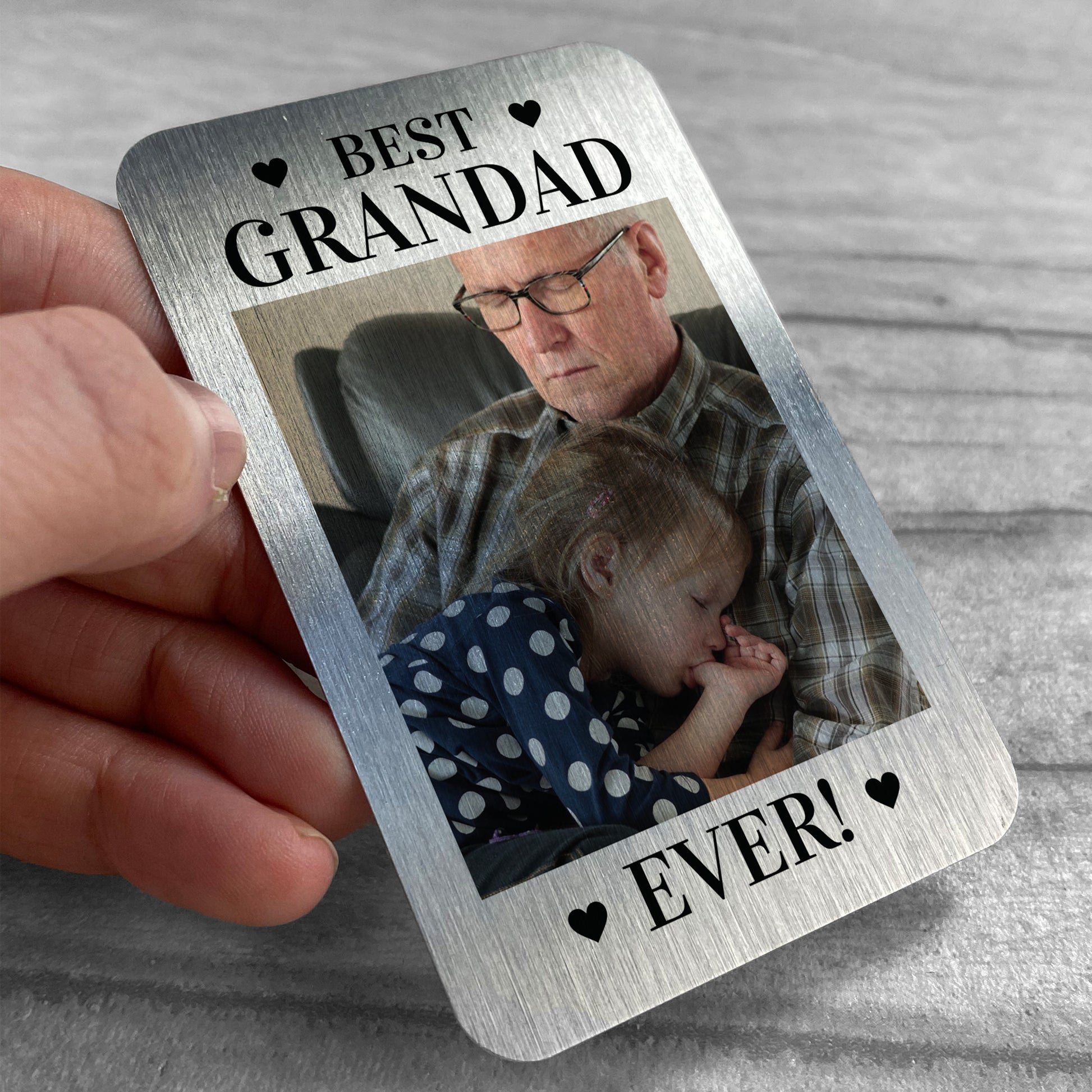 A gorgeous hand made gift for your Grandad, combine with a card or suitable on its own, this Grandad Gift, or Birthday Gift will be the perfect gift to say Thank You Gift and I love you Gift!! A beautifully printed metal wallet card with a personalised touch! A lovely keepsake and a quality alternative to just have a photo in your wallet! Give your Grandad something they can carry with them wherever they go and treasure for years to come! The perfect birthday / christmas and is a gorgeous, quality keepsake that will last for many years! Express your love through a beautiful keepsake today!
