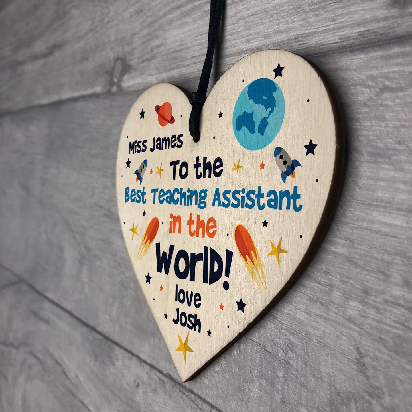 Best Teaching Assistant PERSONALISED Wooden Heart Nursery