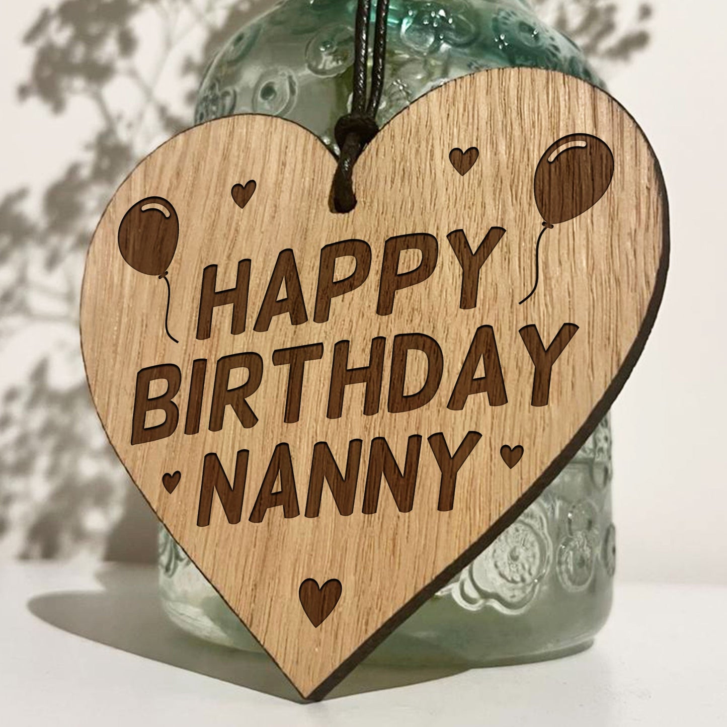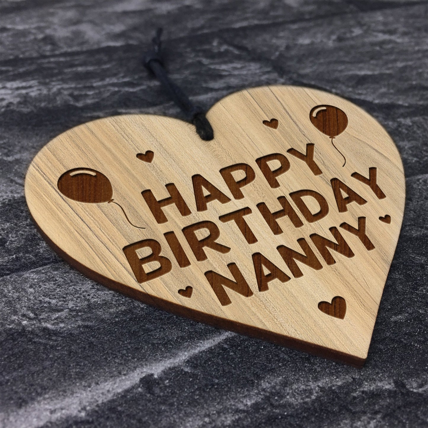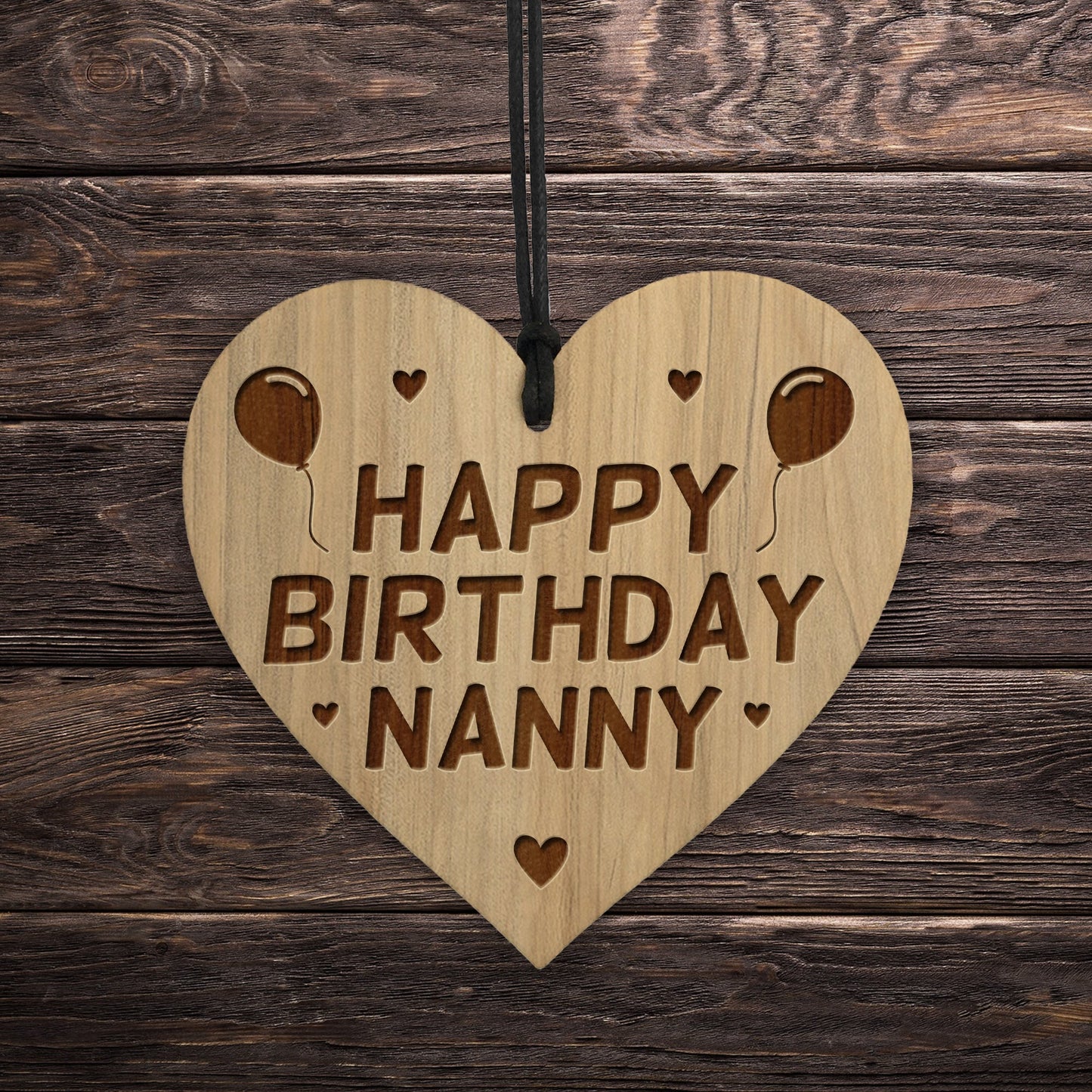 Birthday Gift For Nanny Wood Engraved Heart 40th 50th 60th 70th