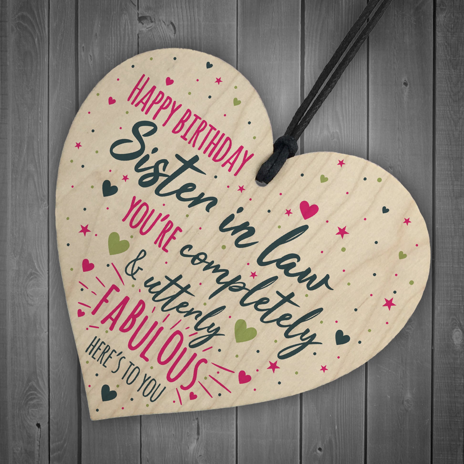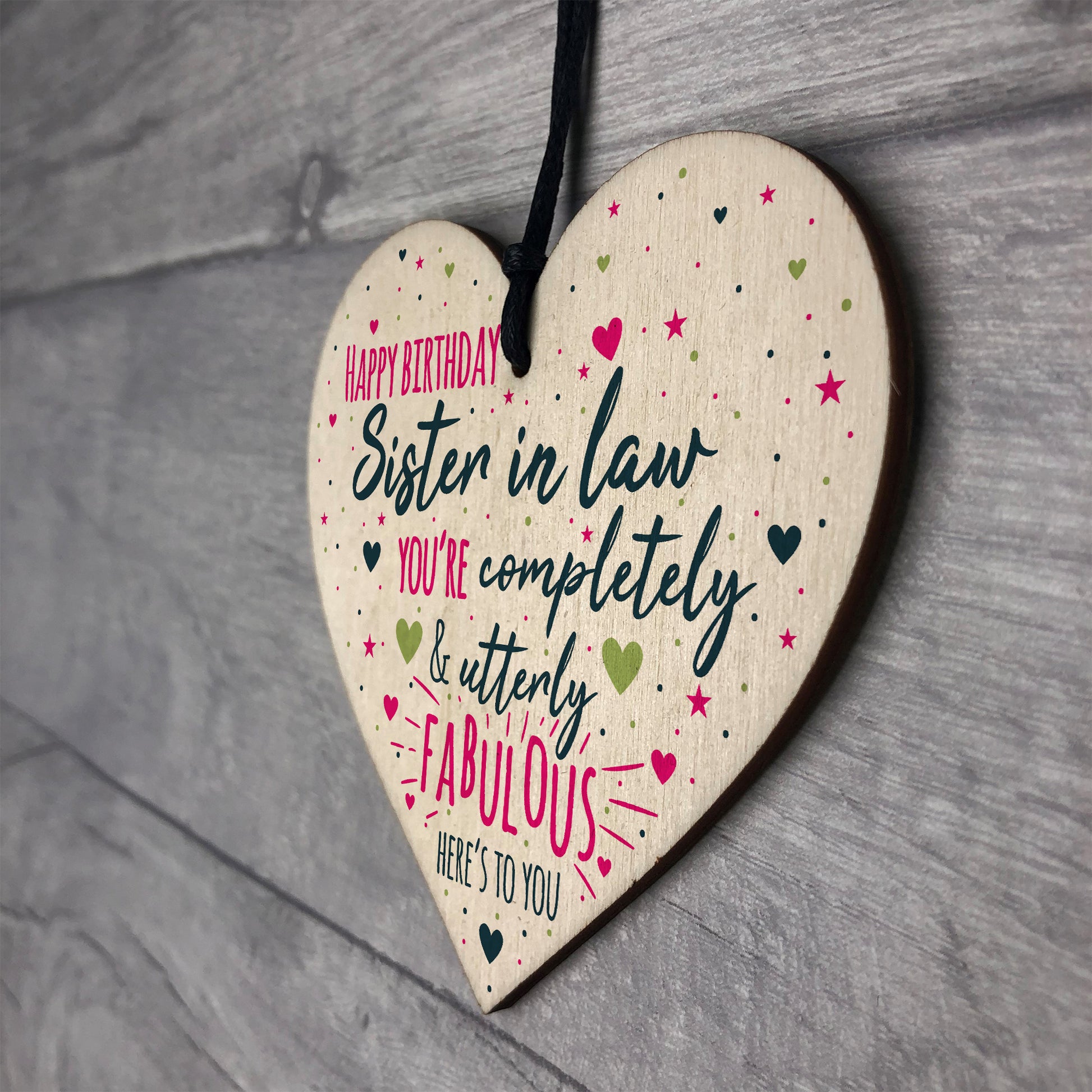 Birthday Sister In Law Gift Plaque Handmade Wooden Heart Sign