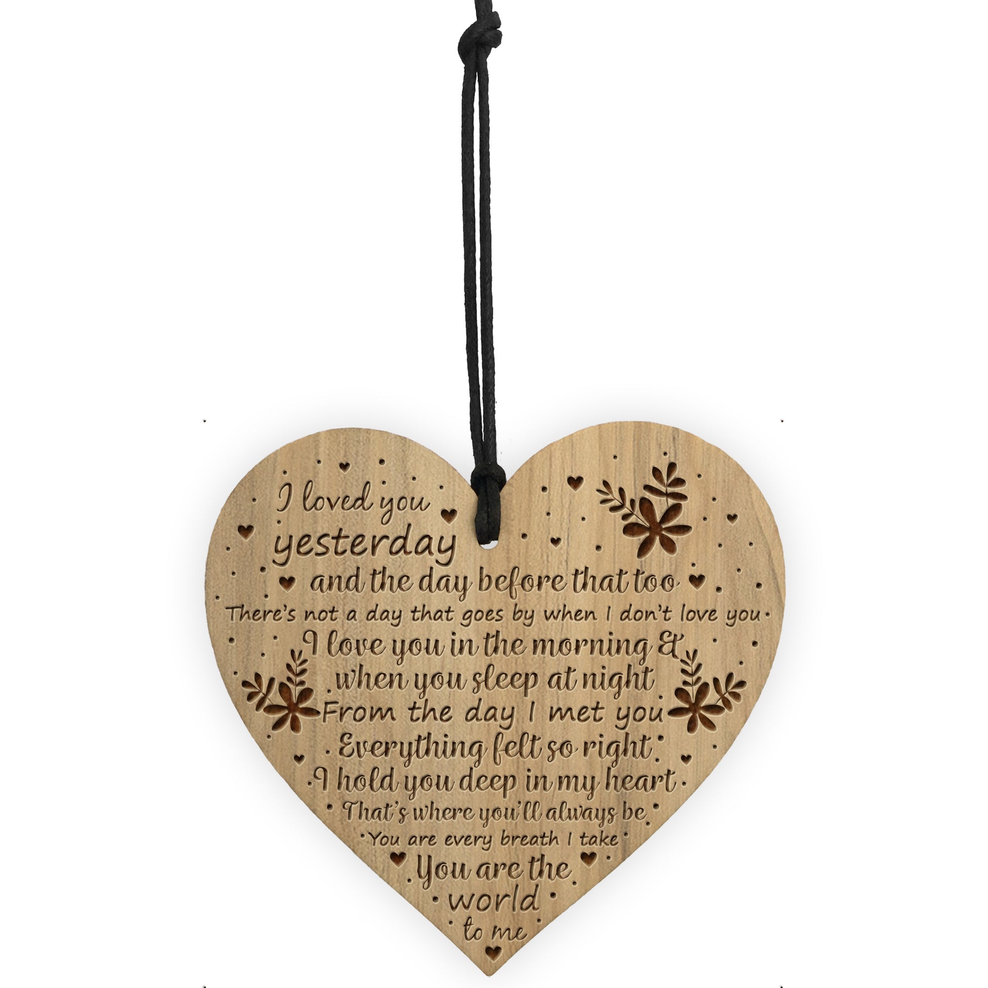 This wooden hanging heart plaque has a beautiful message engraved. This gift is suitable for a Anniversary, Birthday or Christmas. Give this gift with love and put a smile on the recipients face every time they read it.