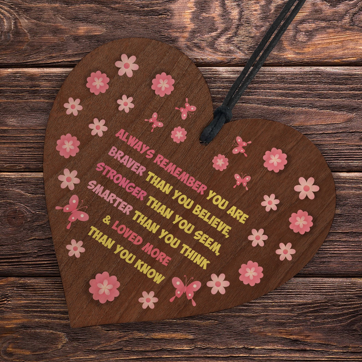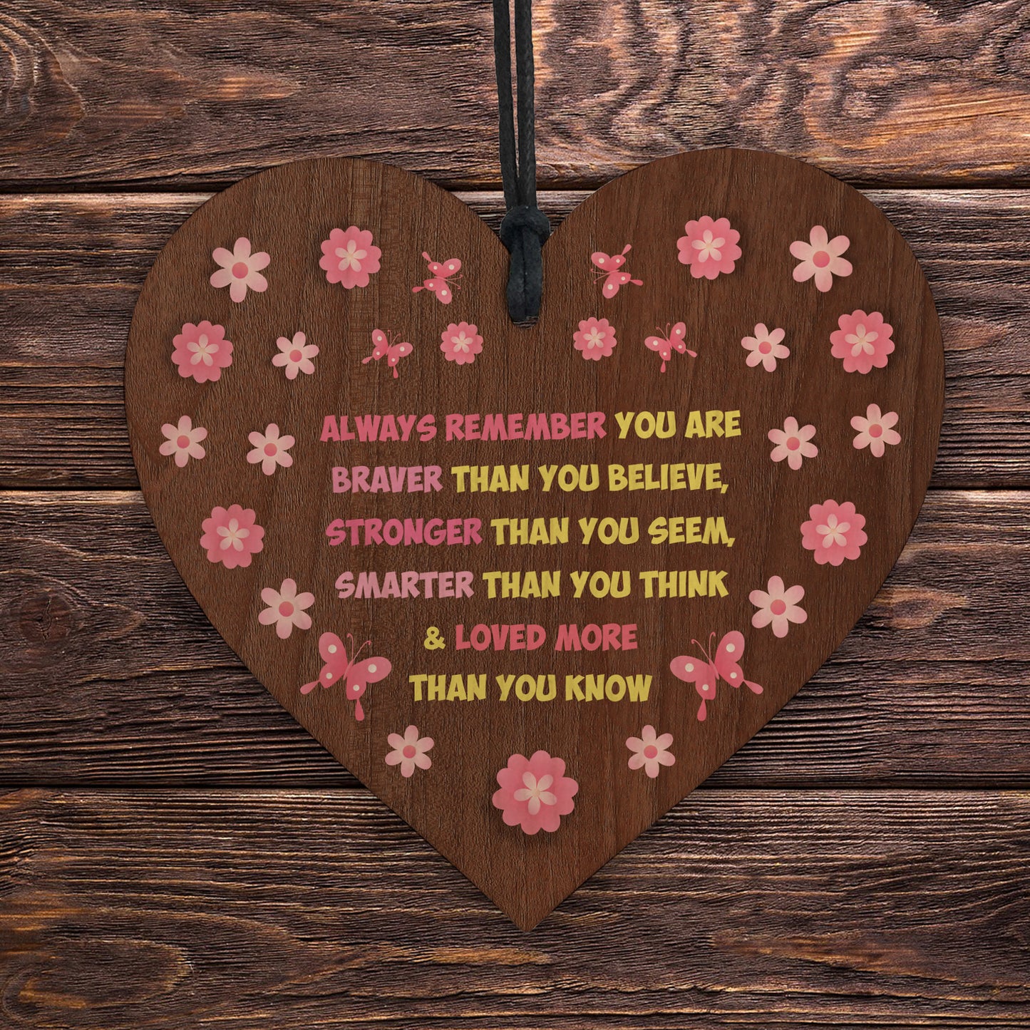 Braver Stronger Beautiful Wooden Heart Motivational Keepsake