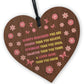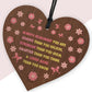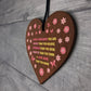 The hand crafted real wood heart measures 10cm, is gift packaged and includes a variety of waxed cotton cord to hang. We've made these for replacing traditional greetings cards, placing in hampers or on the next of a bottle, or to even hang on a Christmas Tree. There are so many uses, you are sure to not be dissapointed. We have thousands of exclusive designs, with original verses, that touch the heart.