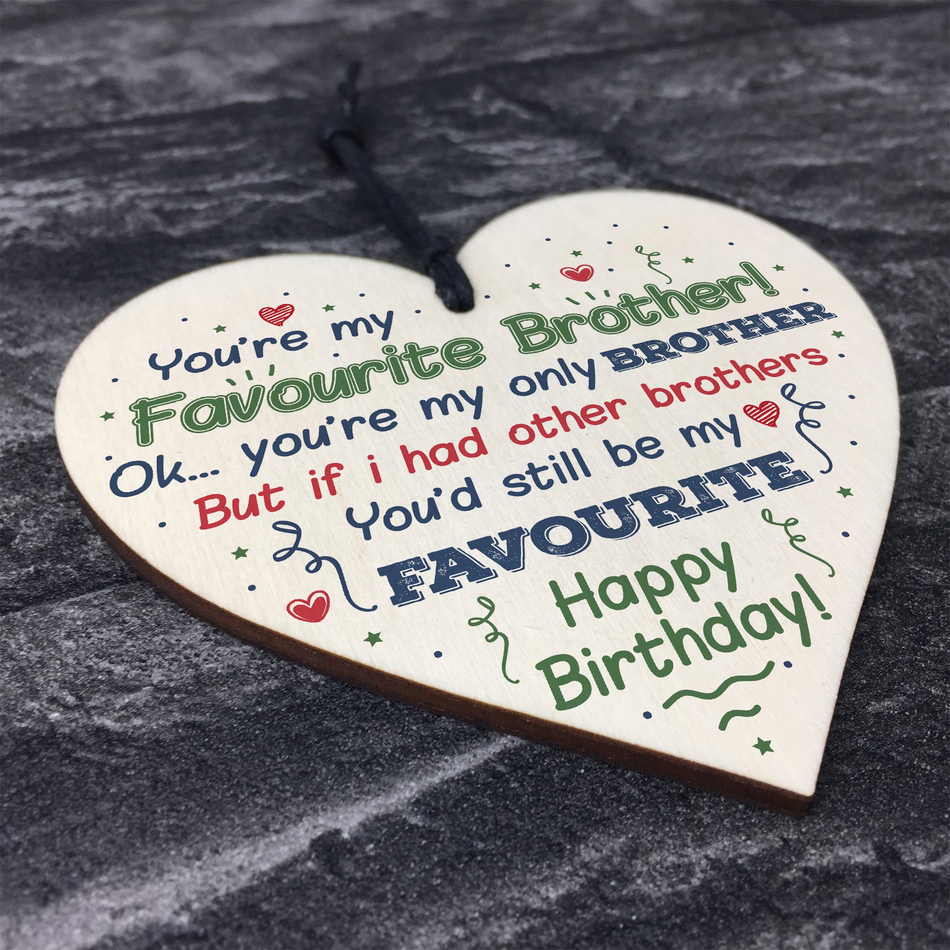 The sign is made from FSC Certified wood, and the design is permanently printed into the wood. The wooden heart is supplied with waxed cotton rope to allow easy hanging and looks great in any room of the house.