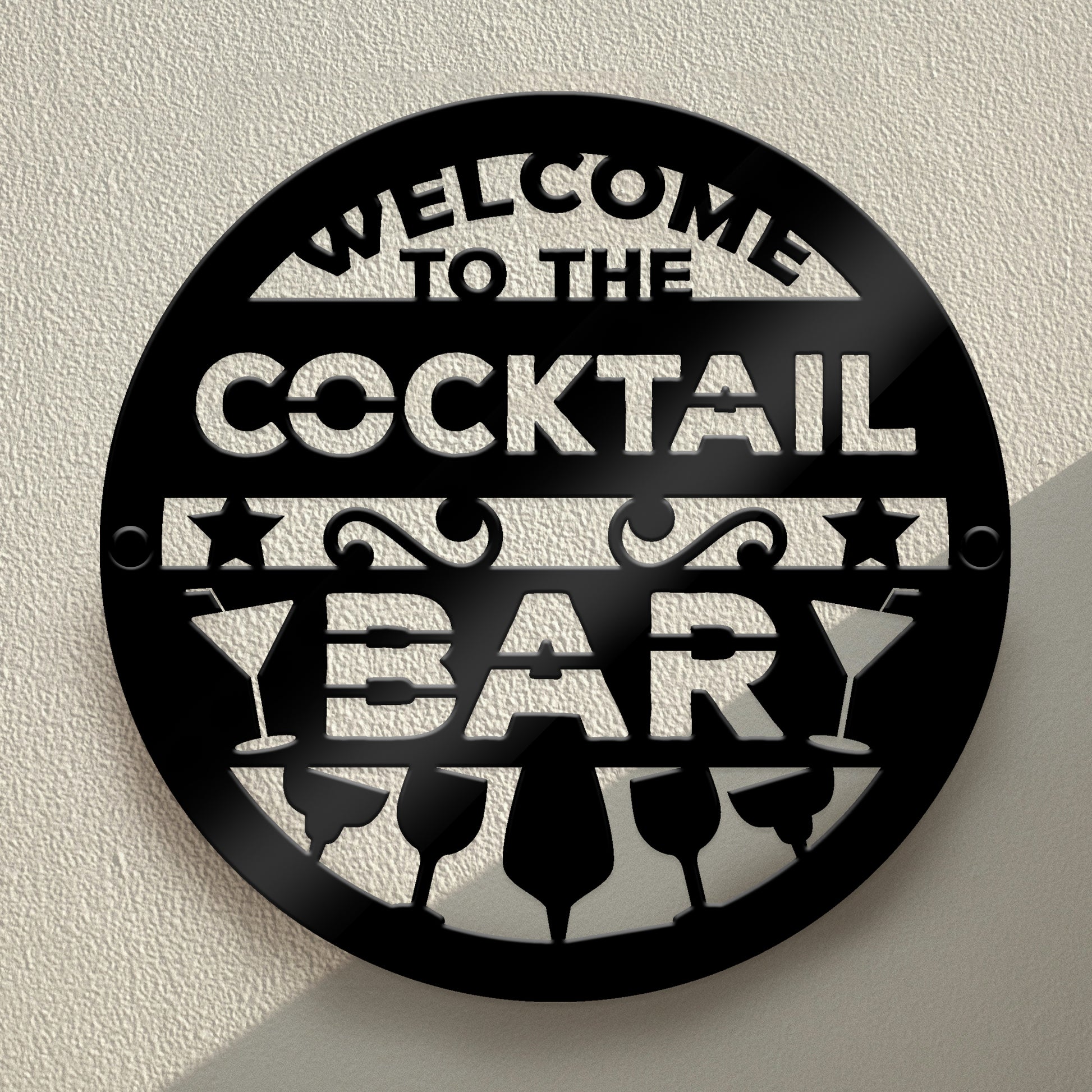Cocktail Bar Welcome Sign Wall Mounted Home Bar Pub Sign 35x35cm