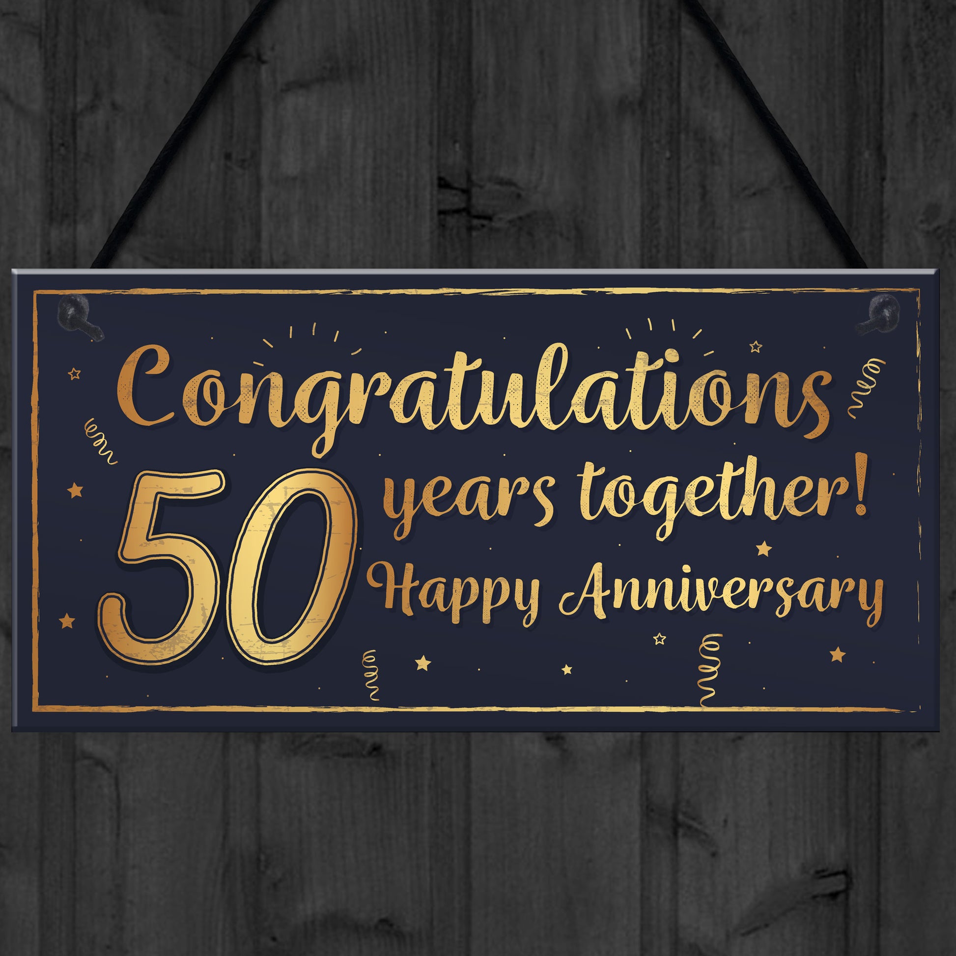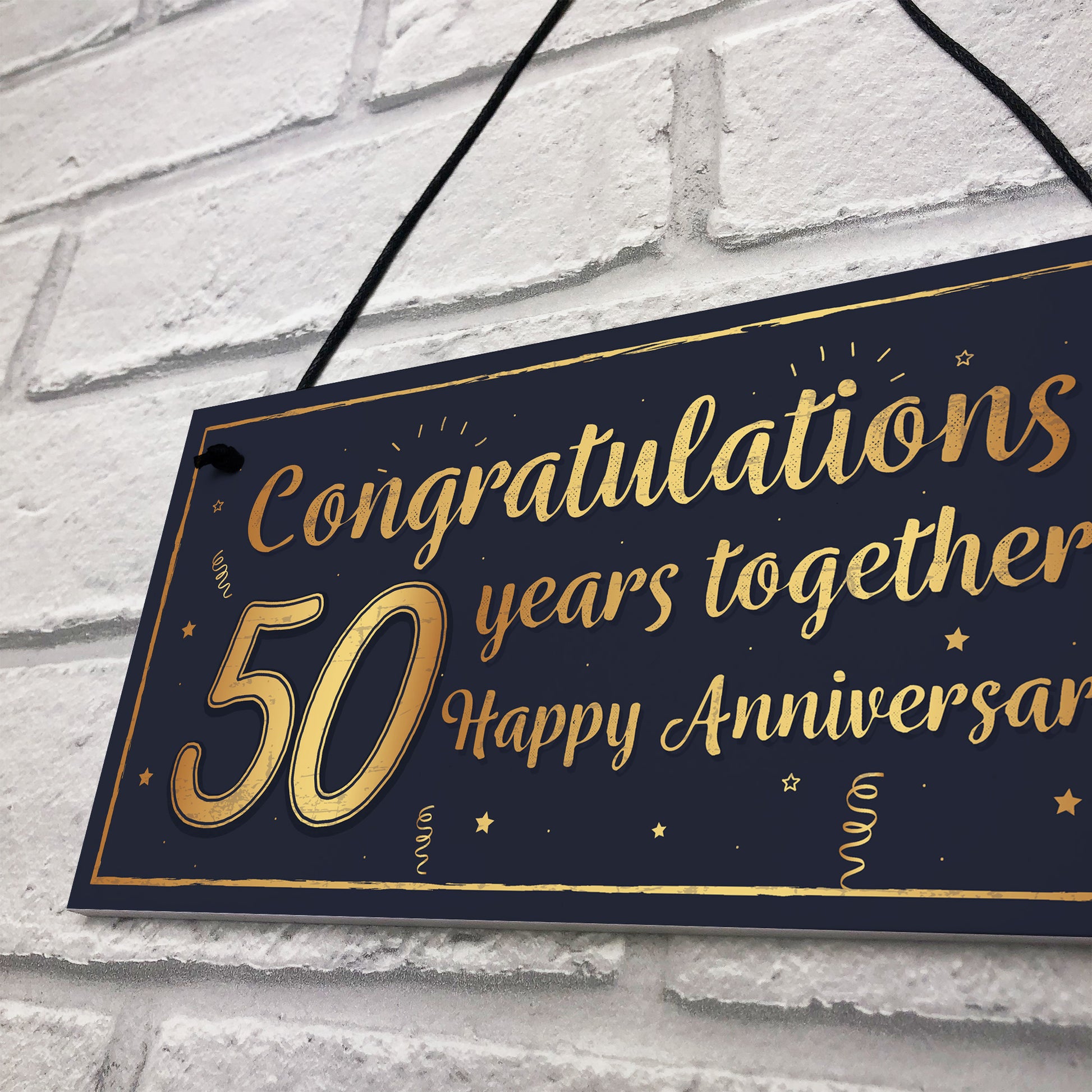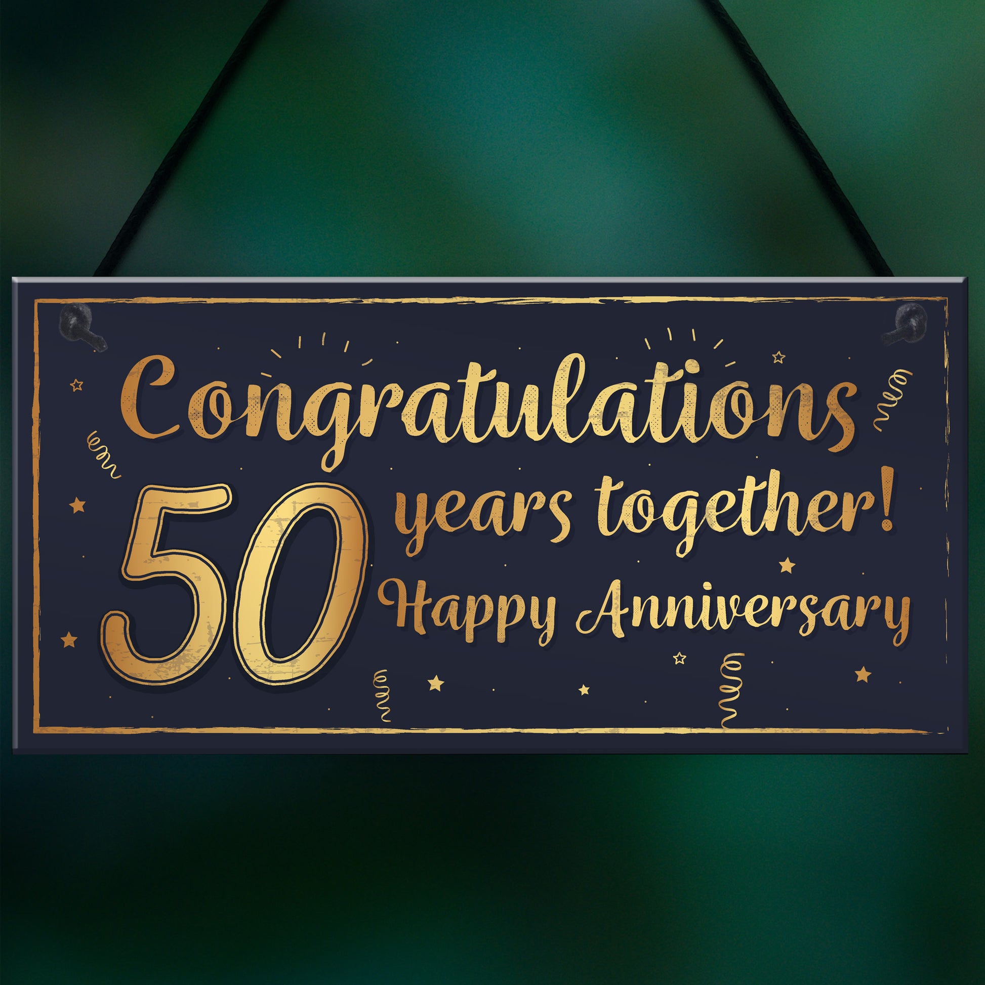 Congratulations 50th Wedding Anniversary Gift Plaque Gold Gift