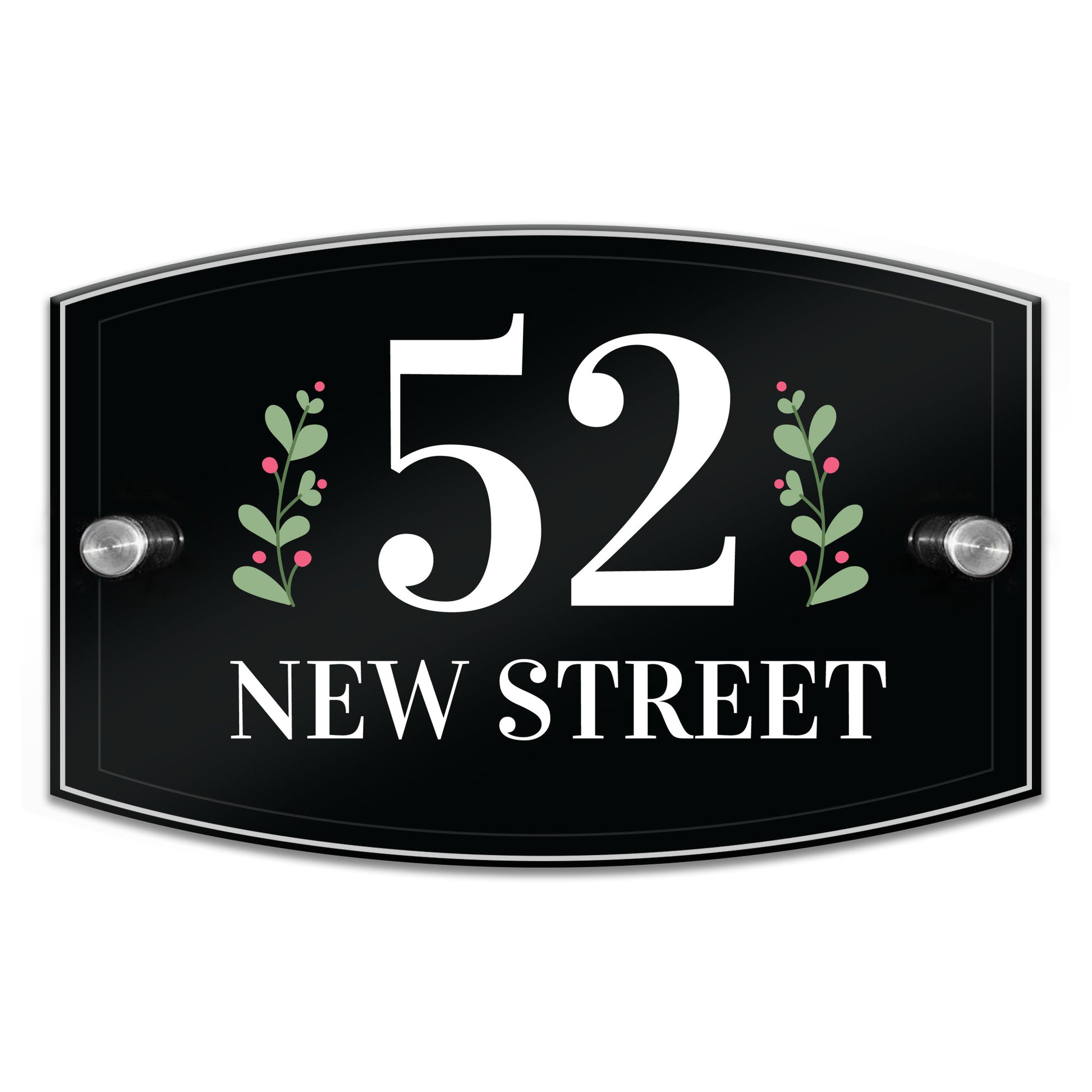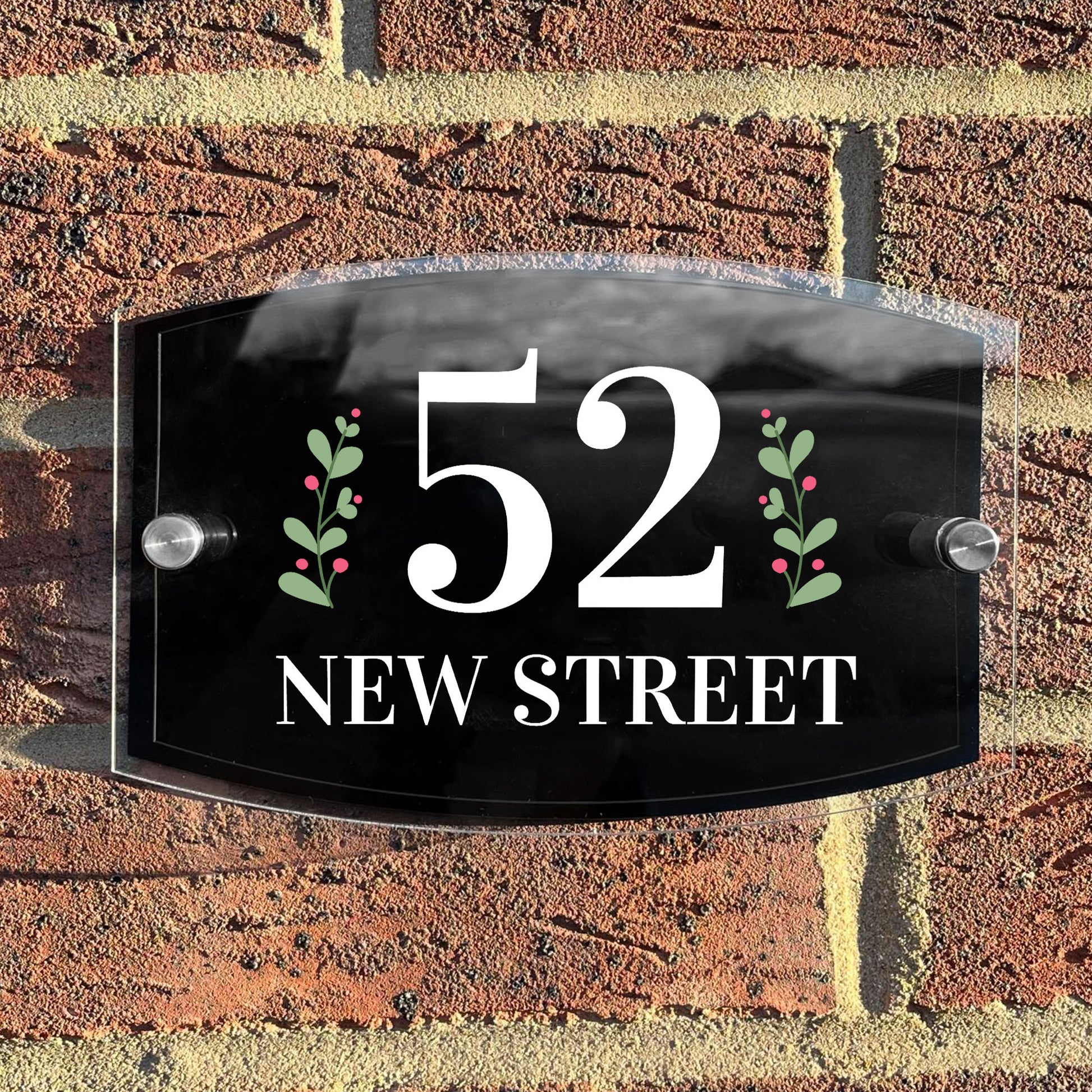 Measuring a sleek 20x13cm, it's the perfect canvas for displaying your house number and chosen design. The clear acrylic provides a polished backdrop for the printed details, while the black acrylic backing adds depth and contrast, creating a striking visual impact.