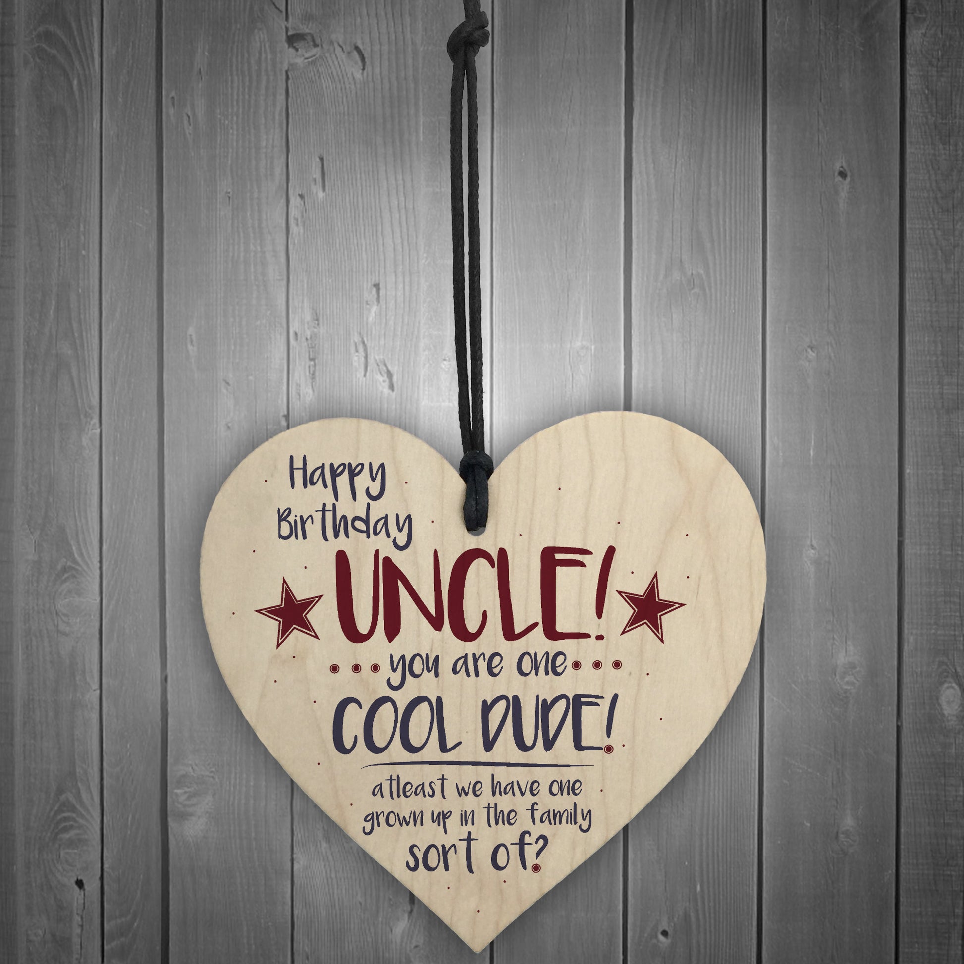 This gorgeous wooden heart plaque printed with this funny message would be the best gift for your Uncle on his birthday. Give this gift with love and put a smile on his face as soon as he reads it.
