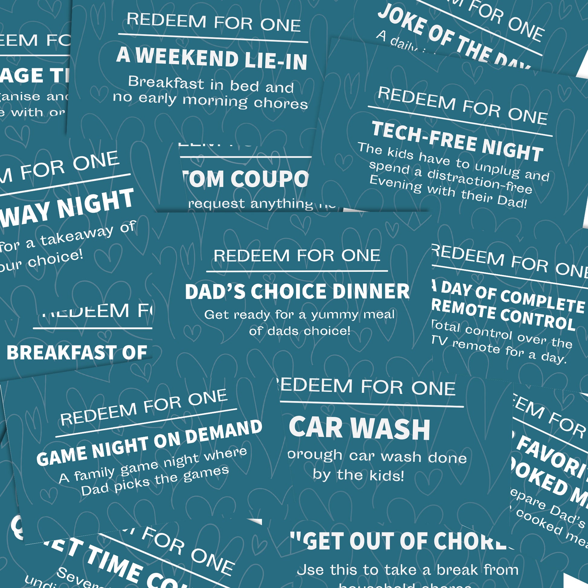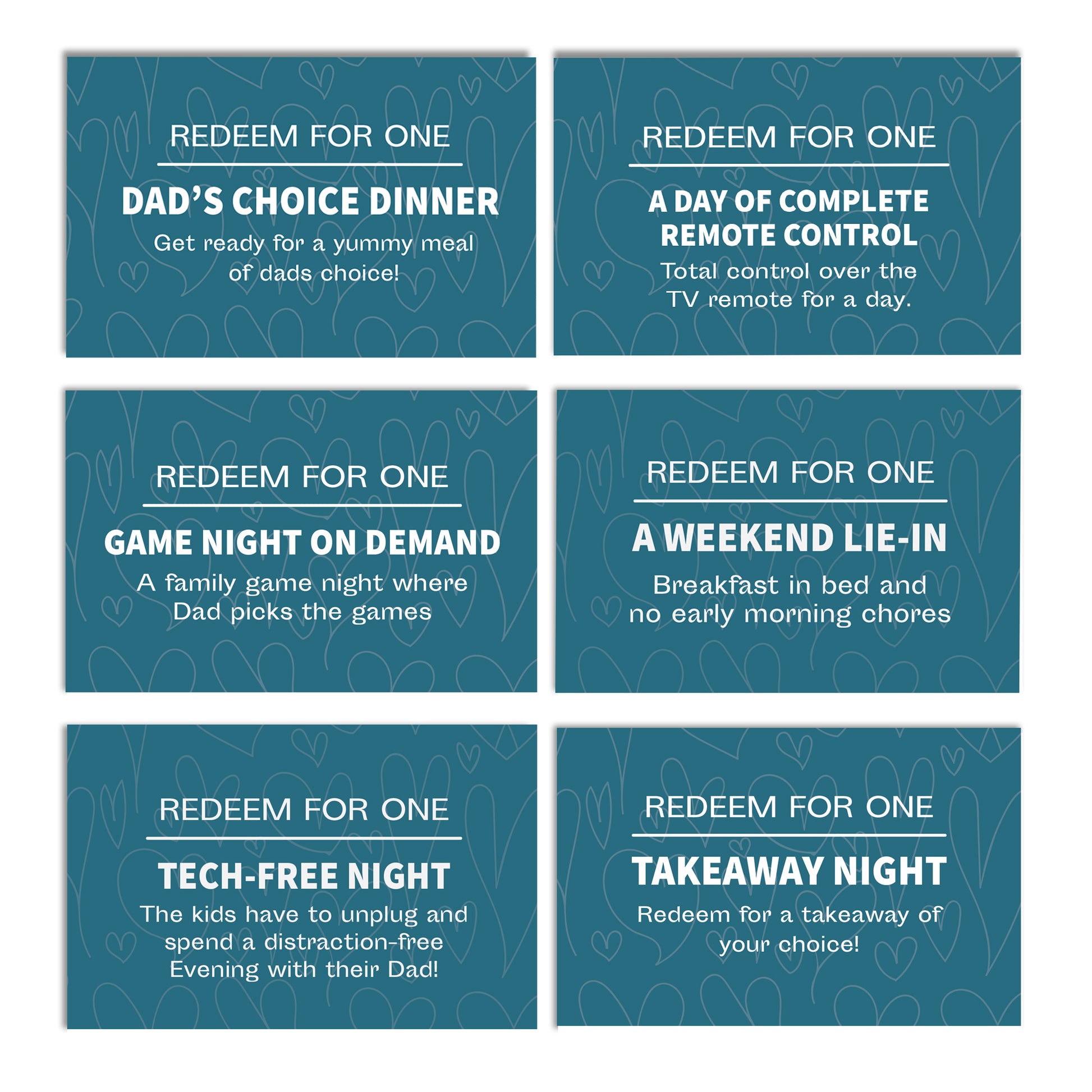 Easy to Use: Coupons are perforated for easy removal and clearly marked to explain what each offers. Dad can redeem them effortlessly with his wife or kids, making each voucher a simple joy rather than a hassle.