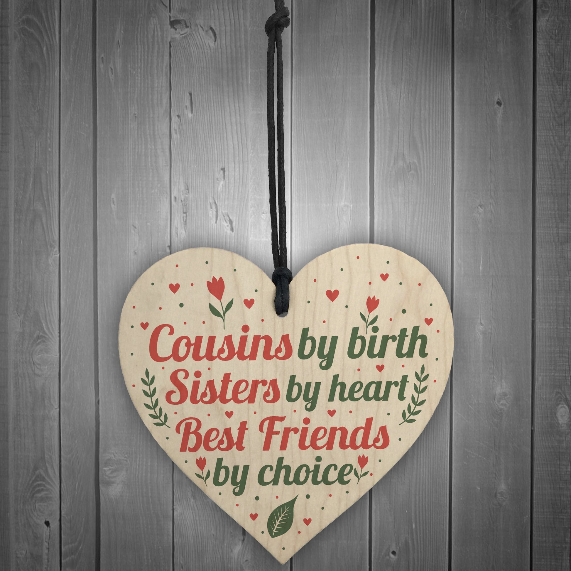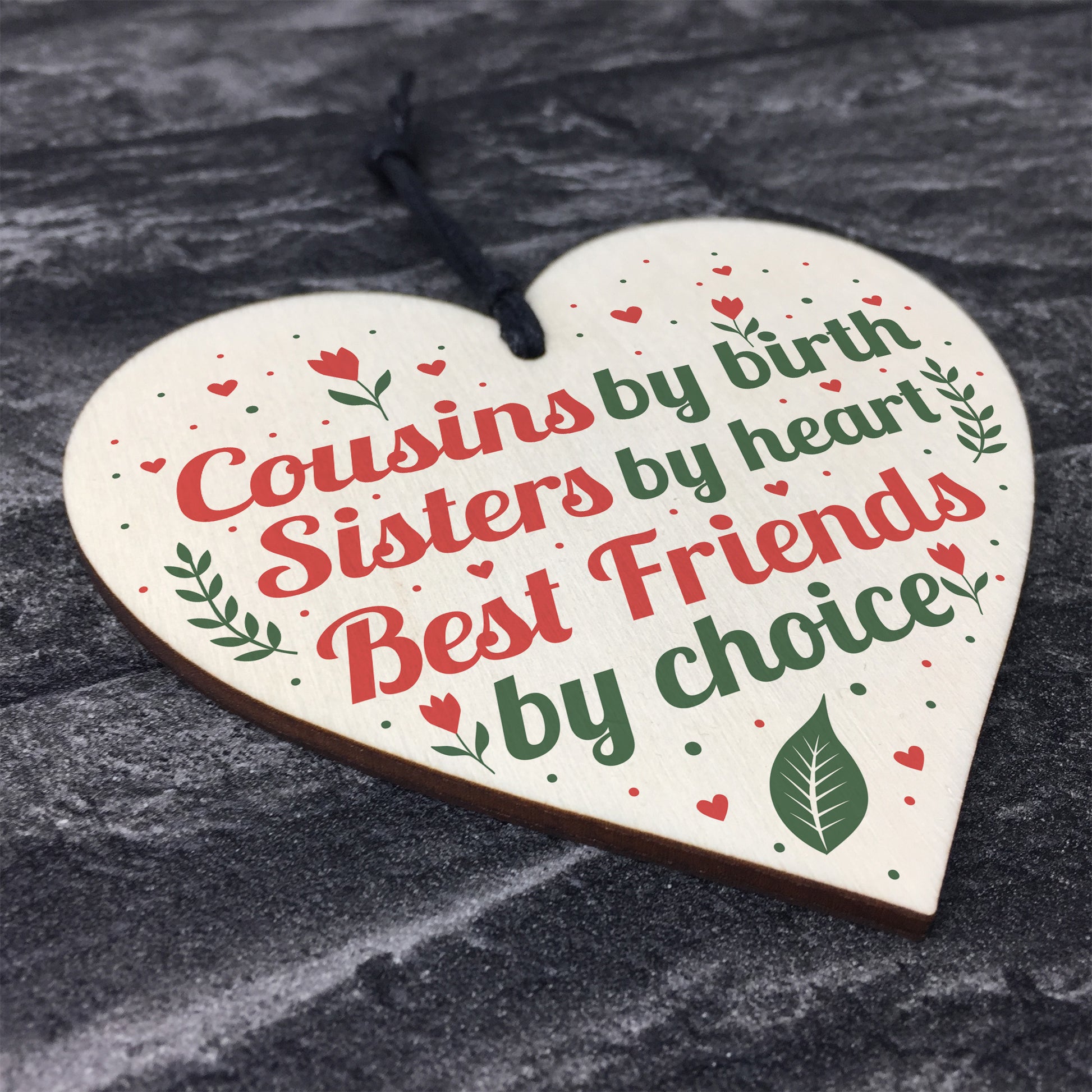 This gorgeous wooden heart plaque printed with this beautiful message would be a lovely gift for your Cousin and Best Friend for their birthday or for Christmas this year. Give this gift with love and put a smile on your Cousin's face every time they read it. Lovely keepsake!