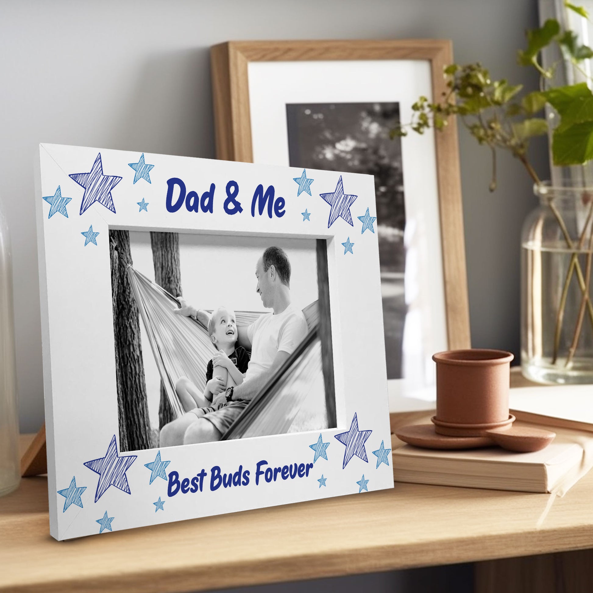 With its sturdy construction and elegant design, this white wooden frame is built to last and will withstand the test of time. It's a wonderful way to remind your Dad every day how much you love him with this sat on the side for him to look at.