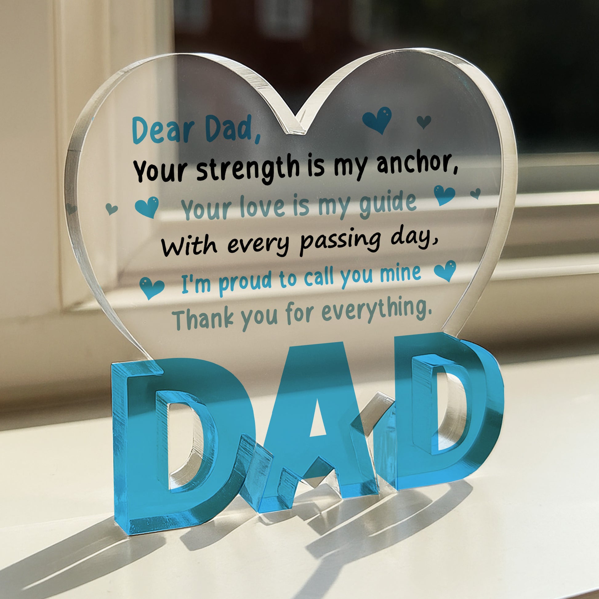 Looking for the perfect way to show Dad just how much he means to you? This Heartfelt Acrylic Dad Plaque is more than just a decorative piece, it's a daily reminder of your love, appreciation, and the special bond you share.