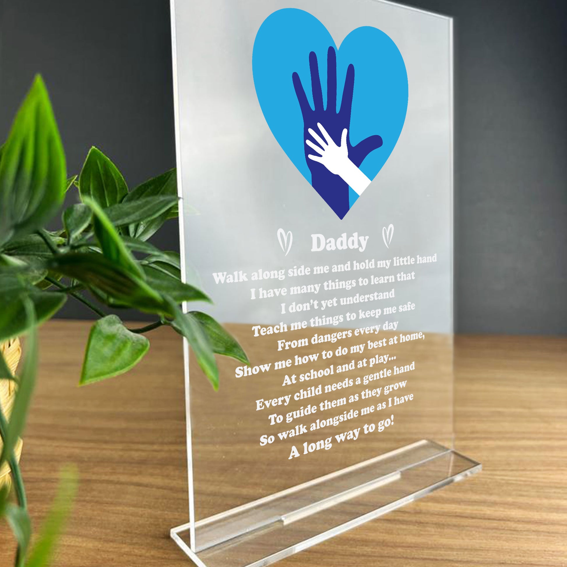 A Beautifully Printed A5 Clear Acrylic standing plaque. Give this gift with love to your Dad