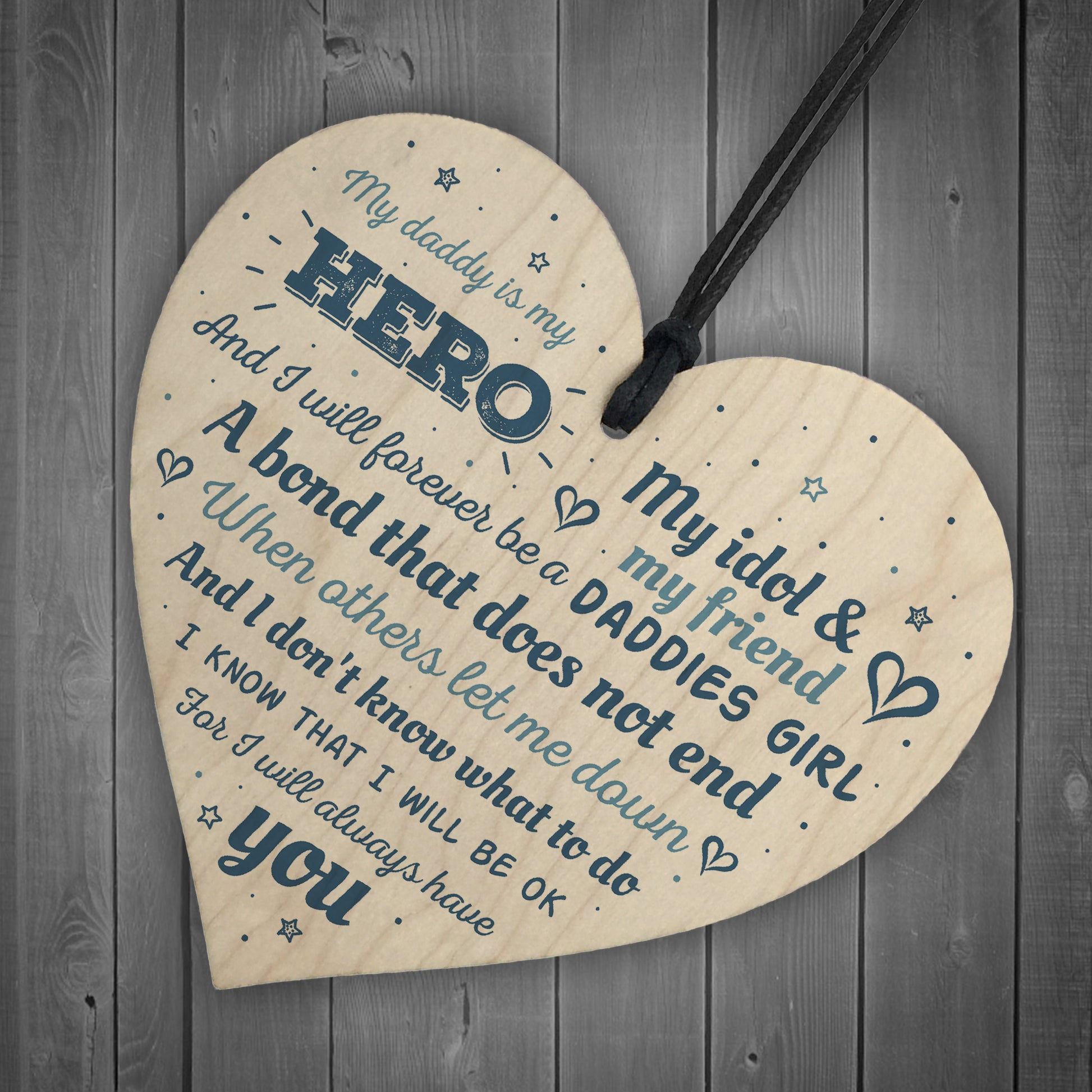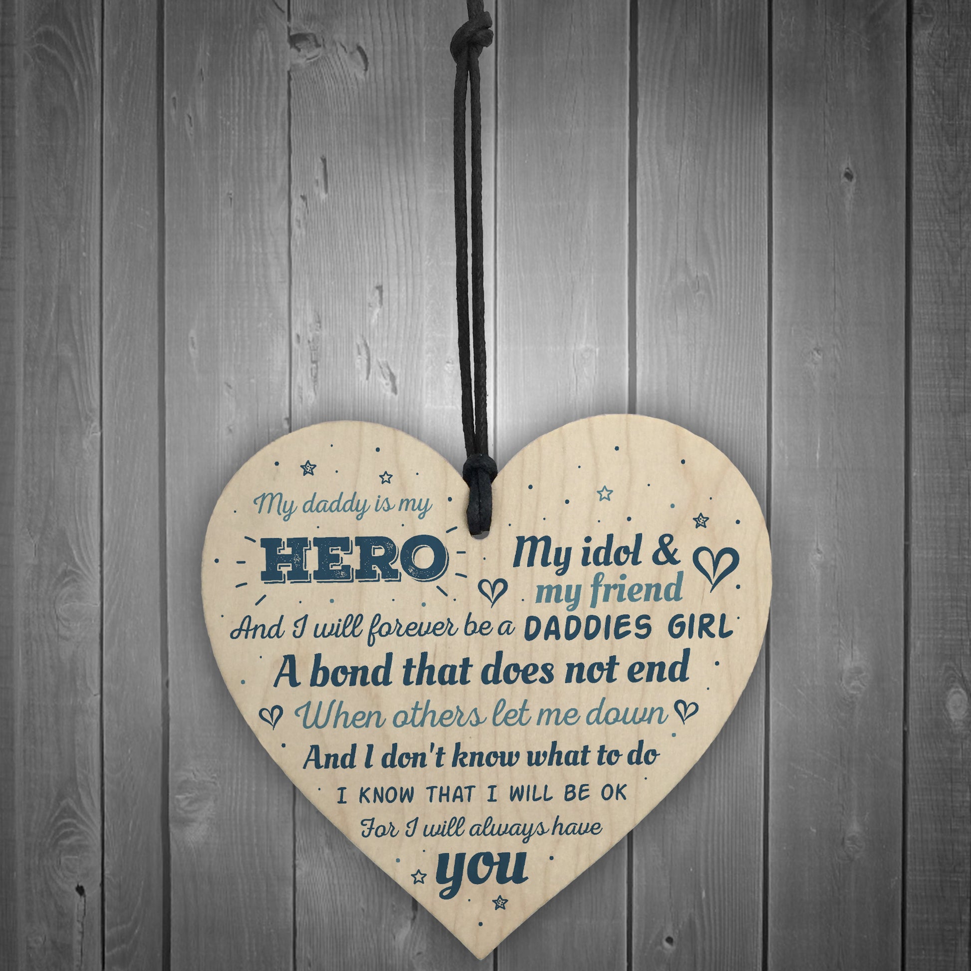 Daddies Girl Dad Gift Handmade Wooden Heart Sign Card Birthday