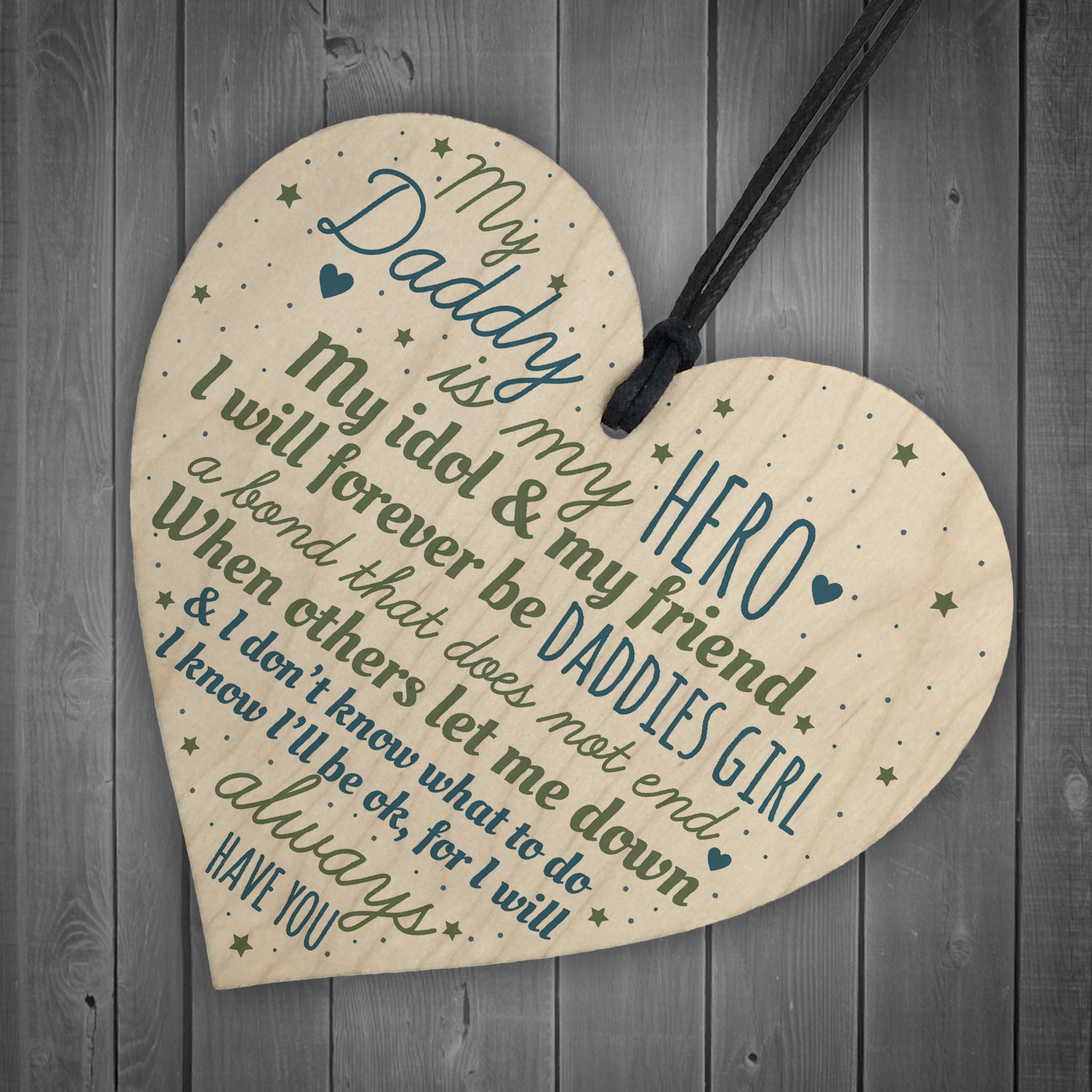 A gorgeous wooden heart plaque printed with a beautiful message for your father on his birthday, for fathers day or just to say a big THANK YOU for being so amazing!. Give this gift with love and put a smile on your dad's face every time he reads it.