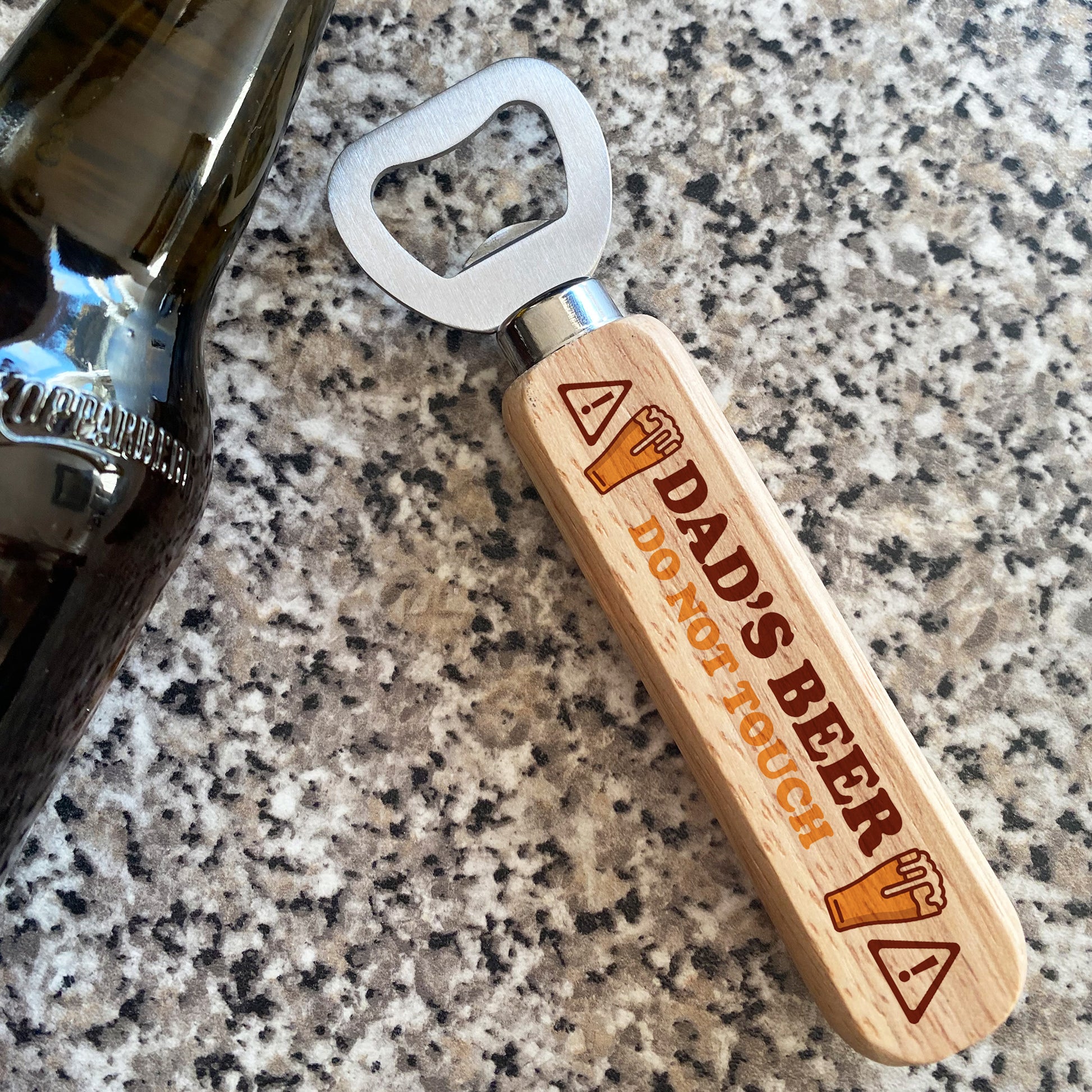 A high quality Metal / Wooden bottle opener with precise top quality printing to provide the best finish! A novelty / funny gift idea to give to your DAD, Make sure no one touches his beer again! Perfect for your Dad's Birthday or Fathers Day! Give him something he can keep and treasure for years to come! A long lasting gift that will be loved by any man!