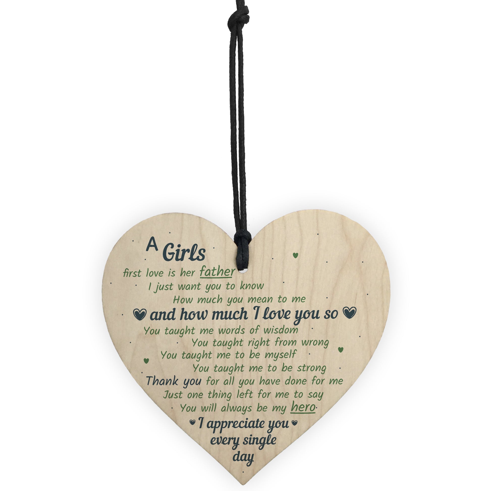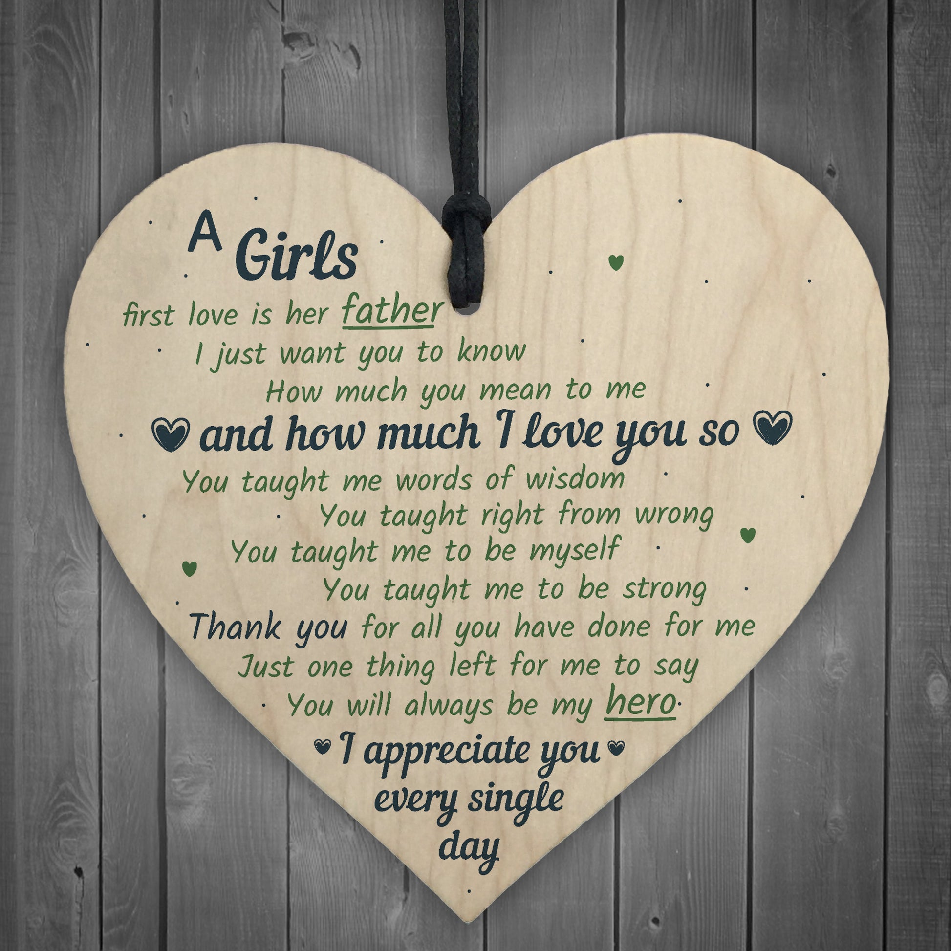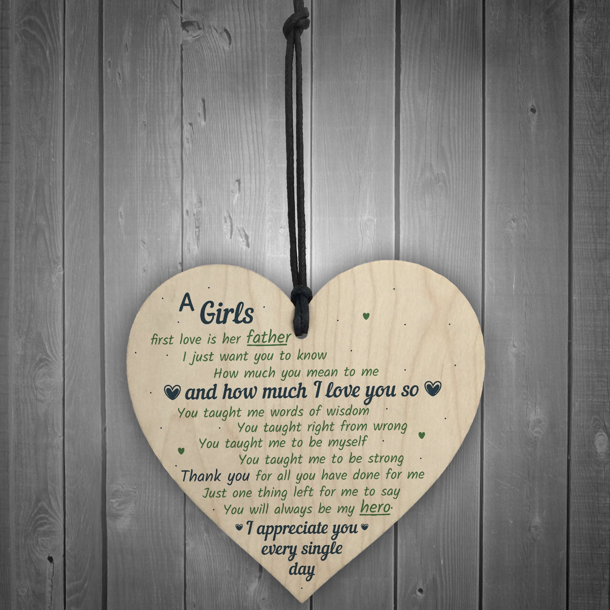 Father Girls First Love Wood Heart DAD Daddy Fathers Day Gift