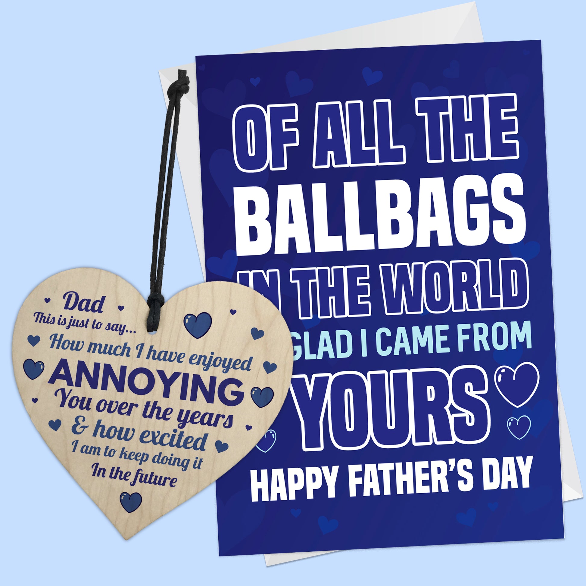 Fathers Day Card And Funny Wooden Heart Gift For Dad From Son