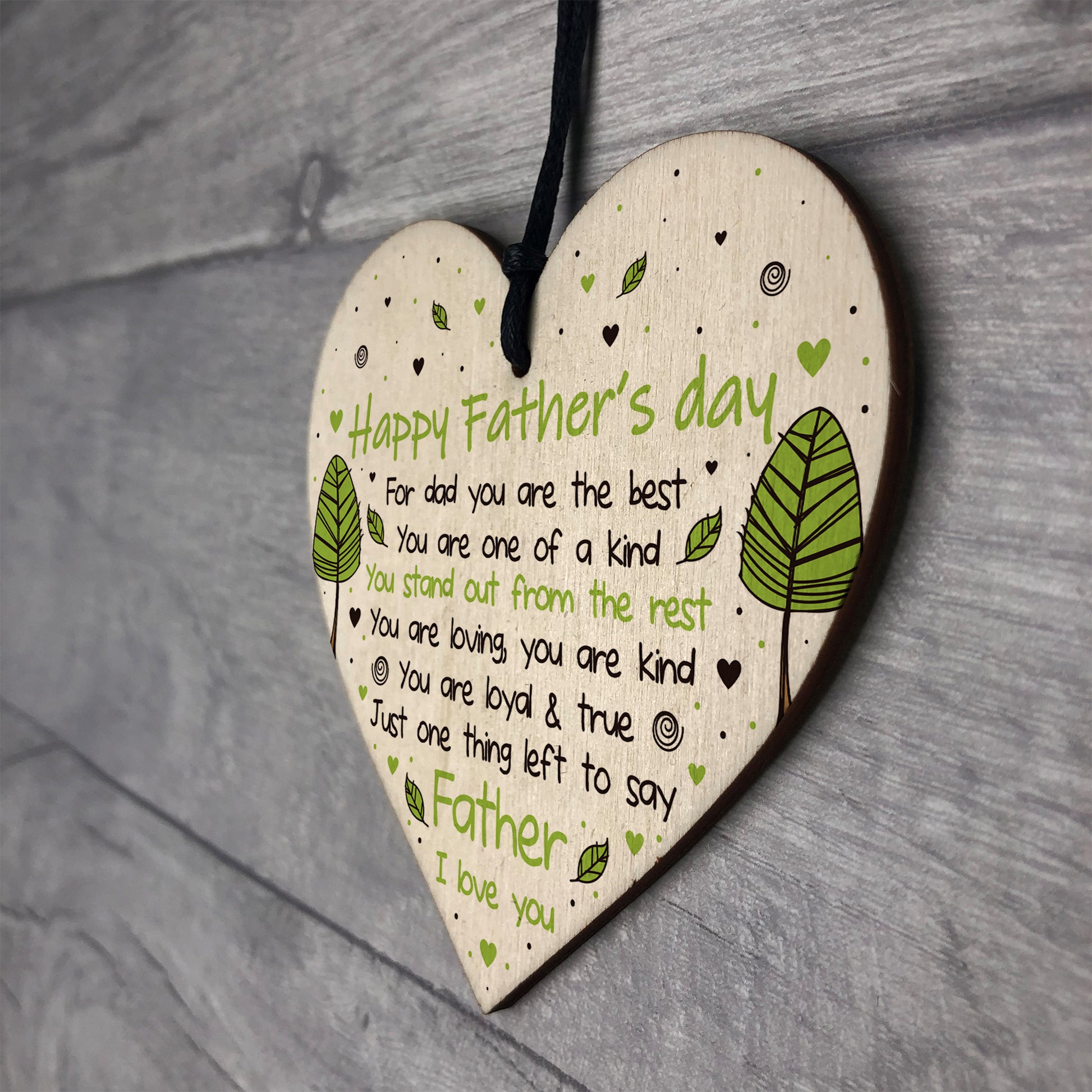 The sign is made from FSC Certified wood, and the design is permanently printed into the wood. The wooden heart is supplied with waxed cotton rope to allow easy hanging and looks great in any room of the house.