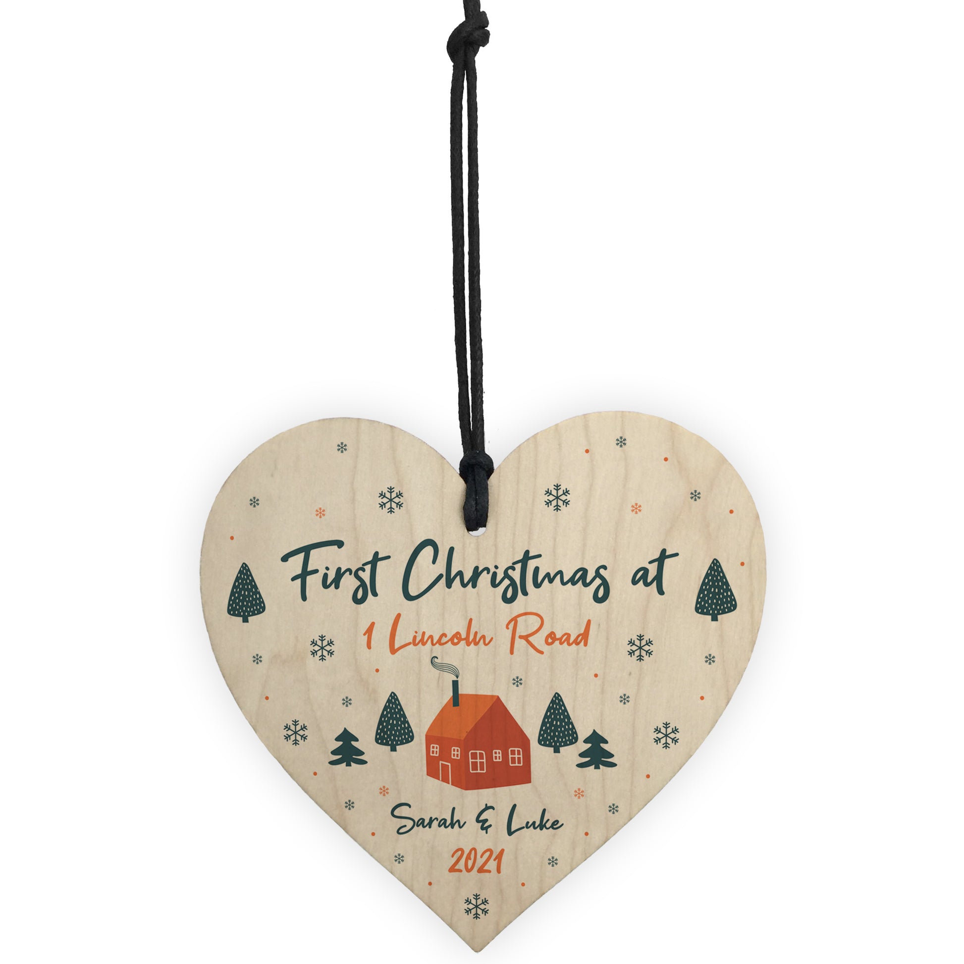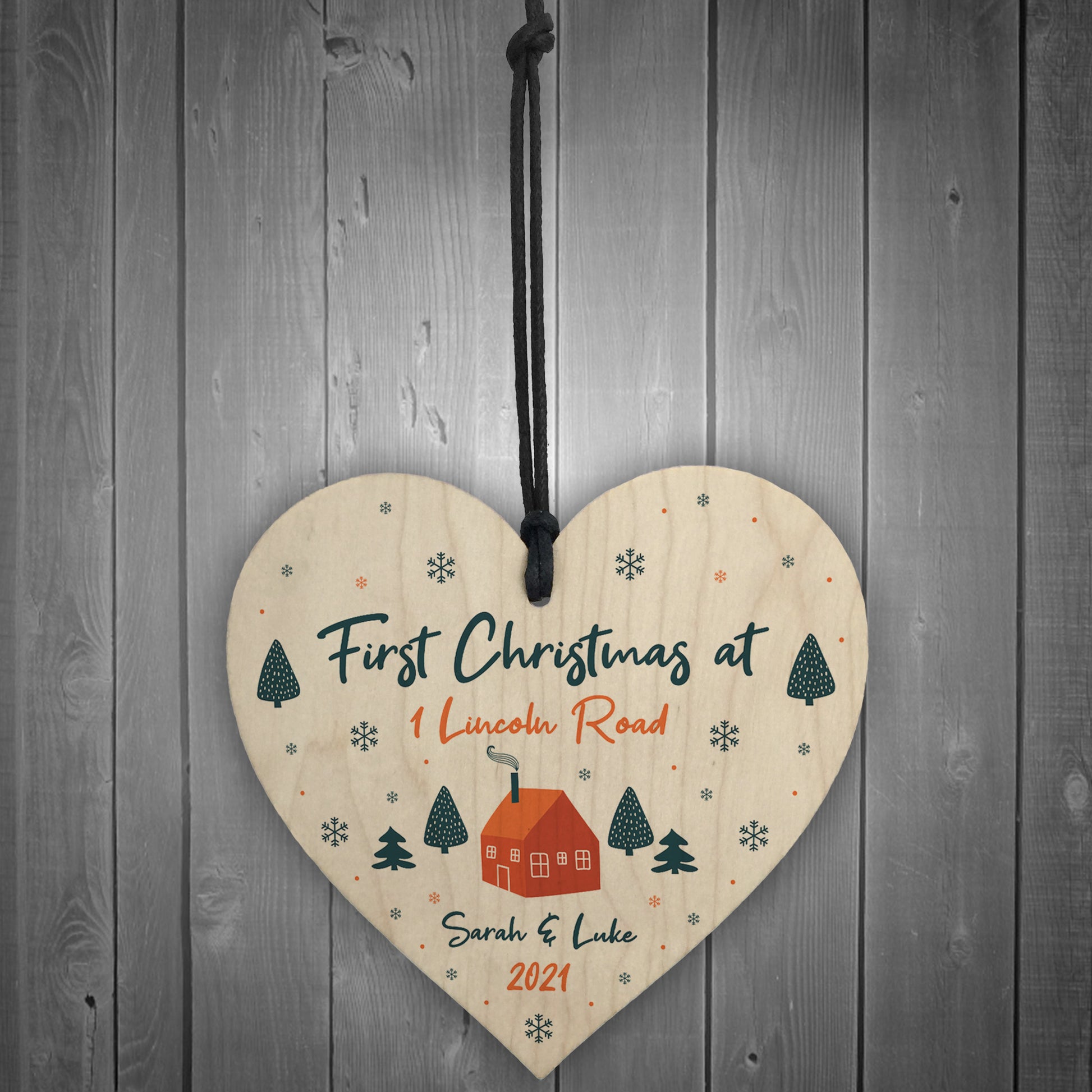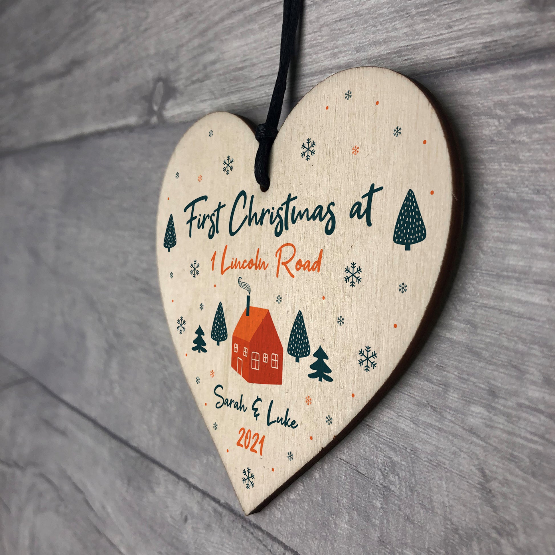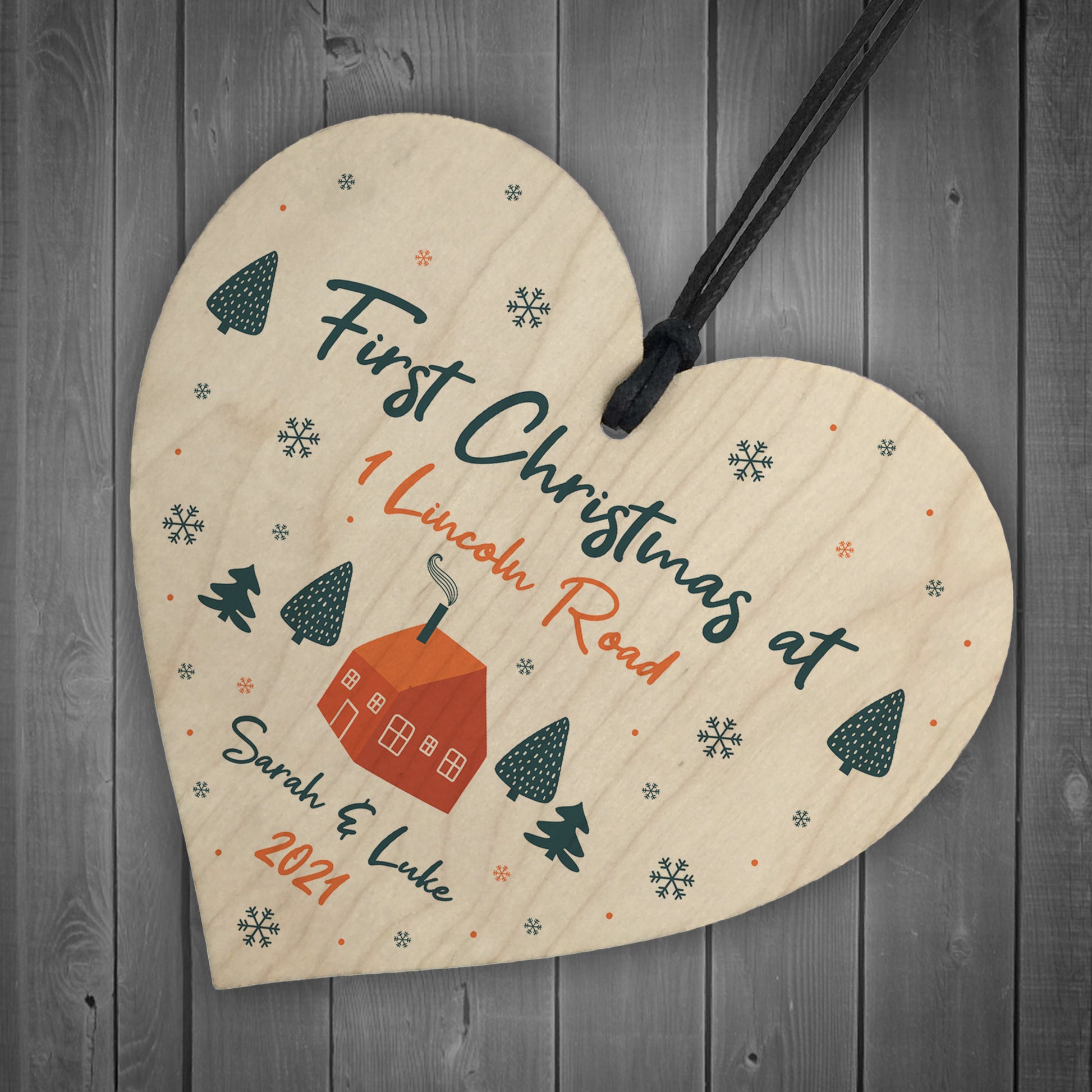First Christmas Bauble New Home Gift Personalised Wood Decor