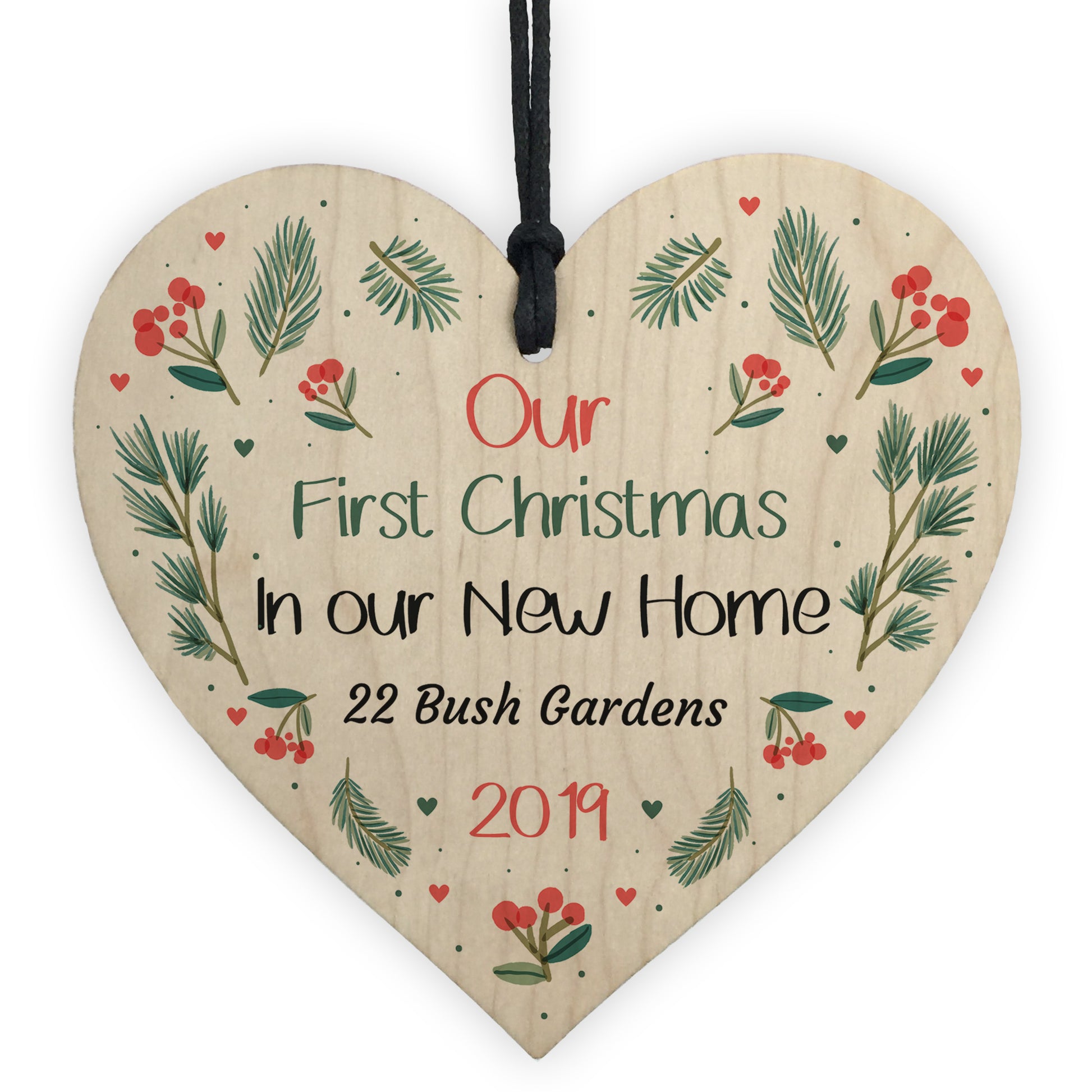 First Christmas In New Home Bauble Wooden Heart Xmas Decoration