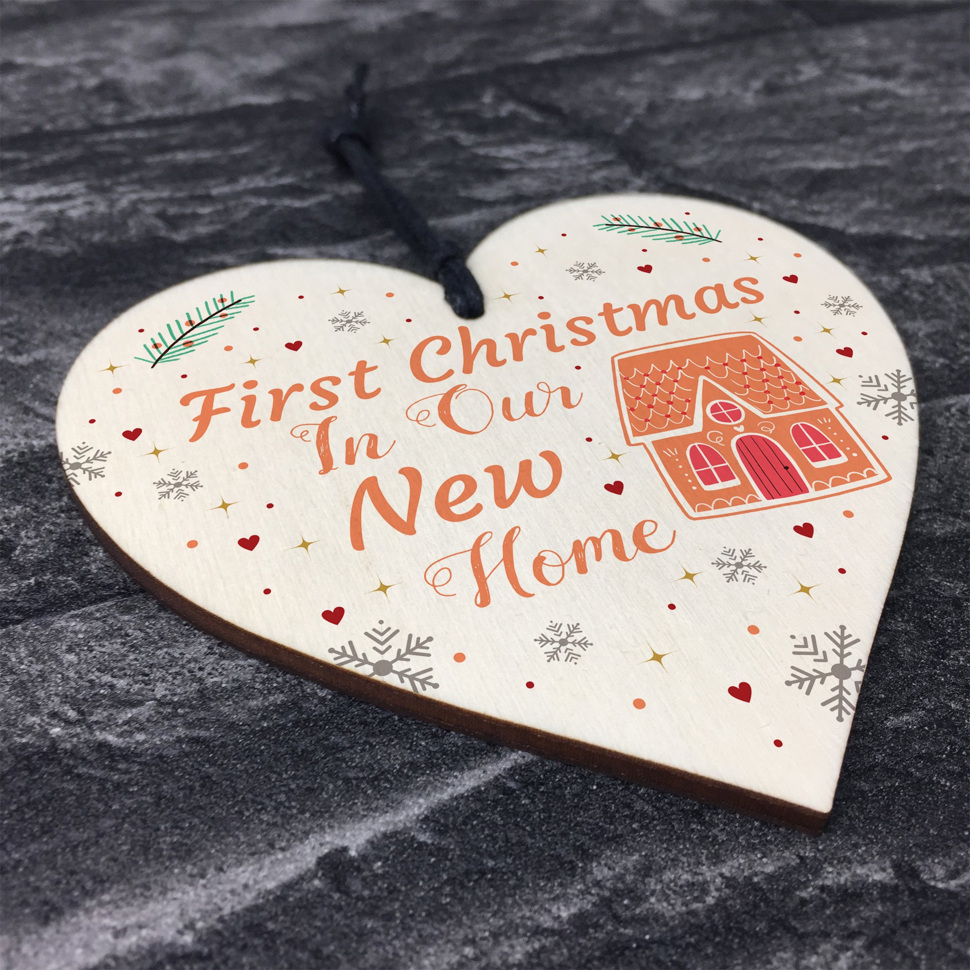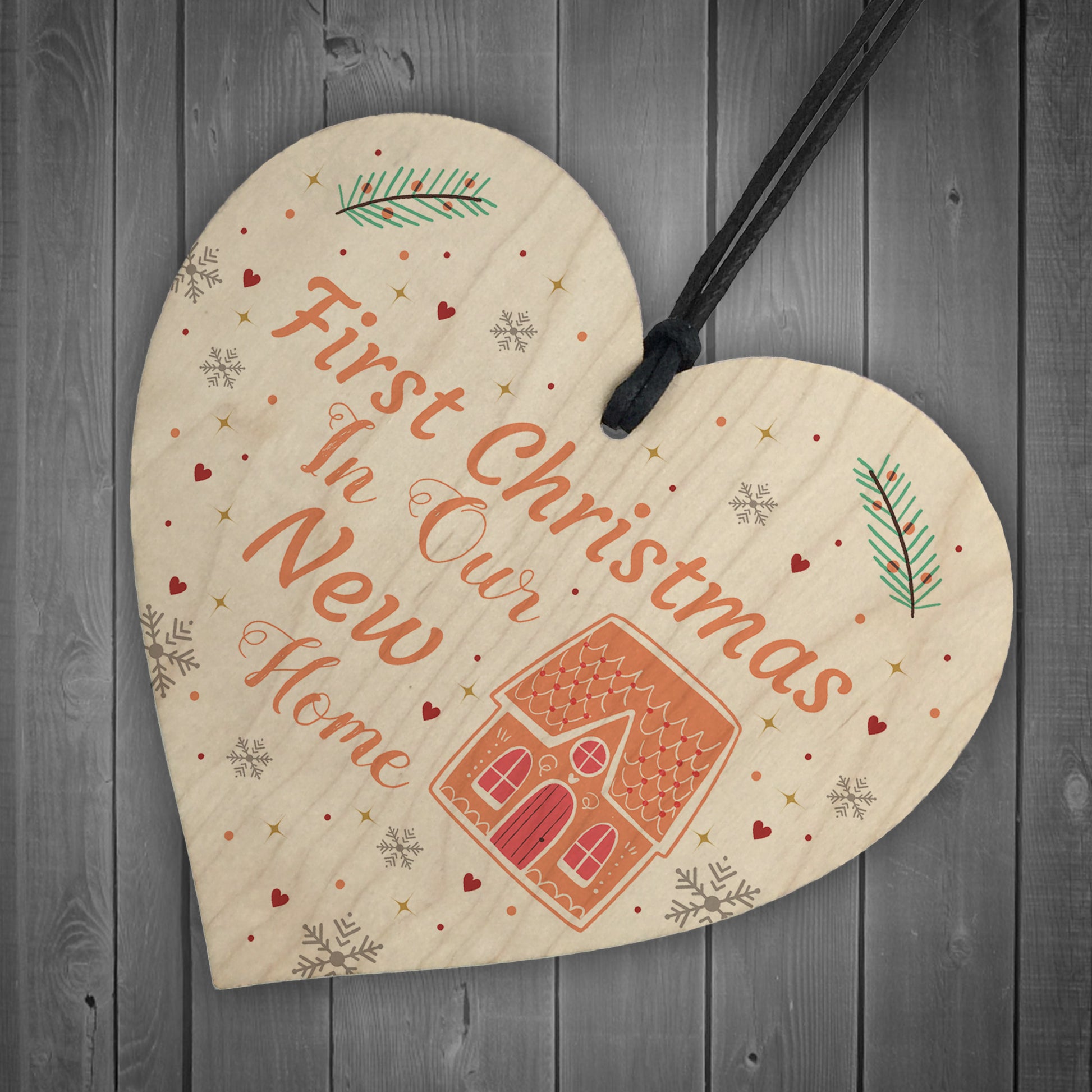 First Christmas New Home Gift Personalised Wood Heart Tree Decor