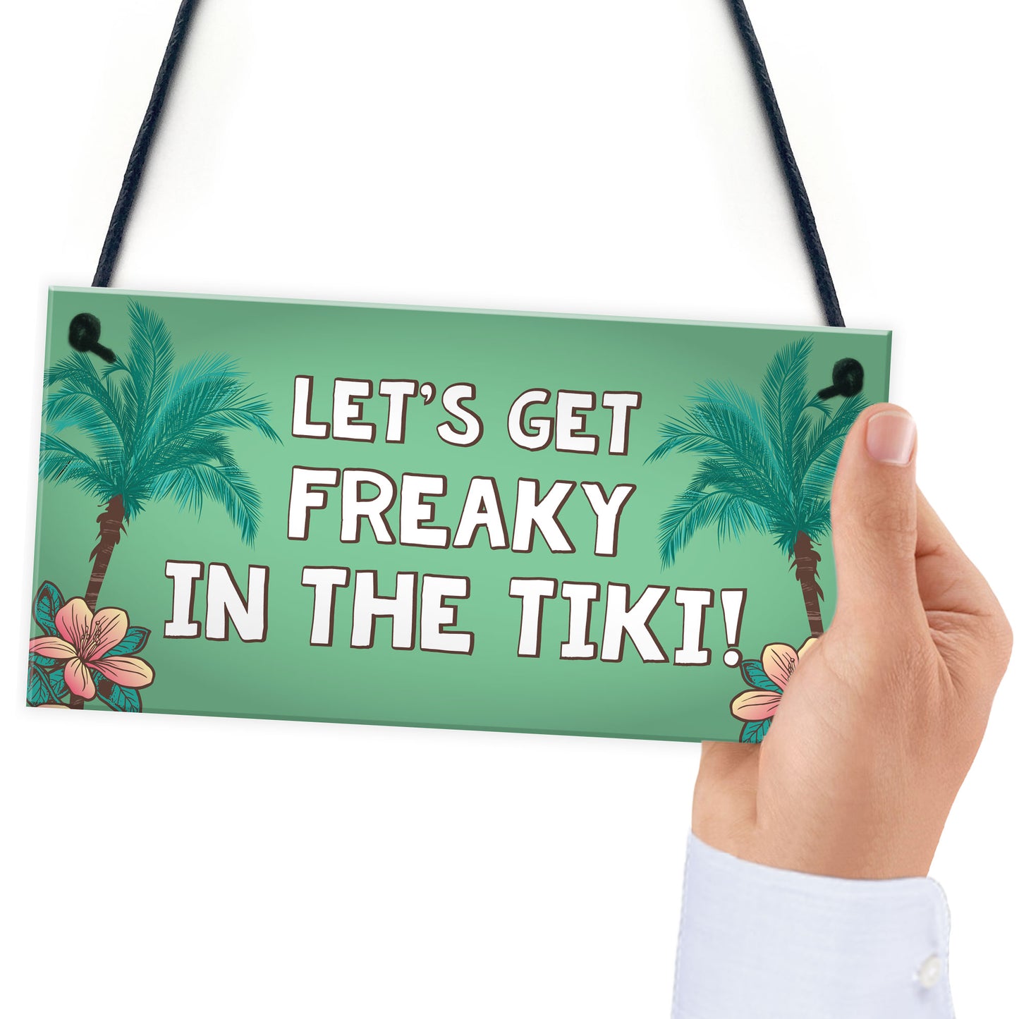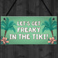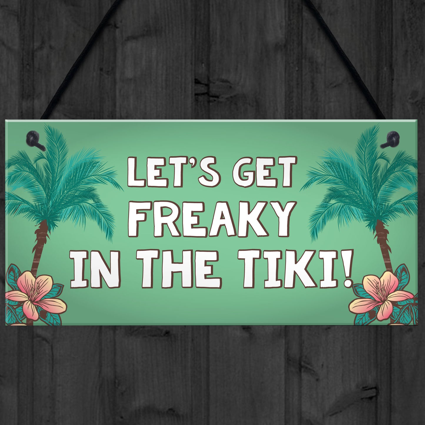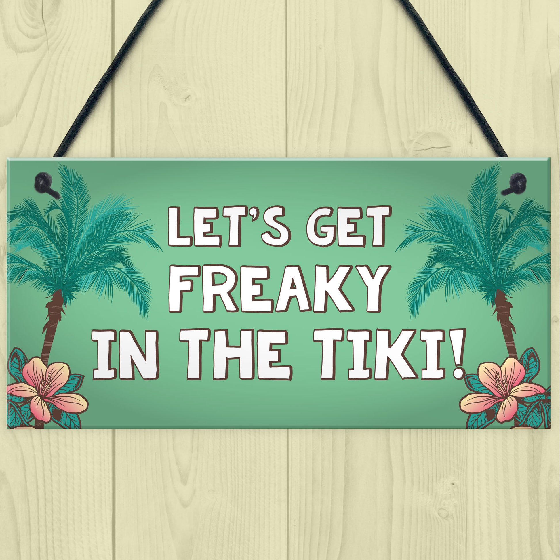 LET'S GET FREAKY IN THE TIKI! A novelty decor sign for your tiki bar / home bar. This gorgeous plaque makes an amazing Birthday or Christmas gift but is also a great gift anytime of the year. Supplied ready to hang, a beautiful keepsake that will be treasured for years to come.