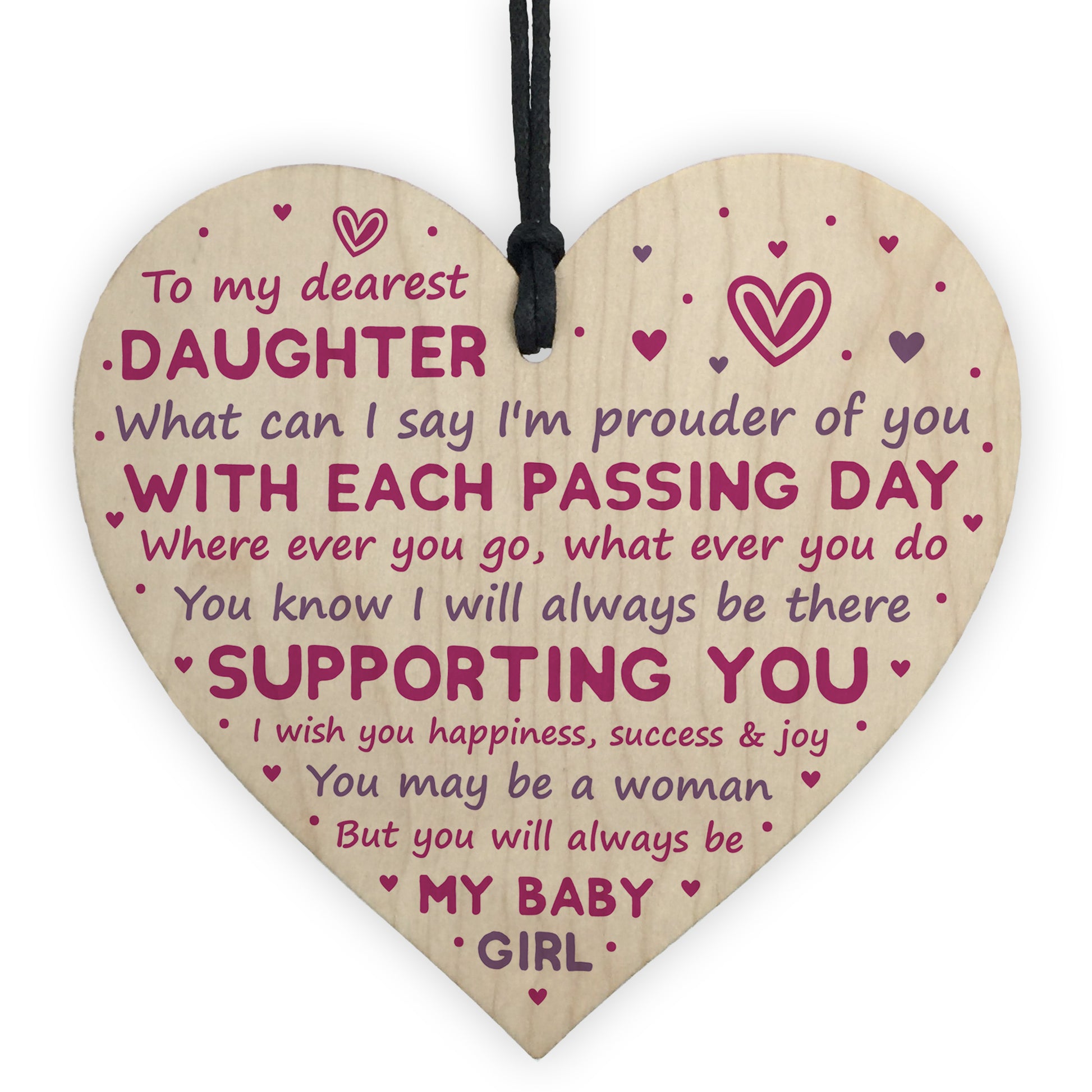 But that's not all - this set also includes a beautifully crafted wooden heart, printed with the message "To my dearest DAUGHTER What can I say I'm prouder of you WITH EACH PASSING DAY Where ever you go, what ever you do you know I will always be there SUPPORTING YOU I wish you happiness, success & joy you maybe be a woman but you will always be MY BABY GIRL". Measuring approximately 10cm x 10cm, this heart is the perfect size to display in your Daughter's room as a reminder of their special day.