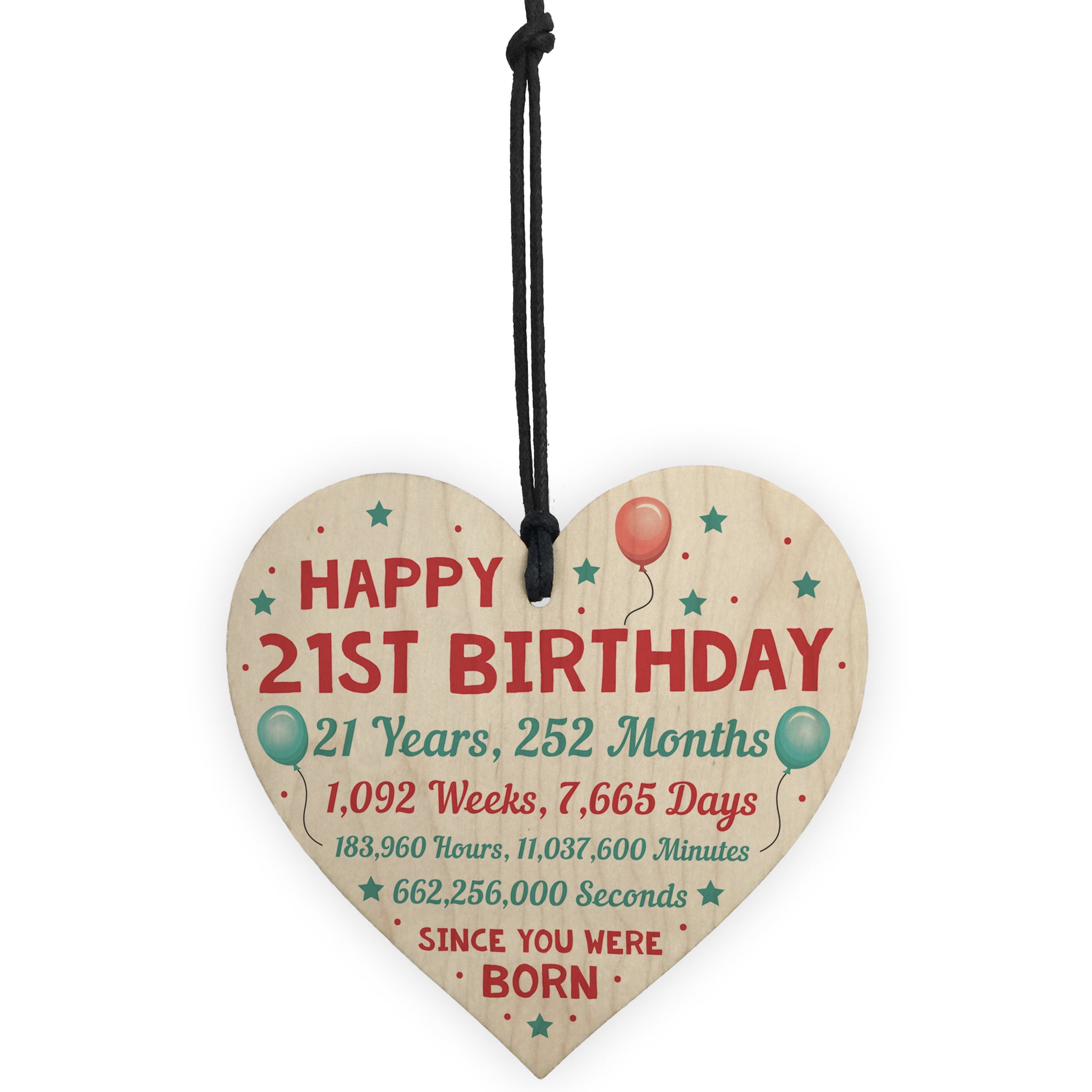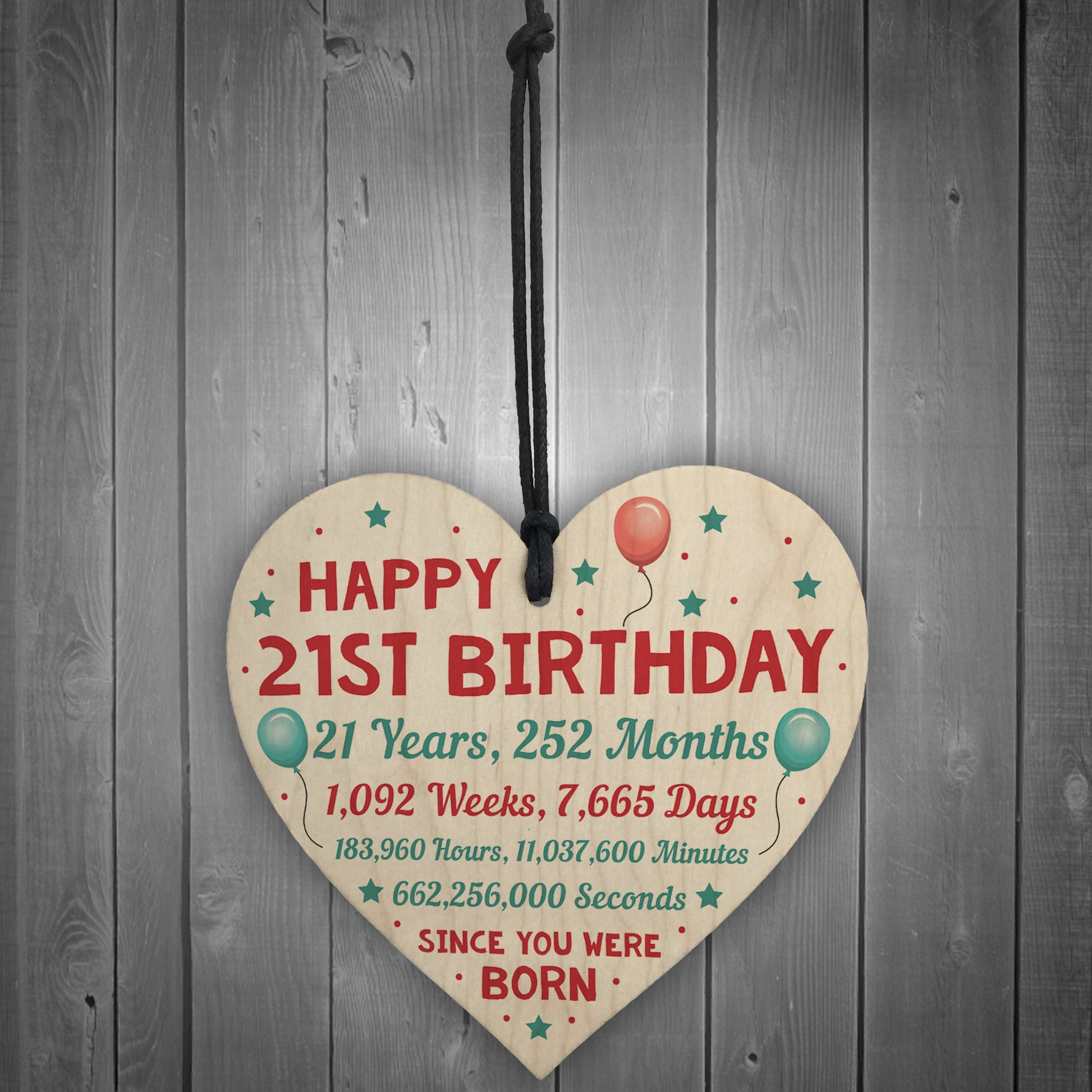 Funny 21st Birthday Card Wooden Hanging Heart Twenty One Gift