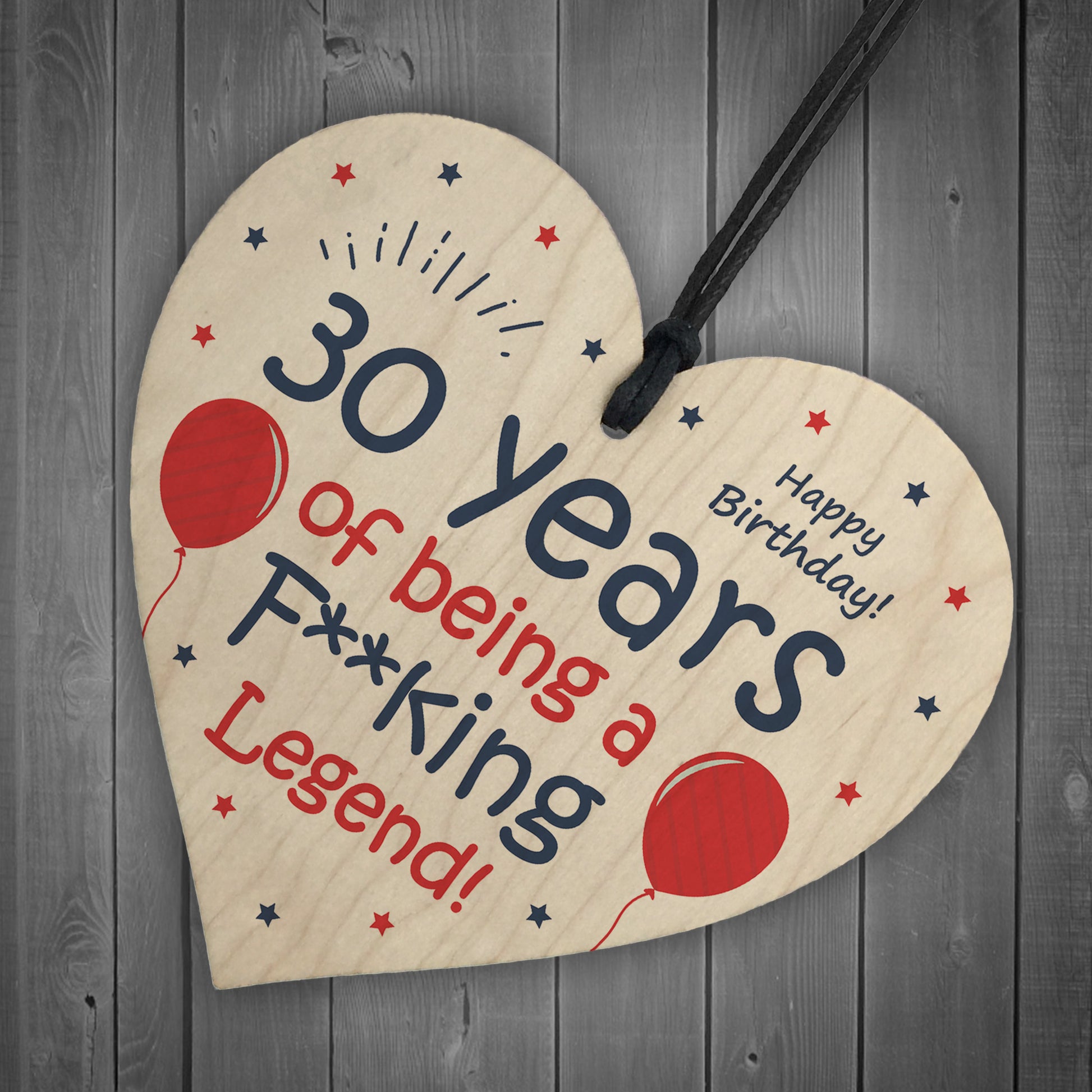 Funny 30th Birthday Gift Wood Heart Dad Mum Sister Brother