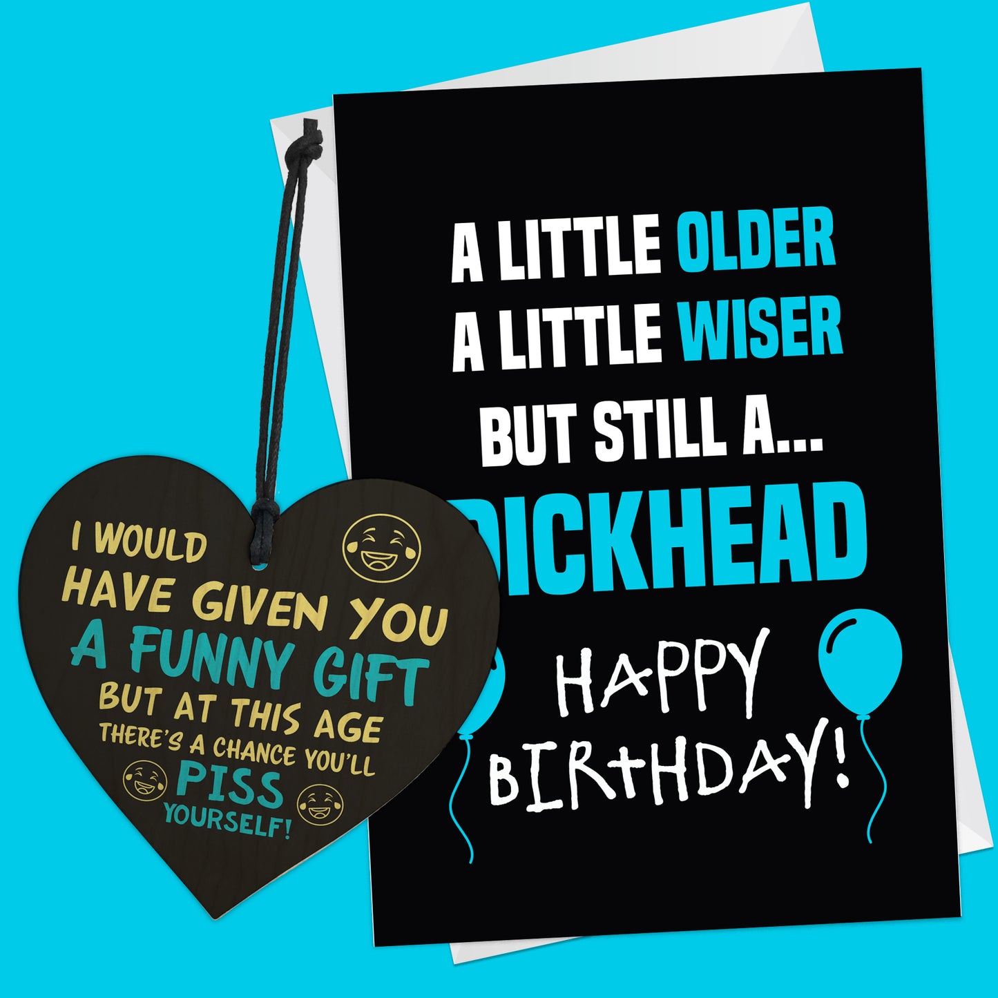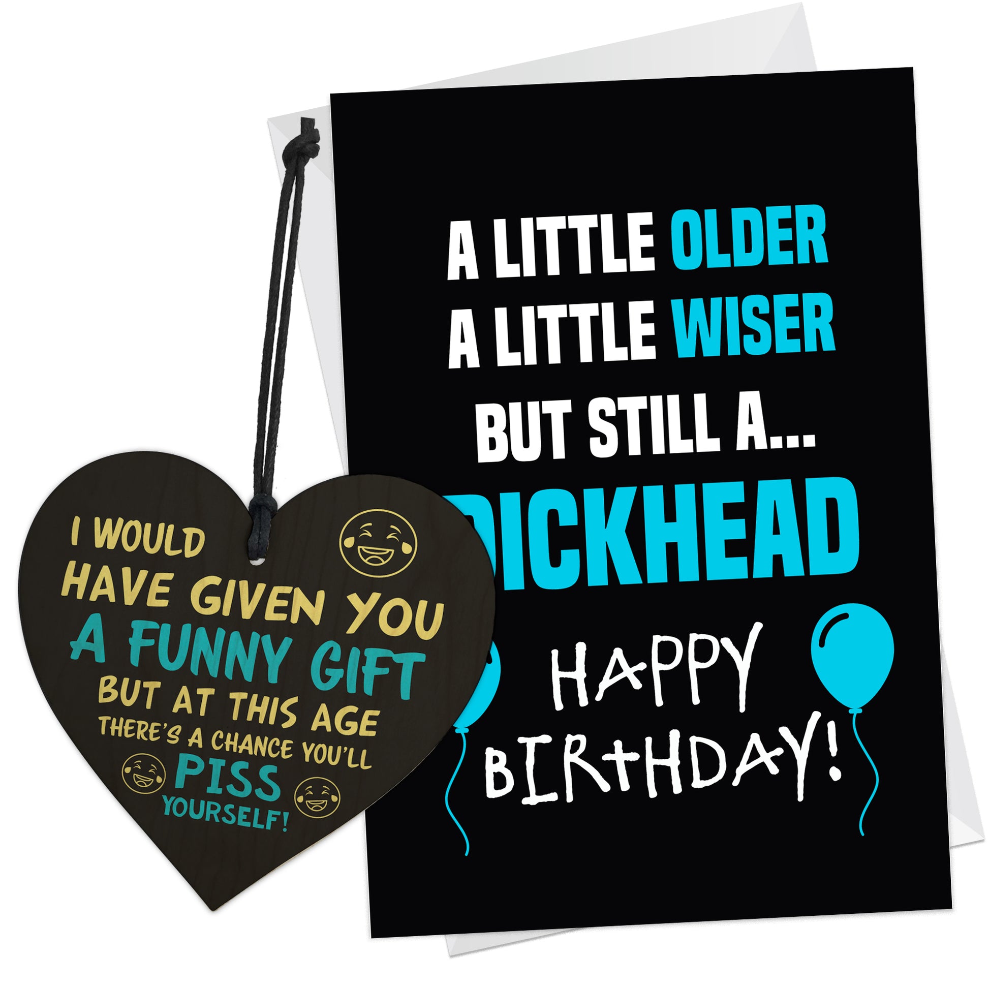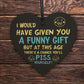 But that's not all - this set also includes a beautifully crafted wooden heart, printed with the message "I WOULD HAVE GIVEN YOU A FUNNY GIFT BUT AT THIS AGE THERE'S A CHANCE YOU'LL PISS YOURSELF". Measuring approximately 10cm x 10cm, this heart is the perfect size to display in your stepdad's home or office as a reminder of your appreciation for him.
