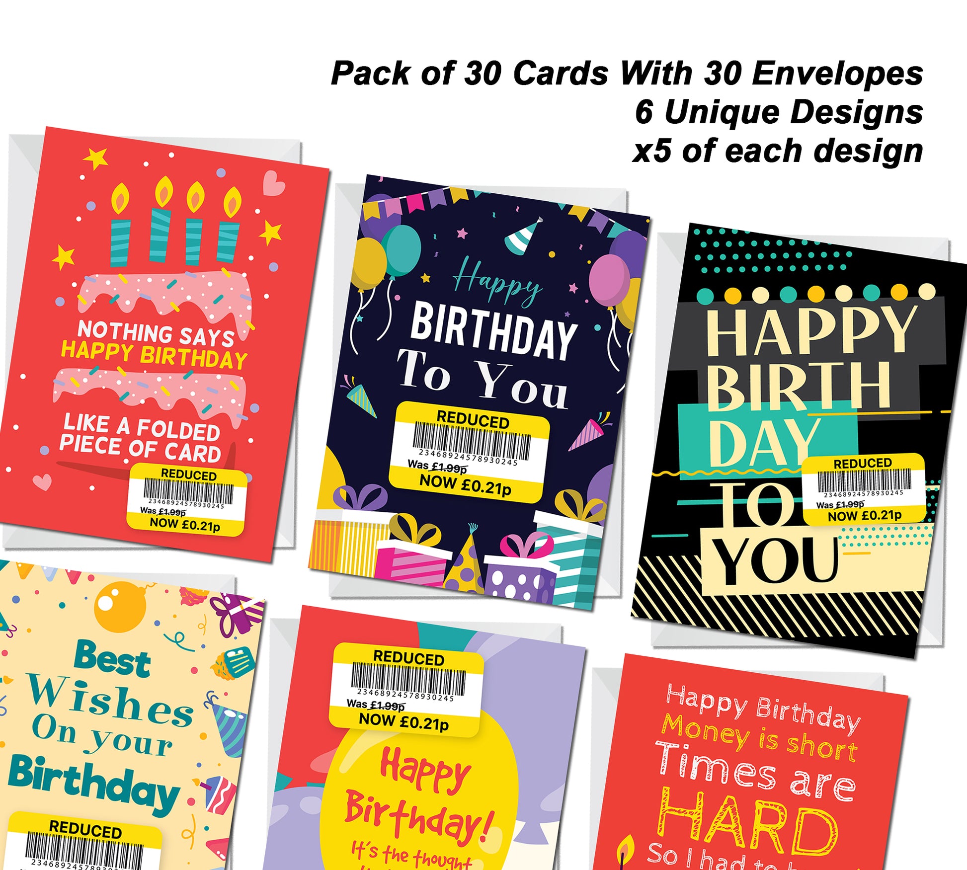 Funny Birthday Card Multipack of 30 Joke Birthday Cards