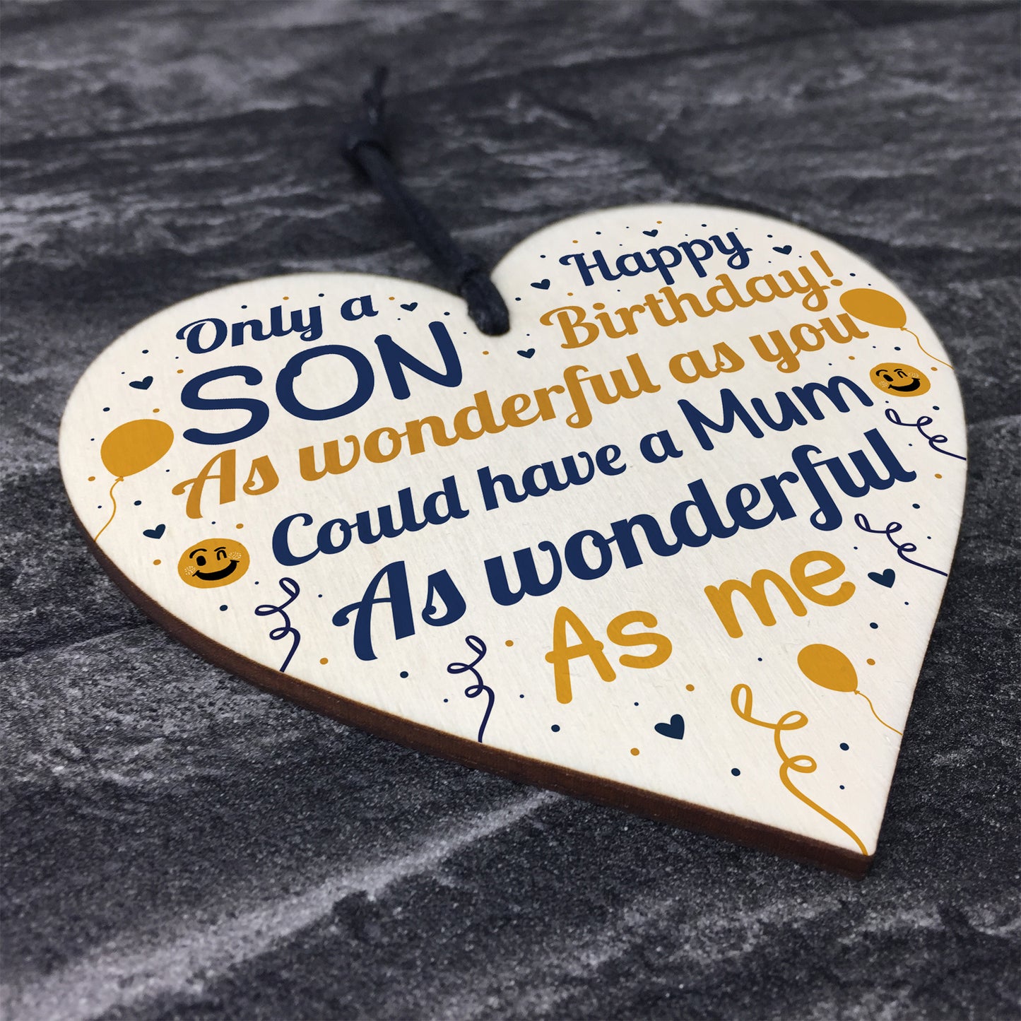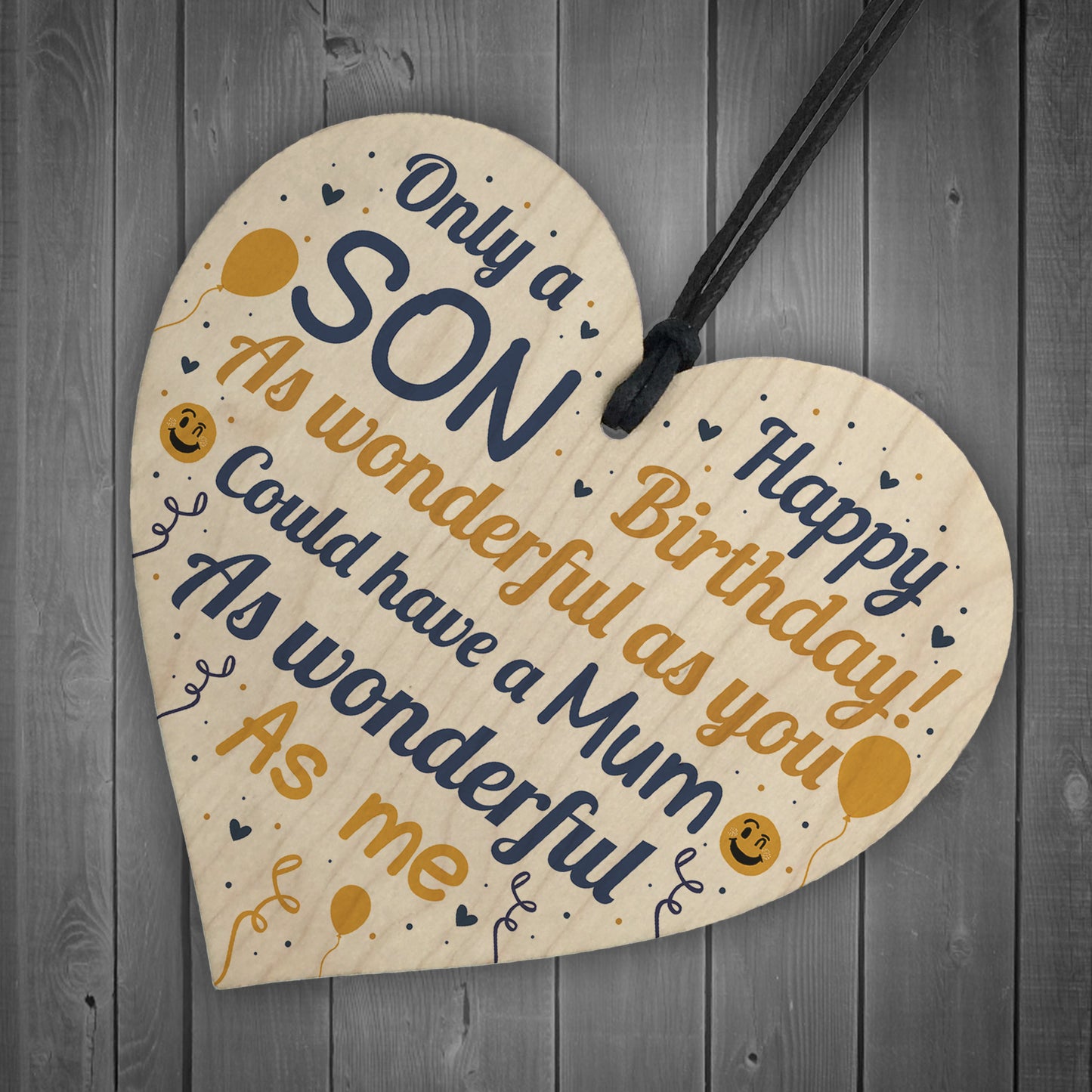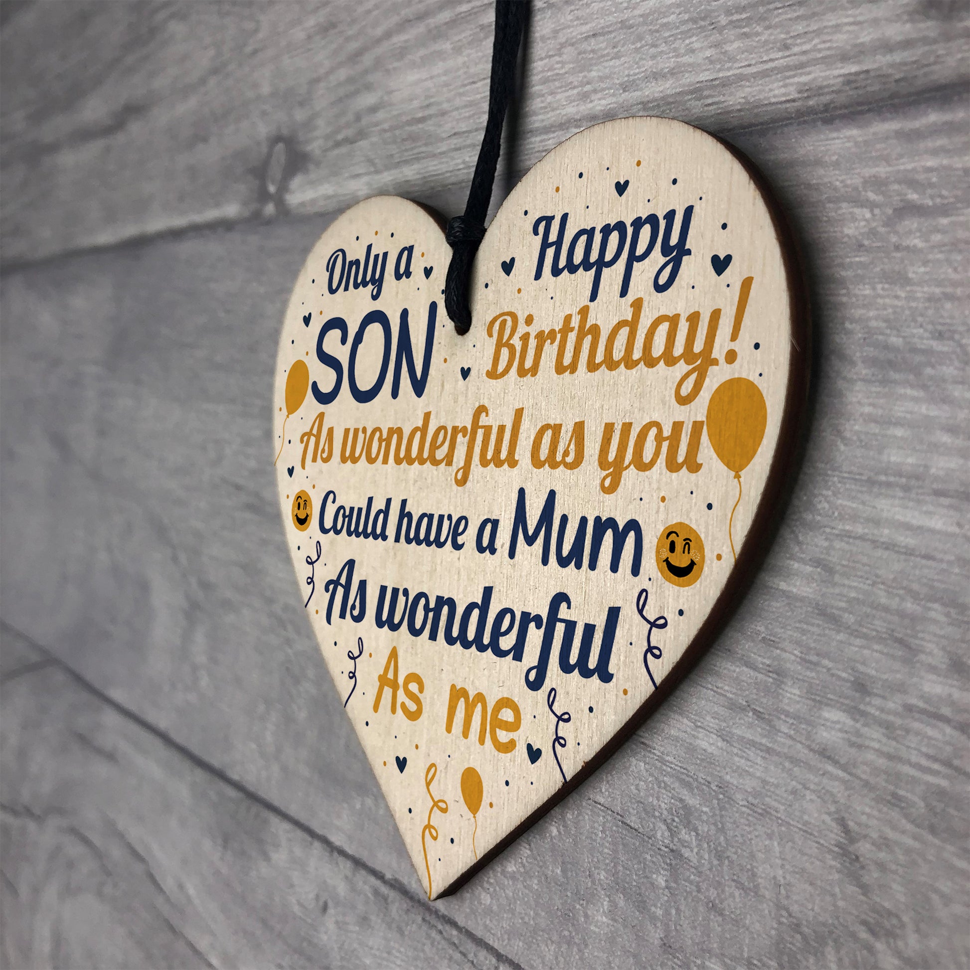 This gorgeous wooden heart plaque printed with this FUNNY message would be a great Son Birthday Card! Great Son Birthday Gift!. Give this gift with love and put a smile on your Son's face as soon as he reads this