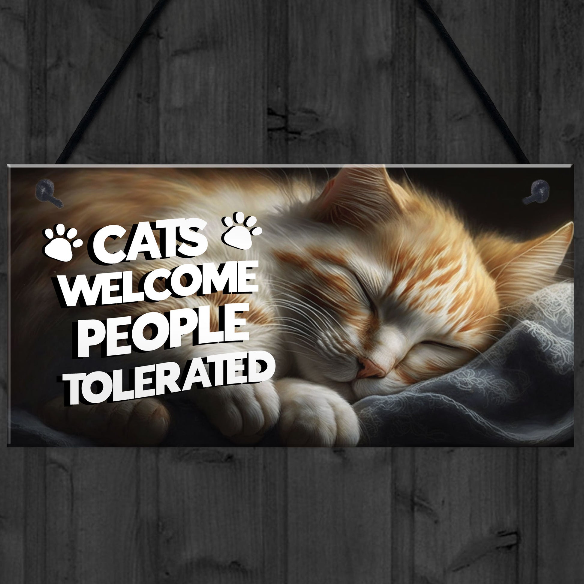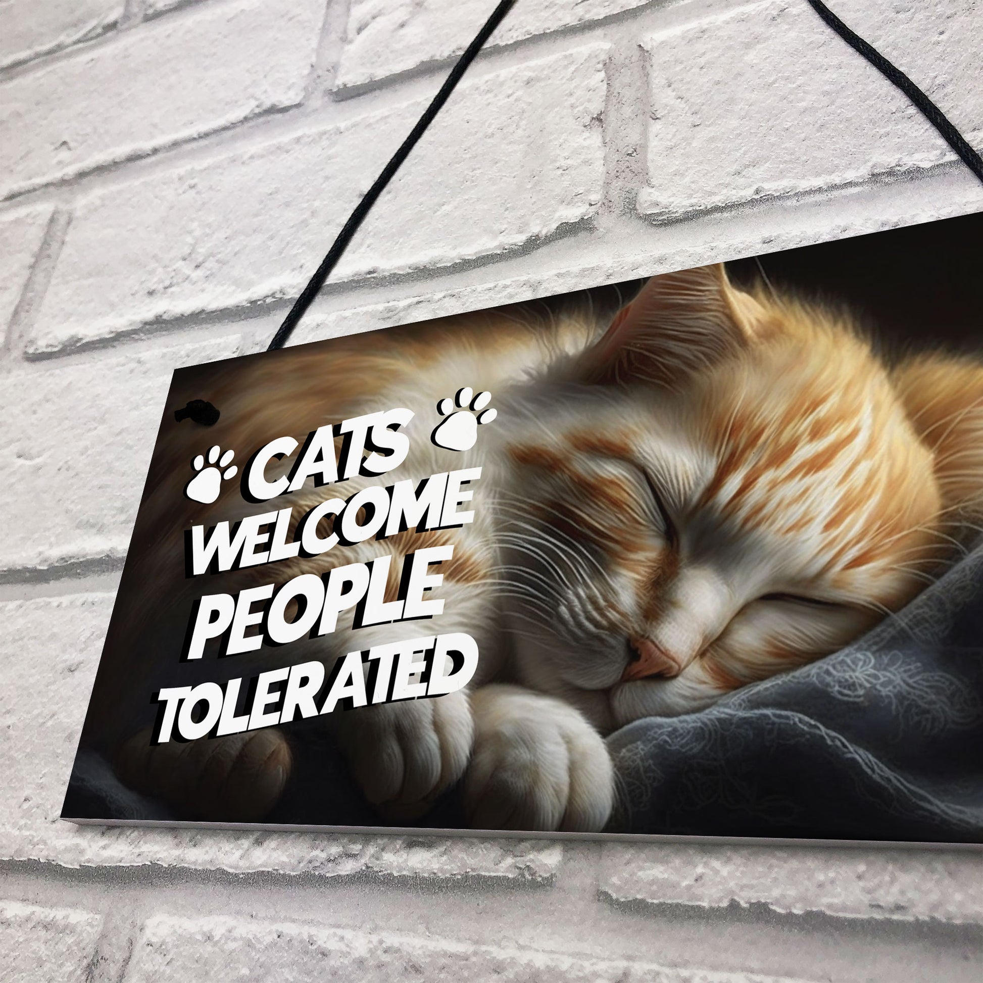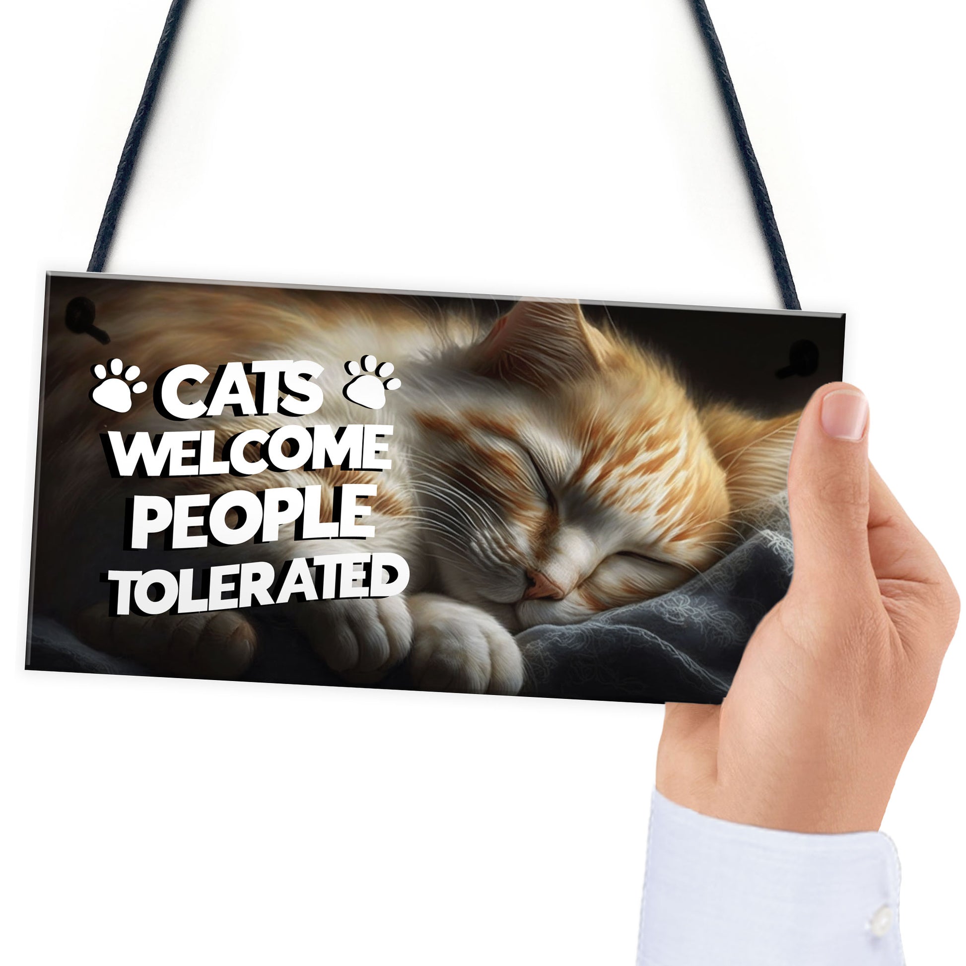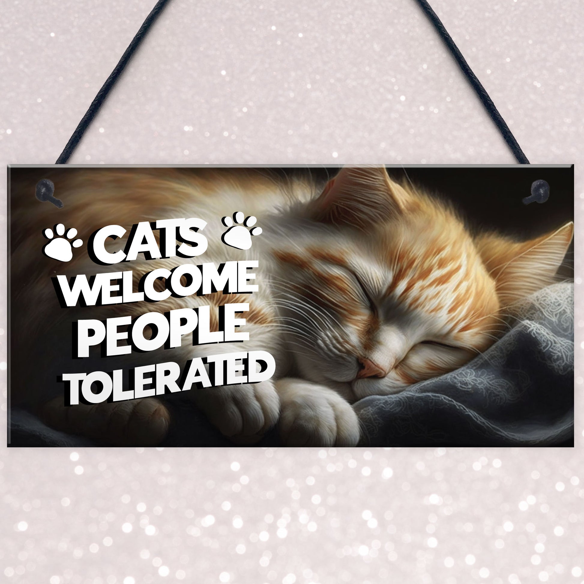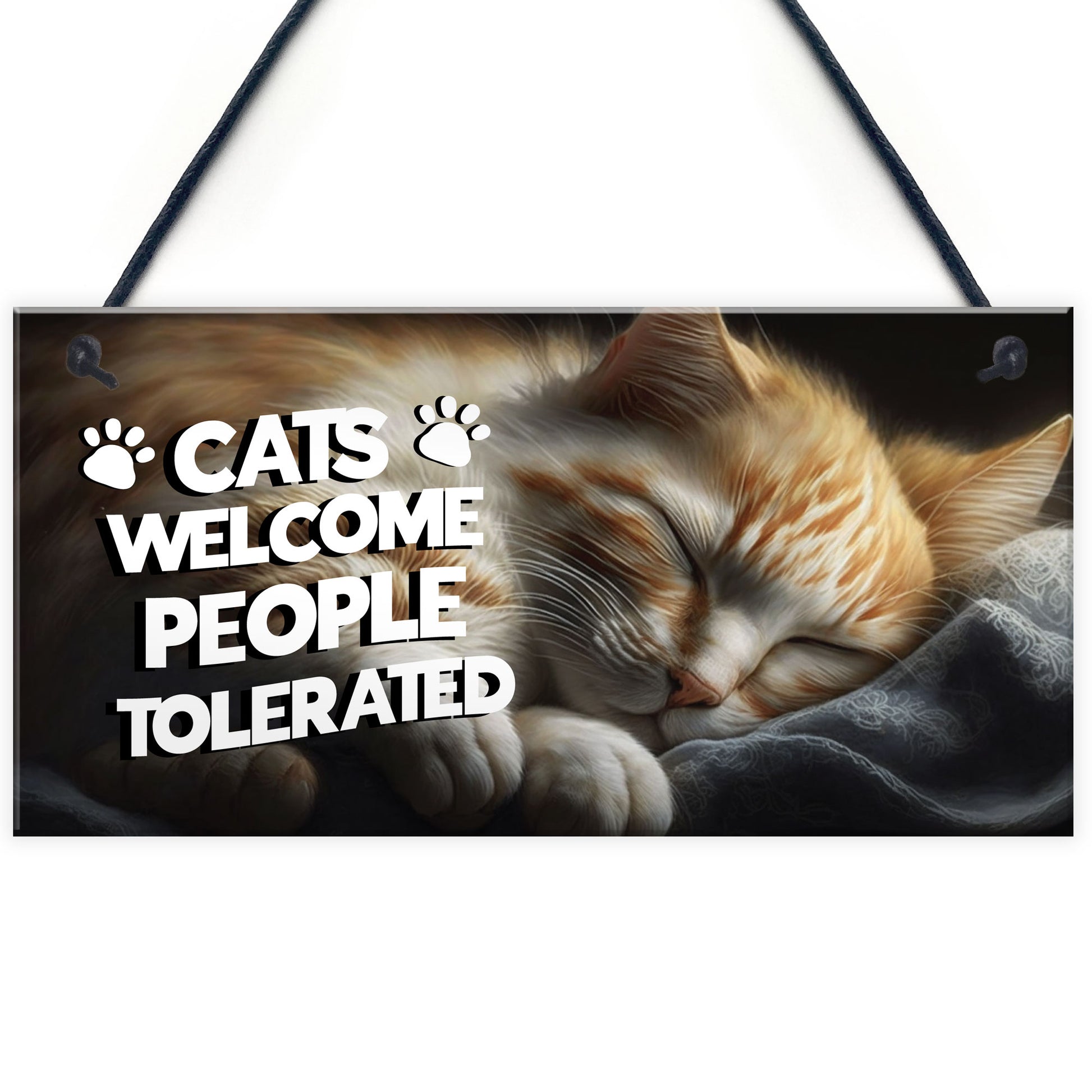 for cats? Look no further than this 200x100mm Cat Sign that reads "CATS WELCOME PEOPLE TOLERATED"