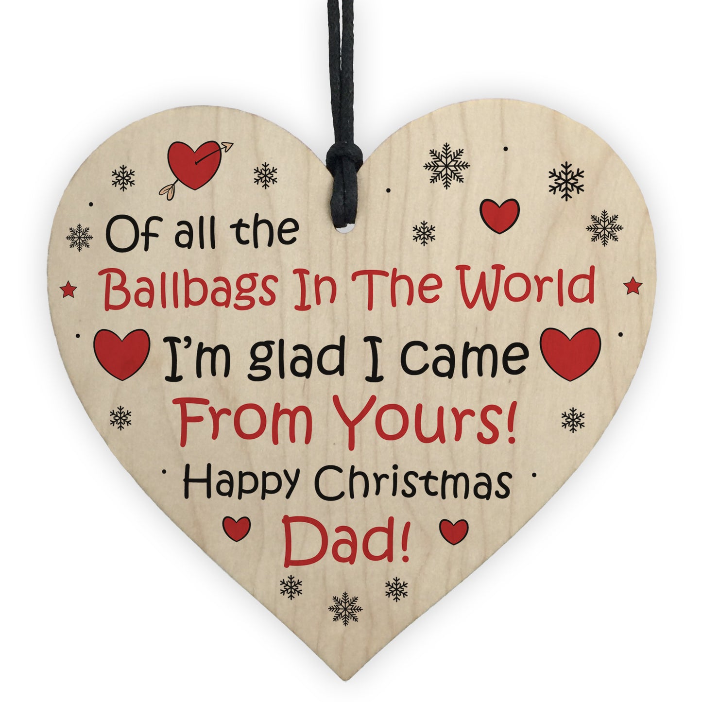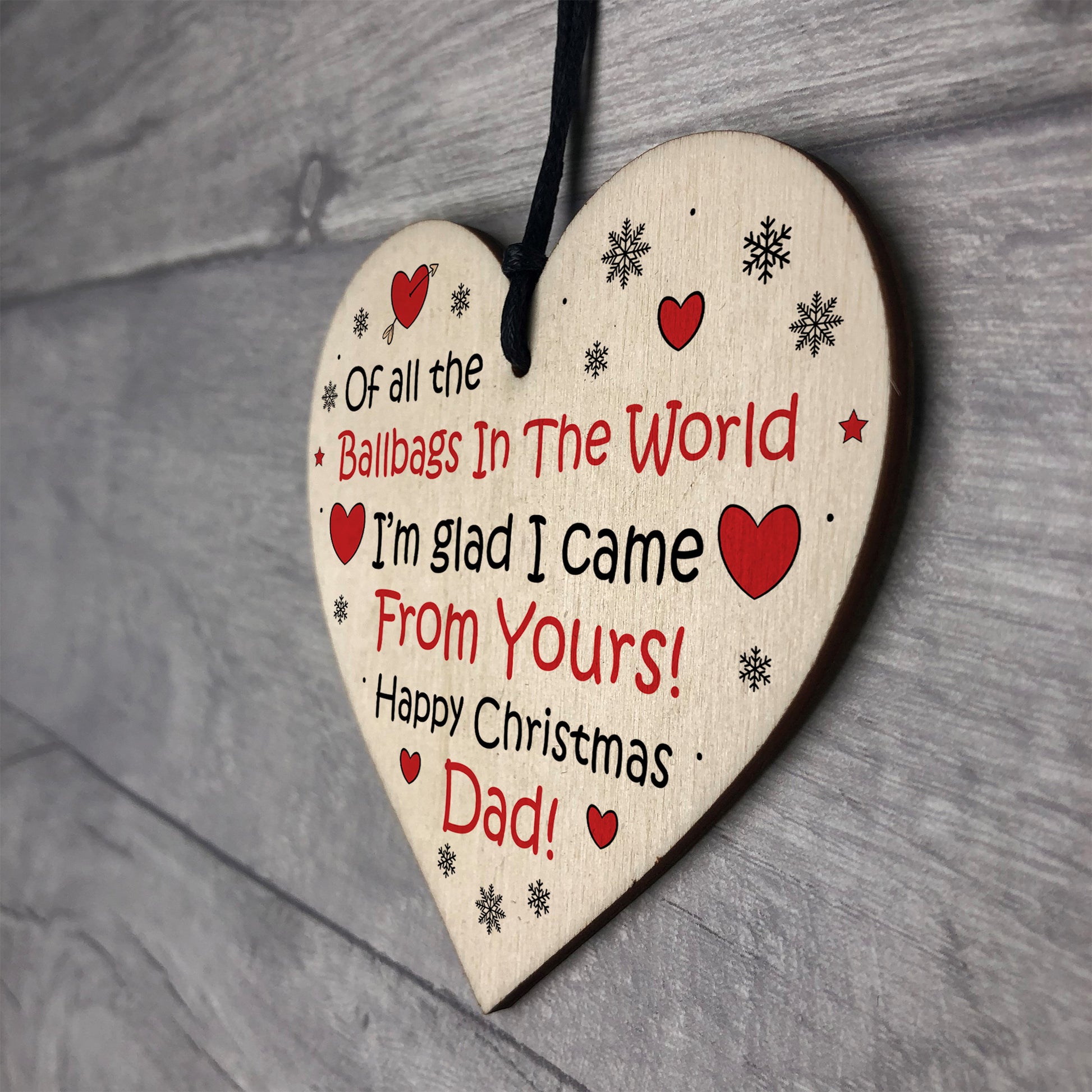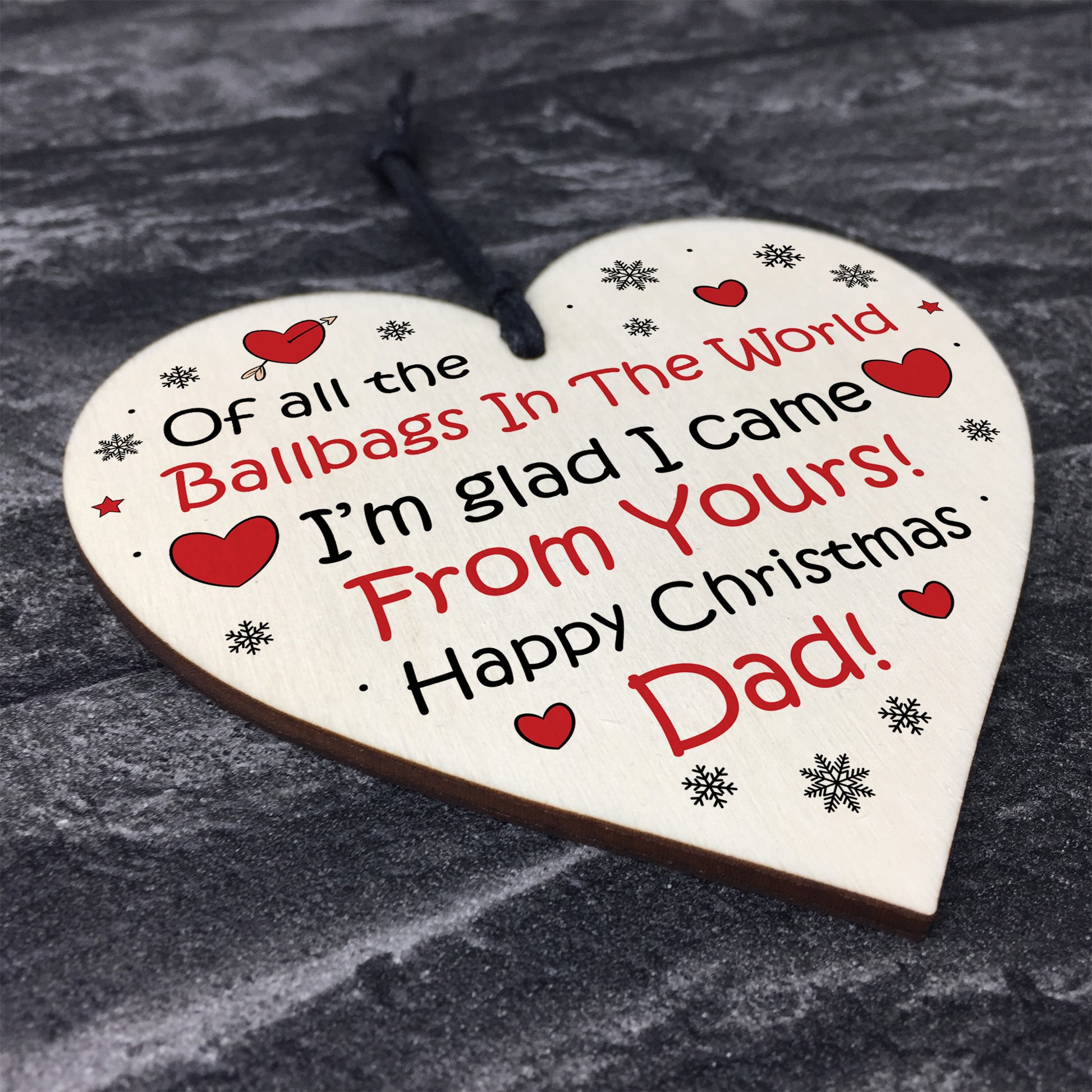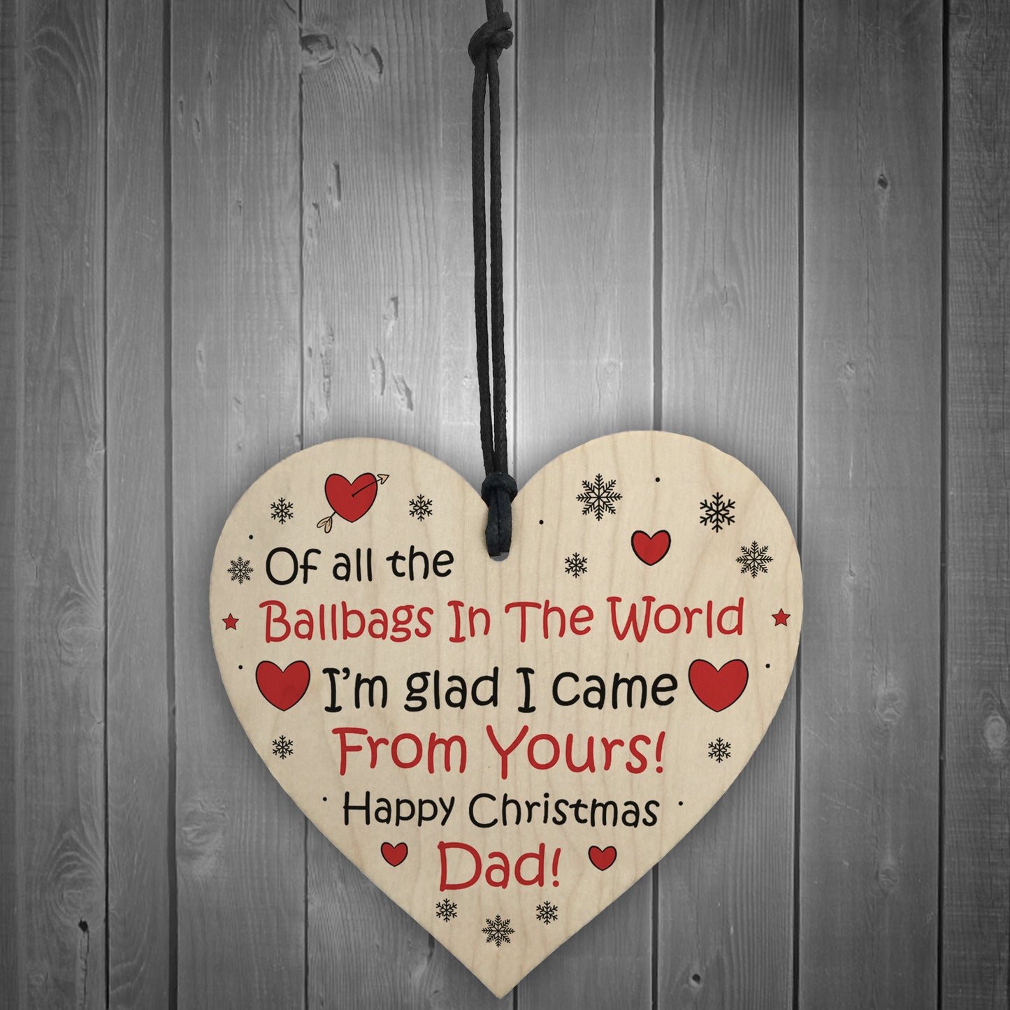 The sign is made from high quality, and the design is permanently printed into the heart. The wooden heart is supplied with waxed cotton rope in both black and red colours to allow easy hanging and looks great in any room of the house.
