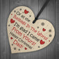 The hand crafted real wood heart measures 10cm, is gift packaged and includes a variety of waxed cotton cord to hang. We've made these for replacing traditional greetings cards, placing in hampers or on the next of a bottle, or to even hang on a Christmas Tree. There are so many uses, you are sure to not be dissapointed. We have thousands of exclusive designs, with original verses, that touch the heart.
