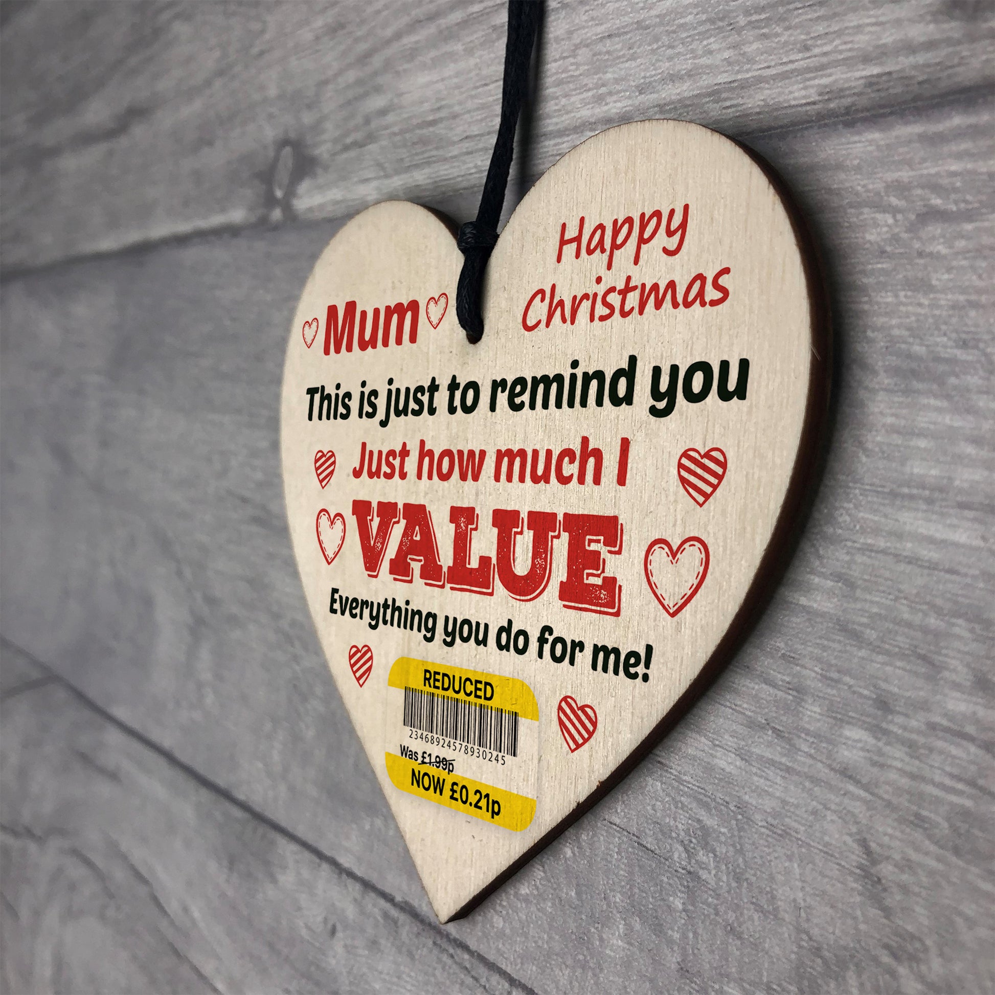 Funny Christmas Joke Gift For Mum Wood Heart Gift For Mum