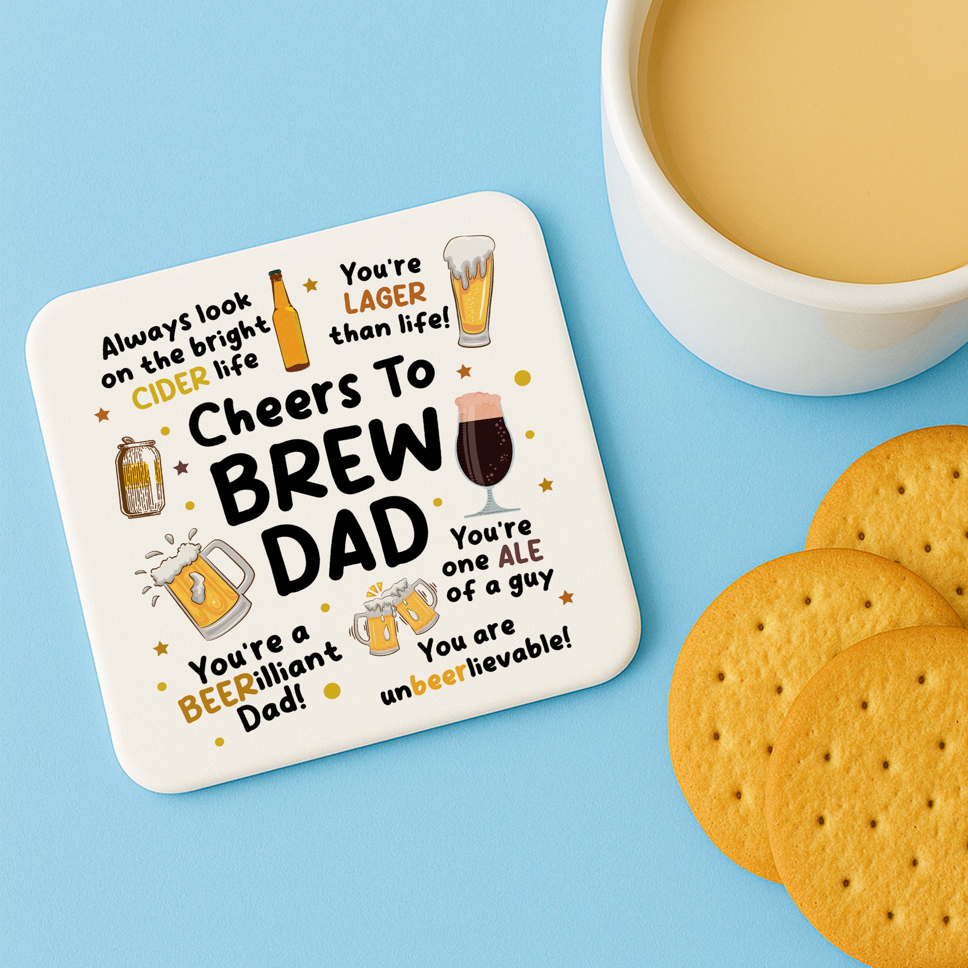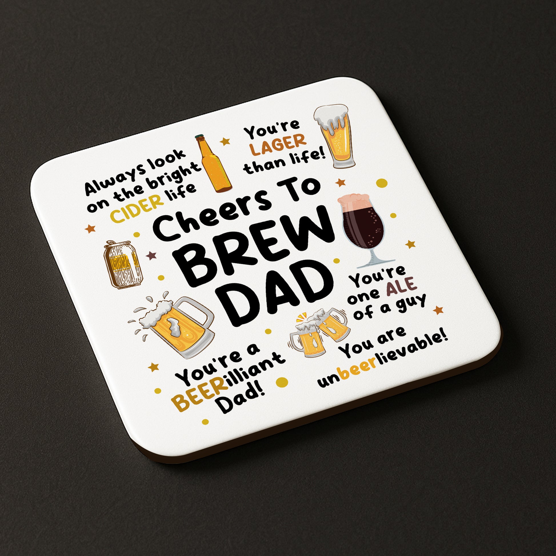 Funny Dad Gift Dad Coaster Cheers To Brew Dad Gift For Birthday