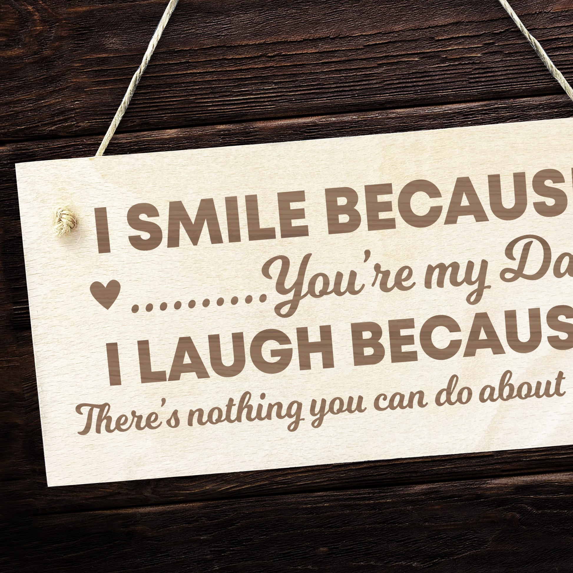 The plaque is made from FSC Certified wood, and the design is permanently engraved into the wood. The wooden sign plaque is supplied with rustic twine rope to allow easy hanging and looks great in any room of the house.