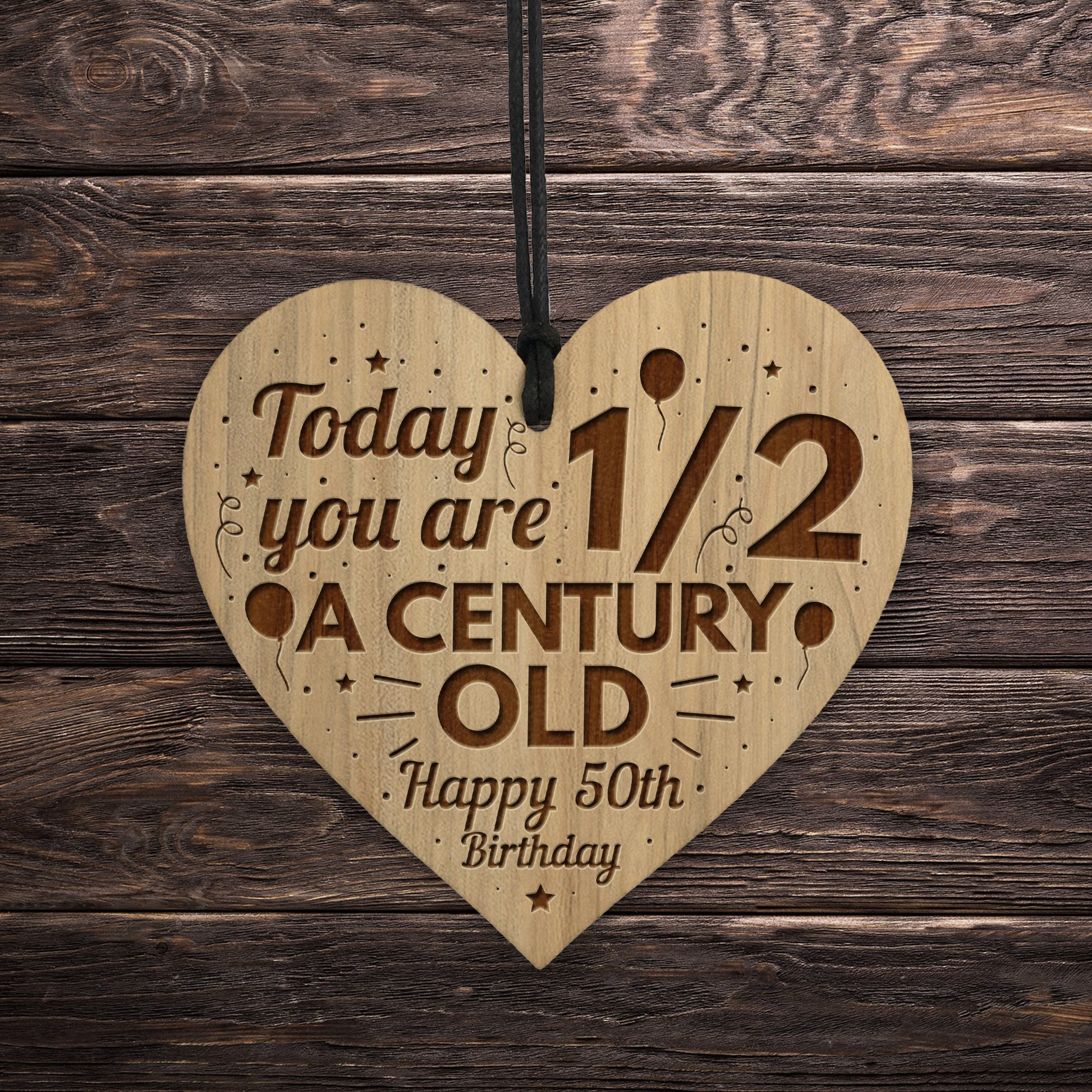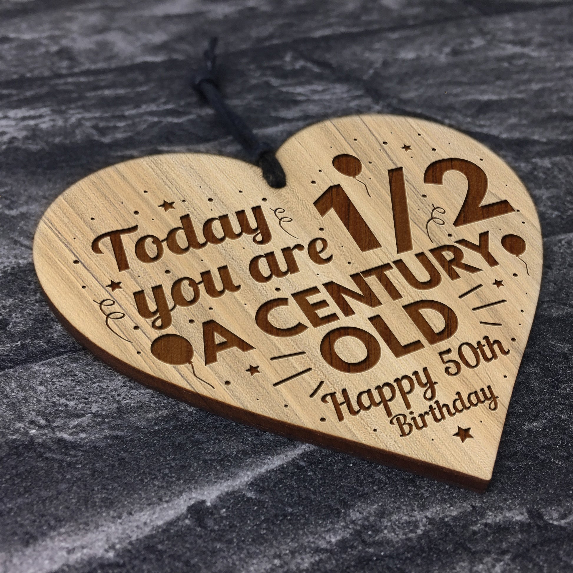 Funny Joke 50th Birthday Gift For Him Her Engraved Wood Heart