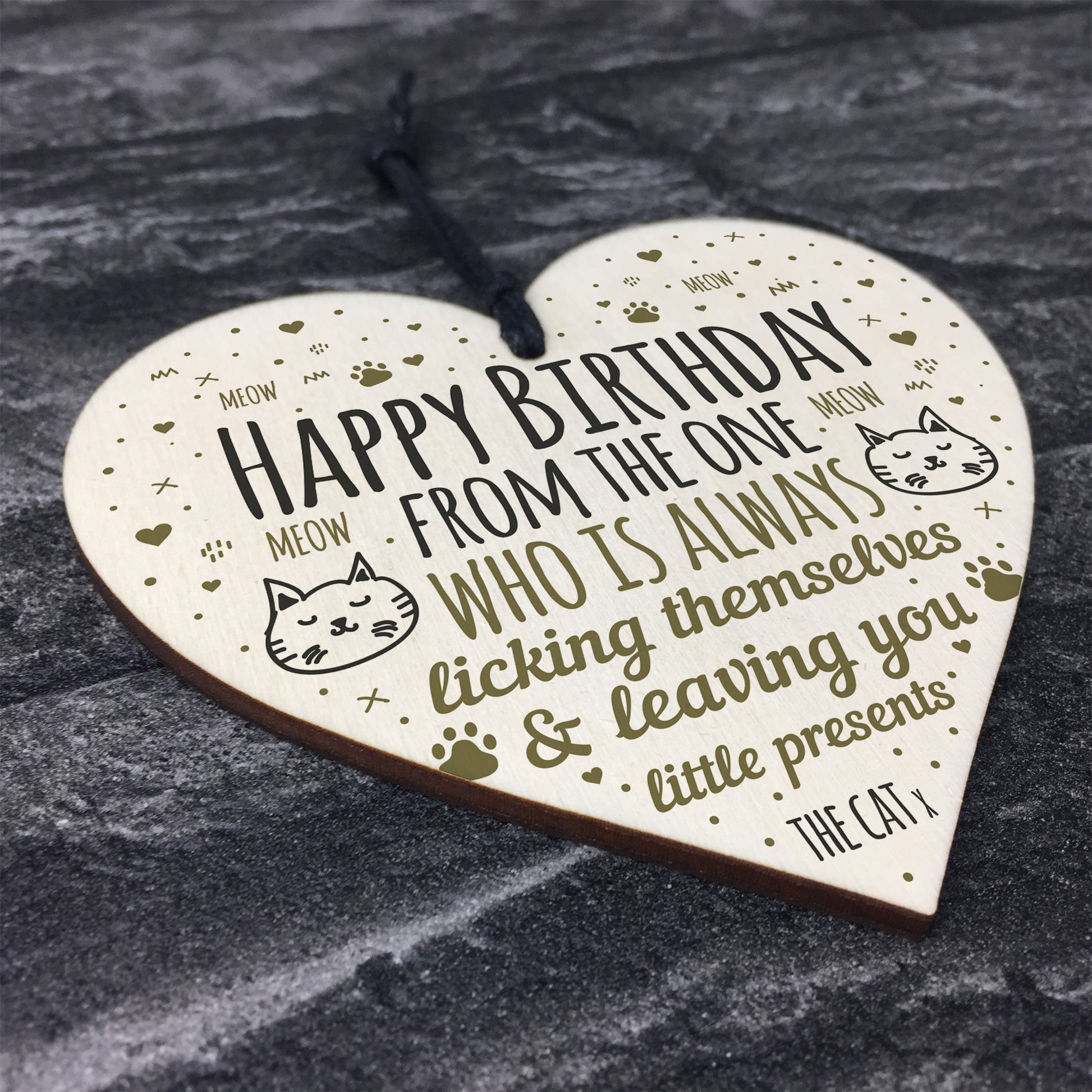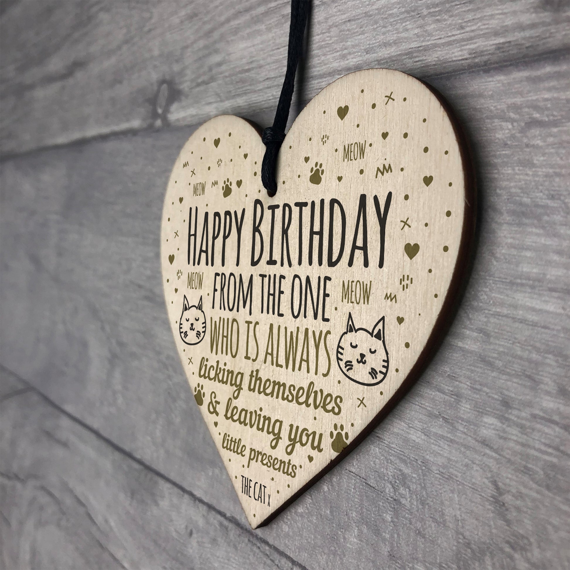 Funny Mum Dad Sister Brother Birthday Gifts Wood Heart Cat Gifts
