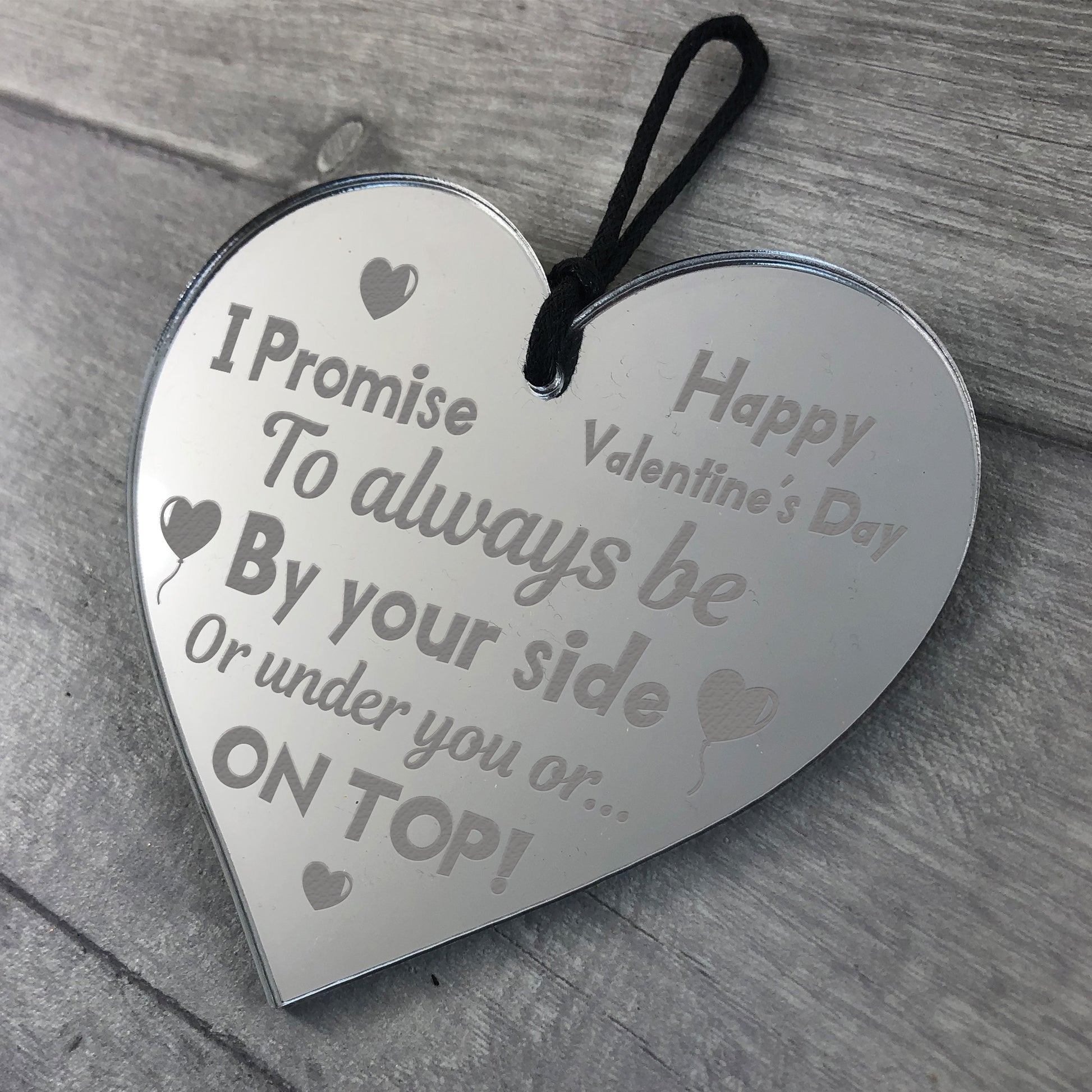 The sign is made from Mirror Acrylic, and the design is permanently engraved into the acrylic. The acrylic heart is supplied with waxed cotton rope to allow easy hanging and looks great in any room of the house.
