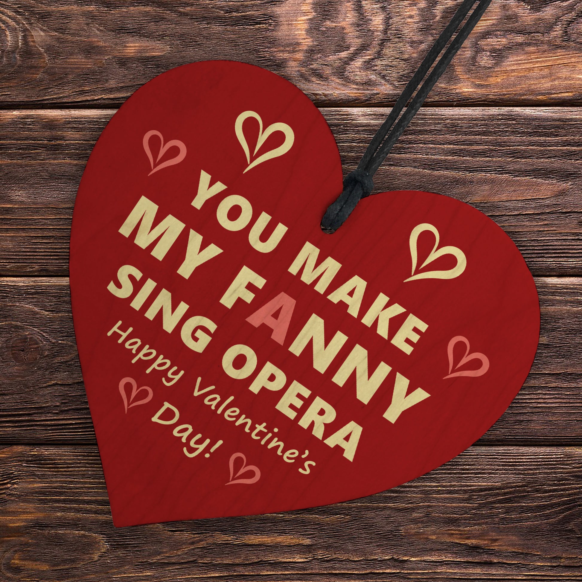 The sign is made from high quality, and the design is permanently printed into the heart. The wooden heart is supplied with waxed cotton rope in both black and red colours to allow easy hanging and looks great in any room of the house.