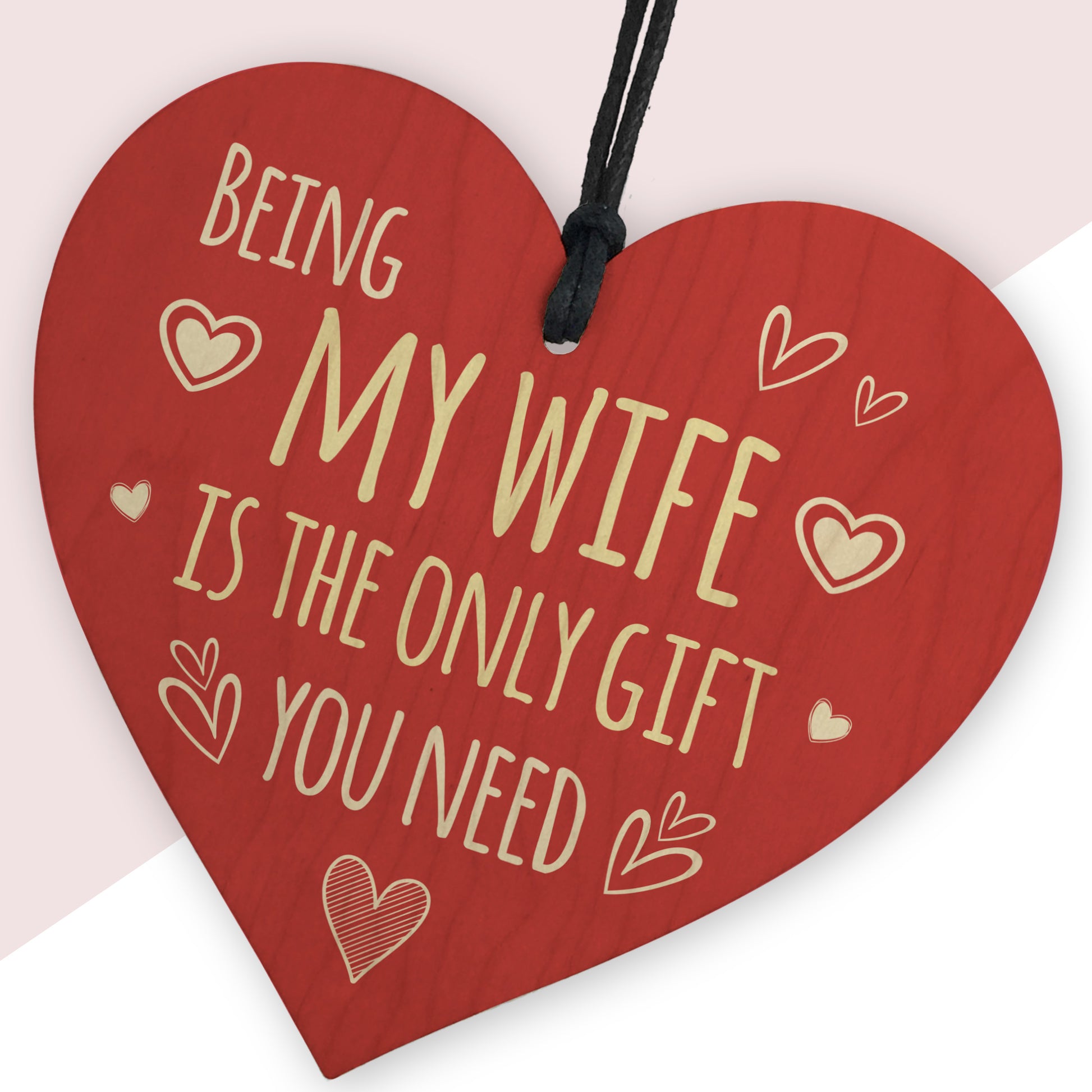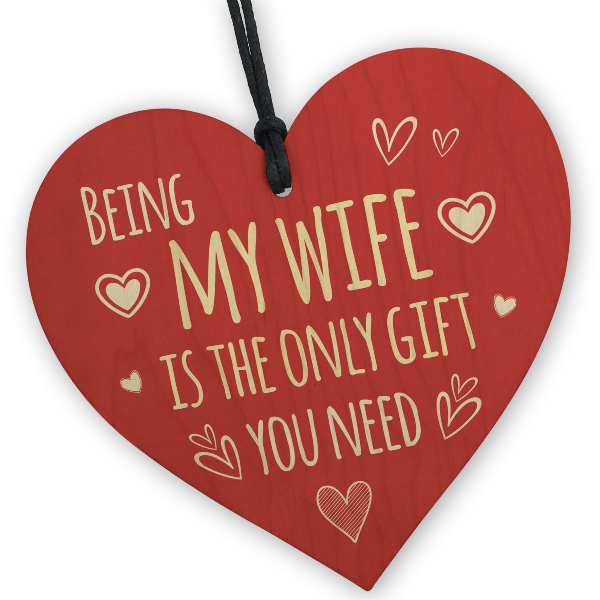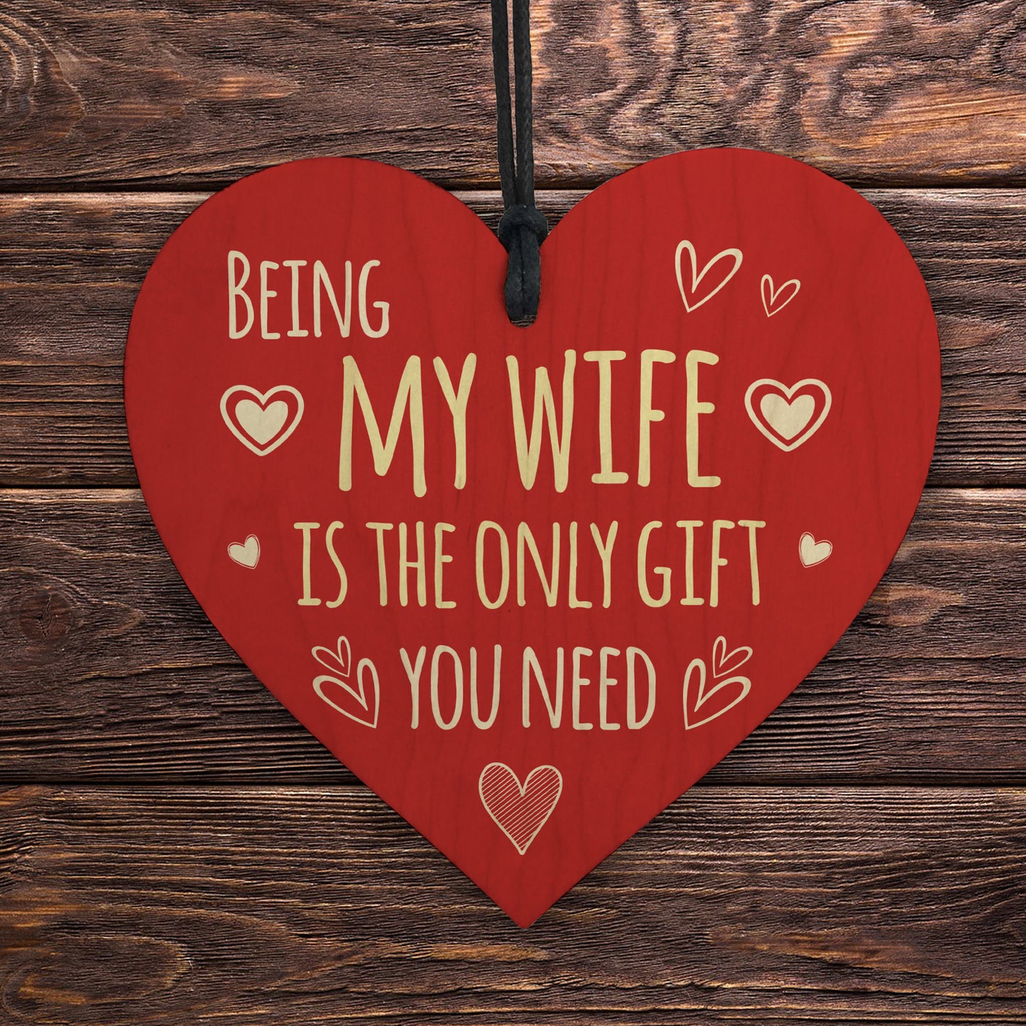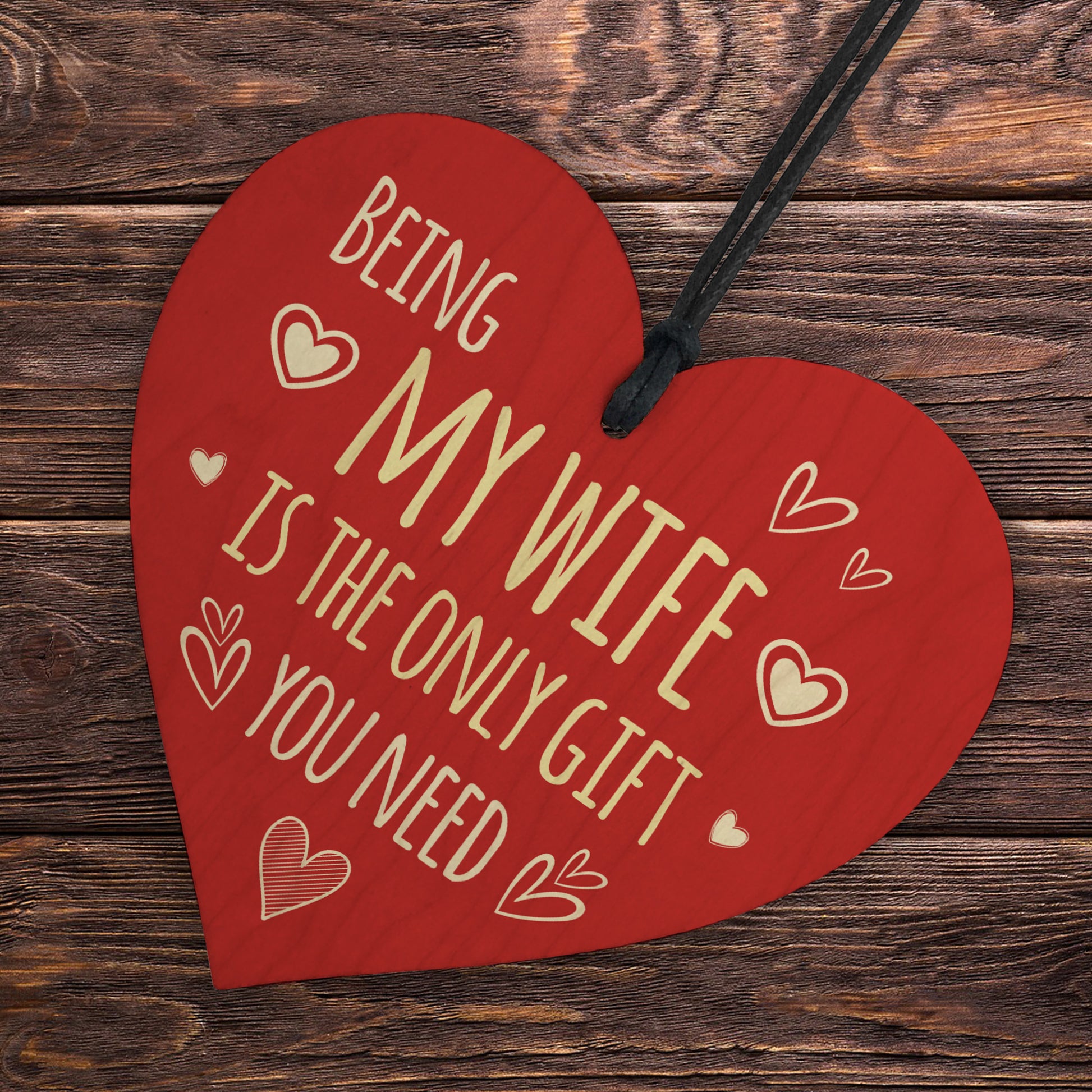 The sign is made from high quality, and the design is permanently printed into the heart. The wooden heart is supplied with waxed cotton rope in both black and red colours to allow easy hanging and looks great in any room of the house.