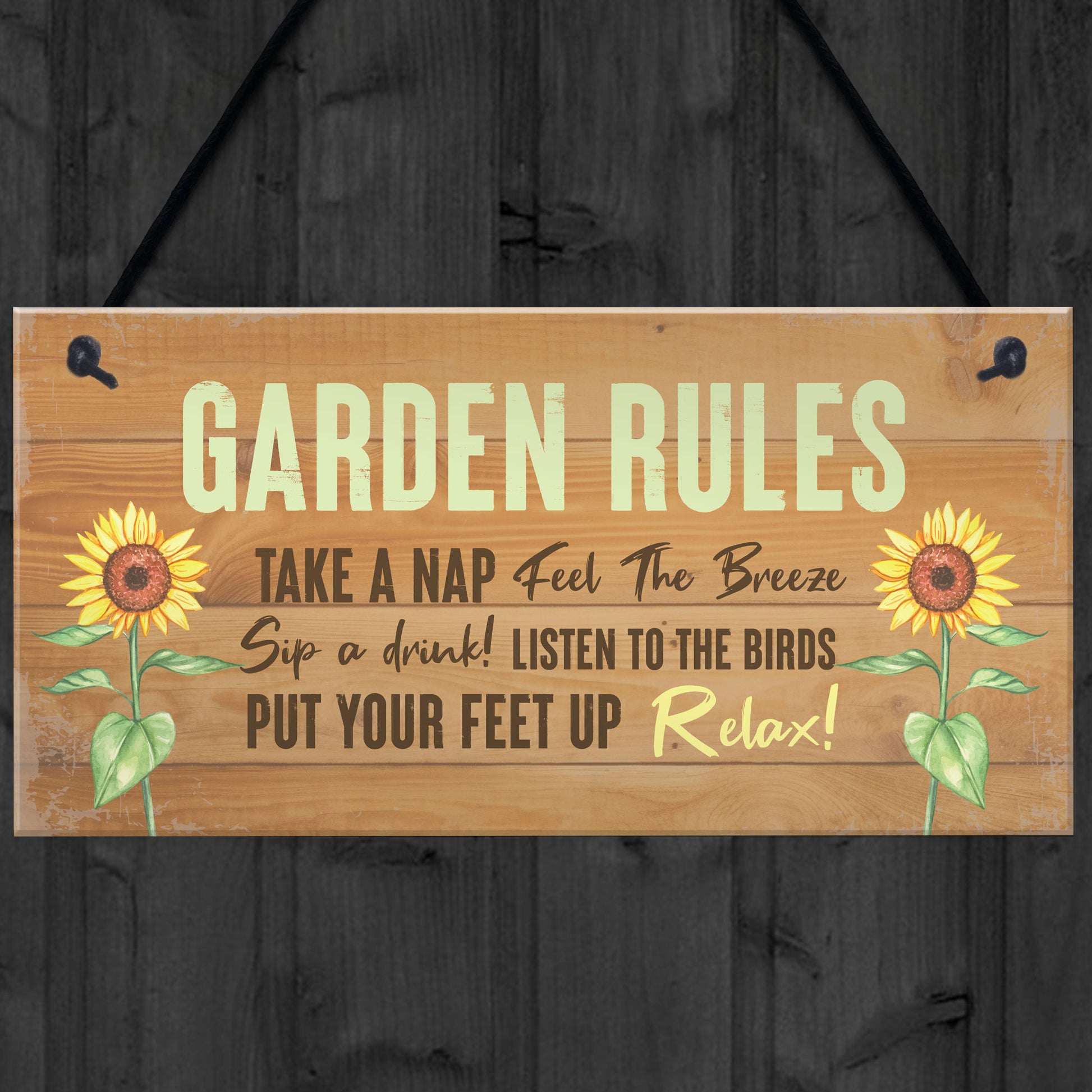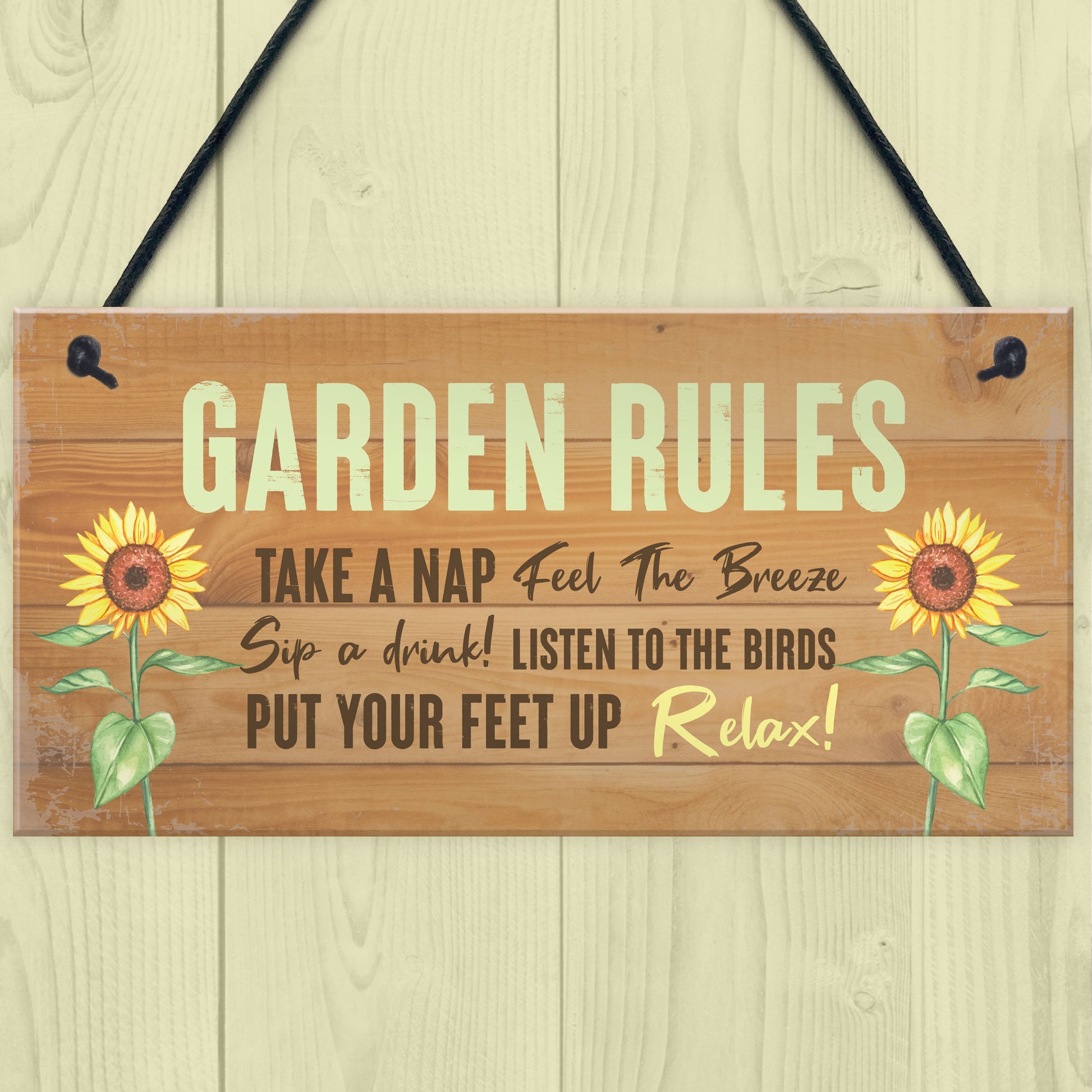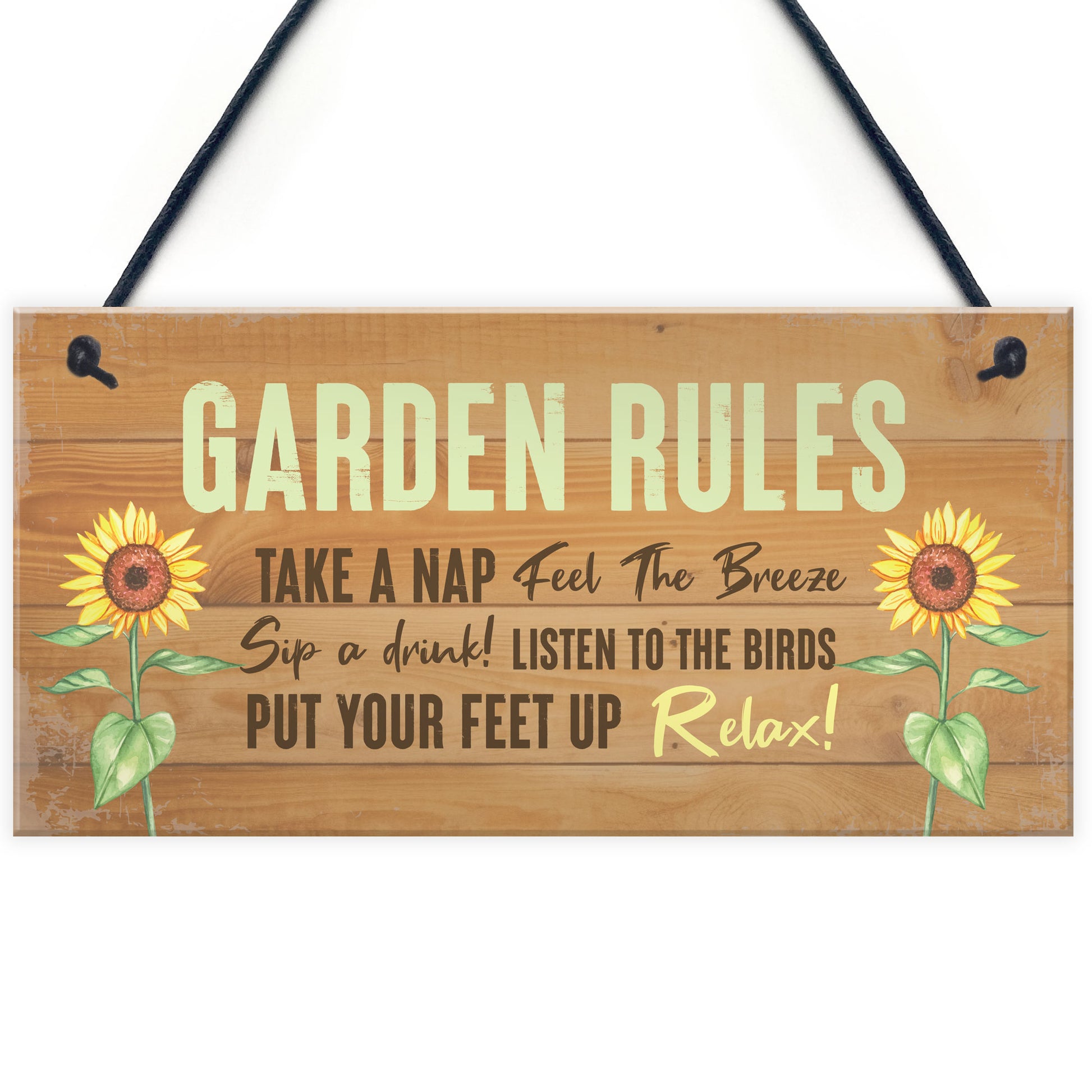Garden Rules Hanging Plaque Backyard Sign Shed Sign Garden Gift