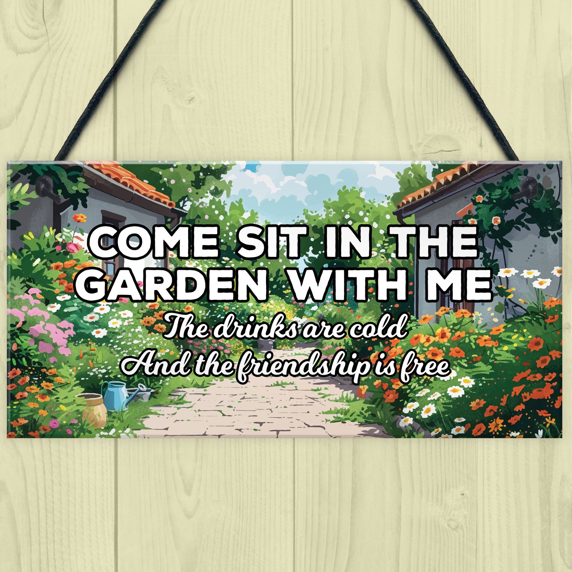 Garden Sign and Plaques Come Sit In The Garden Wall Shed Signs