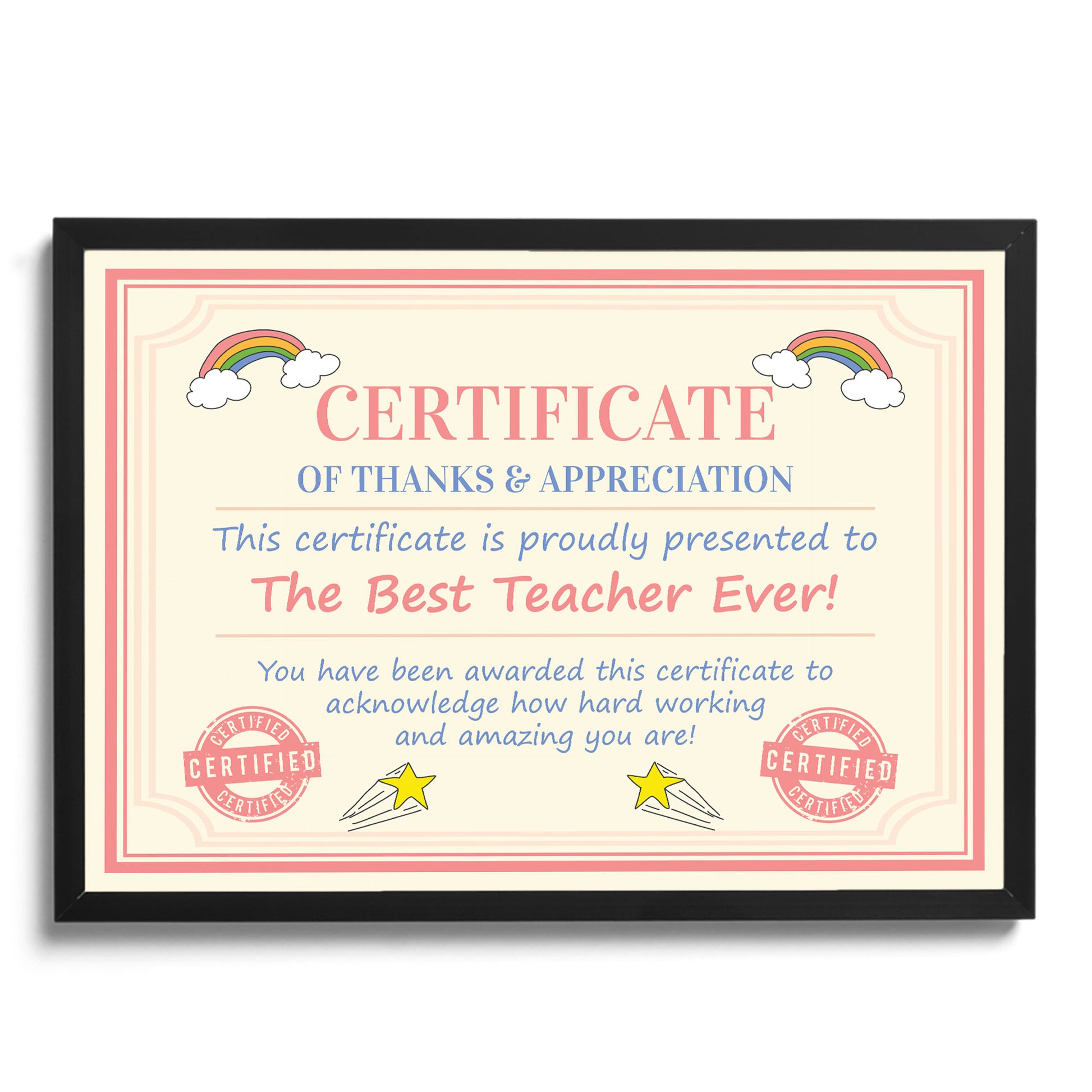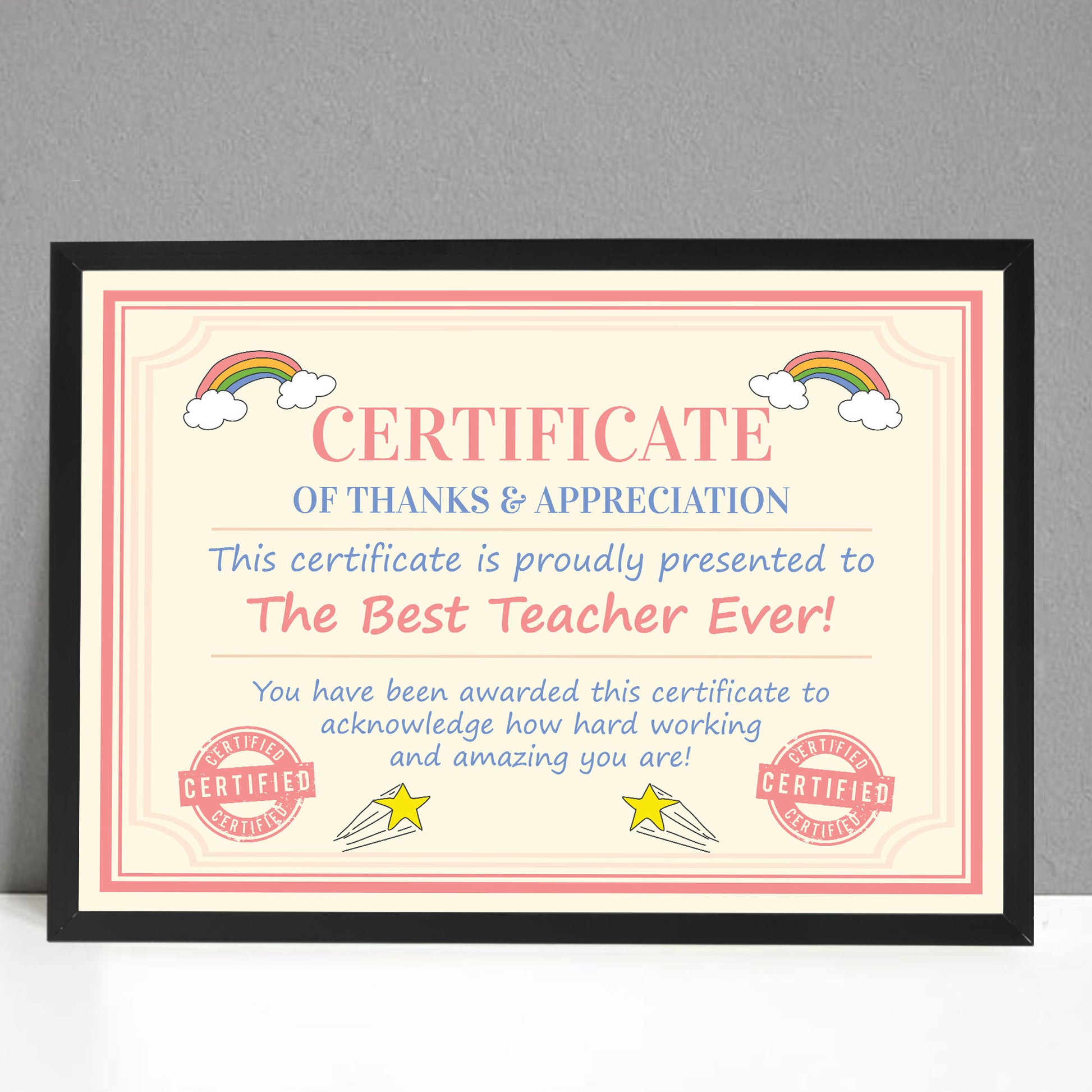 Shop today to say thank you to your teacher in such a special and novelty way with our teacher certificate.